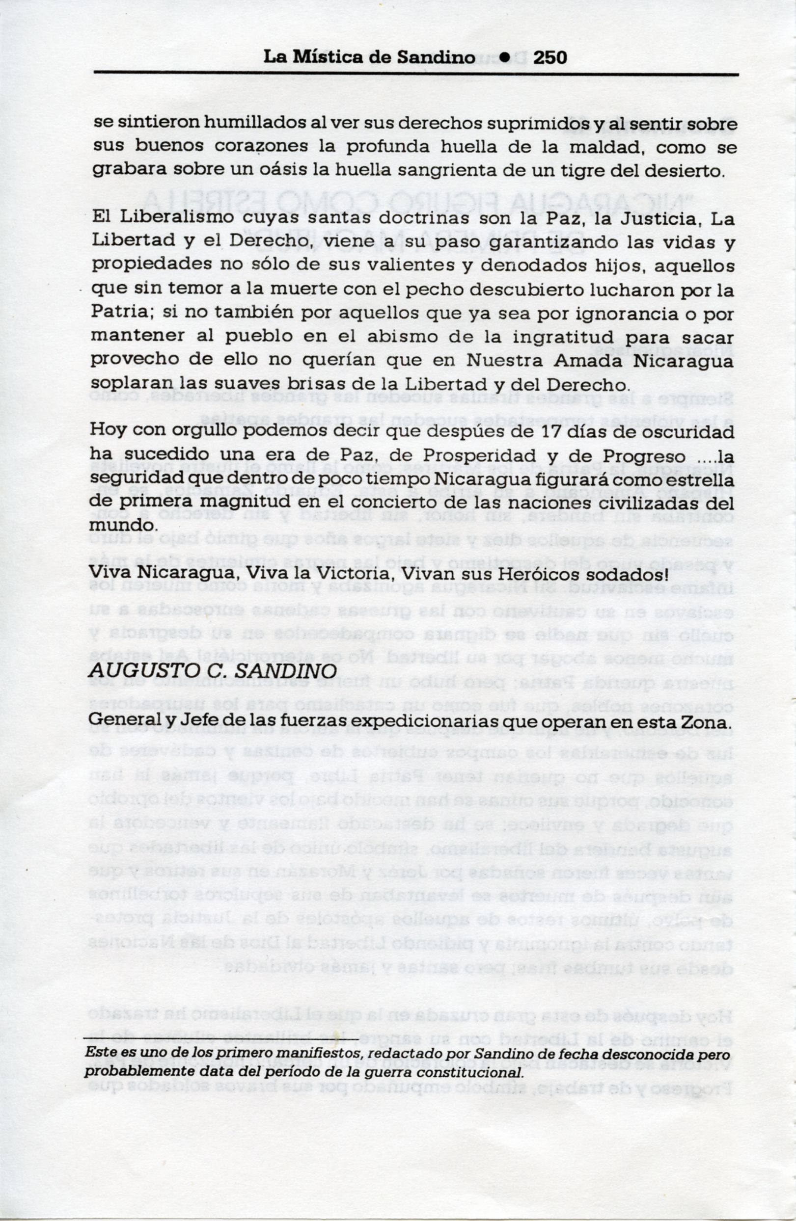 • Source: AB: 249-50 (Alejandro Bendaña, La mística de Sandino [Managua: CEI, 1994], 249-50). No date, but sometime late in the Civil War.
