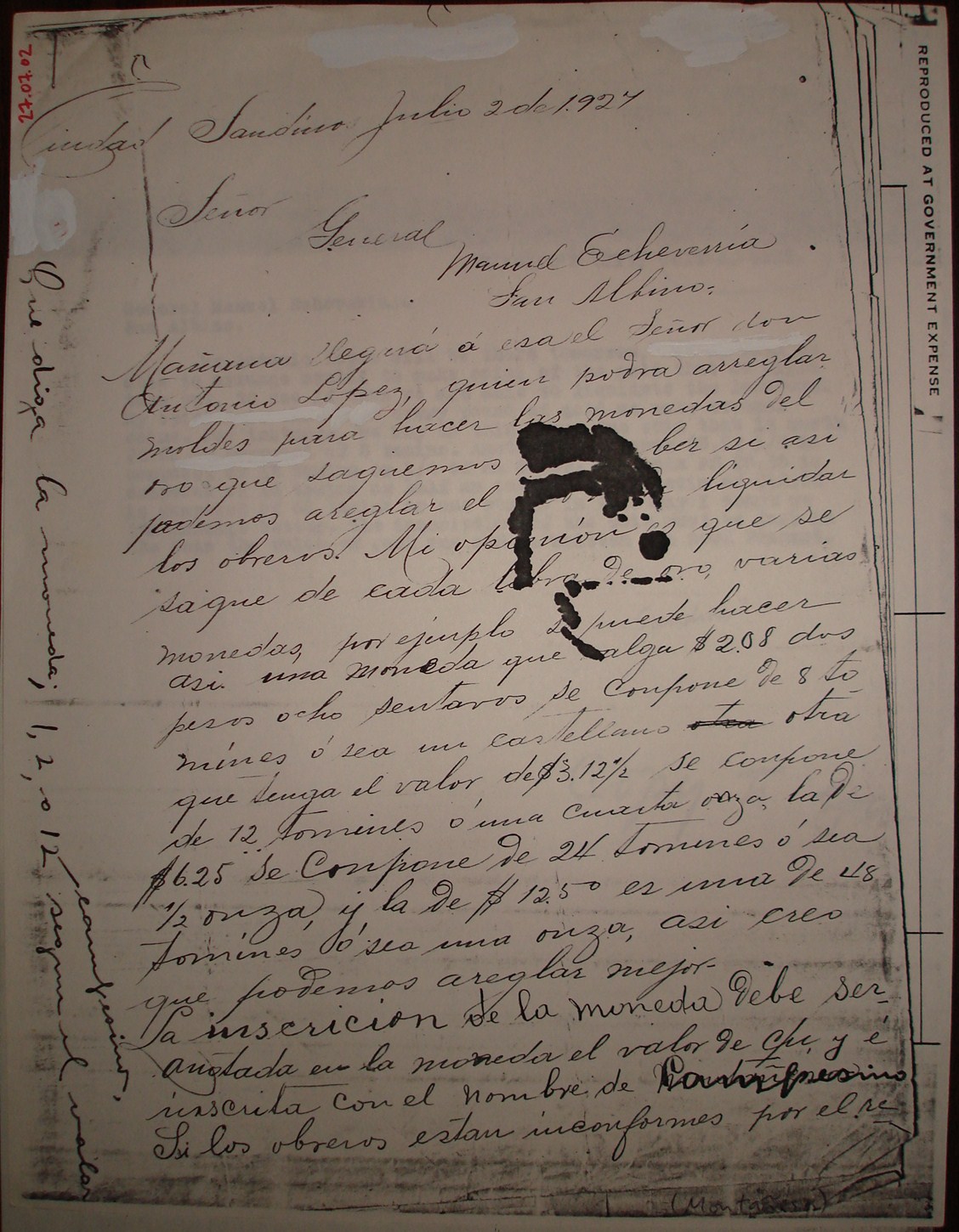 [in margin:] Que diga la moneda; 1, 2, o 12 Campesino, según