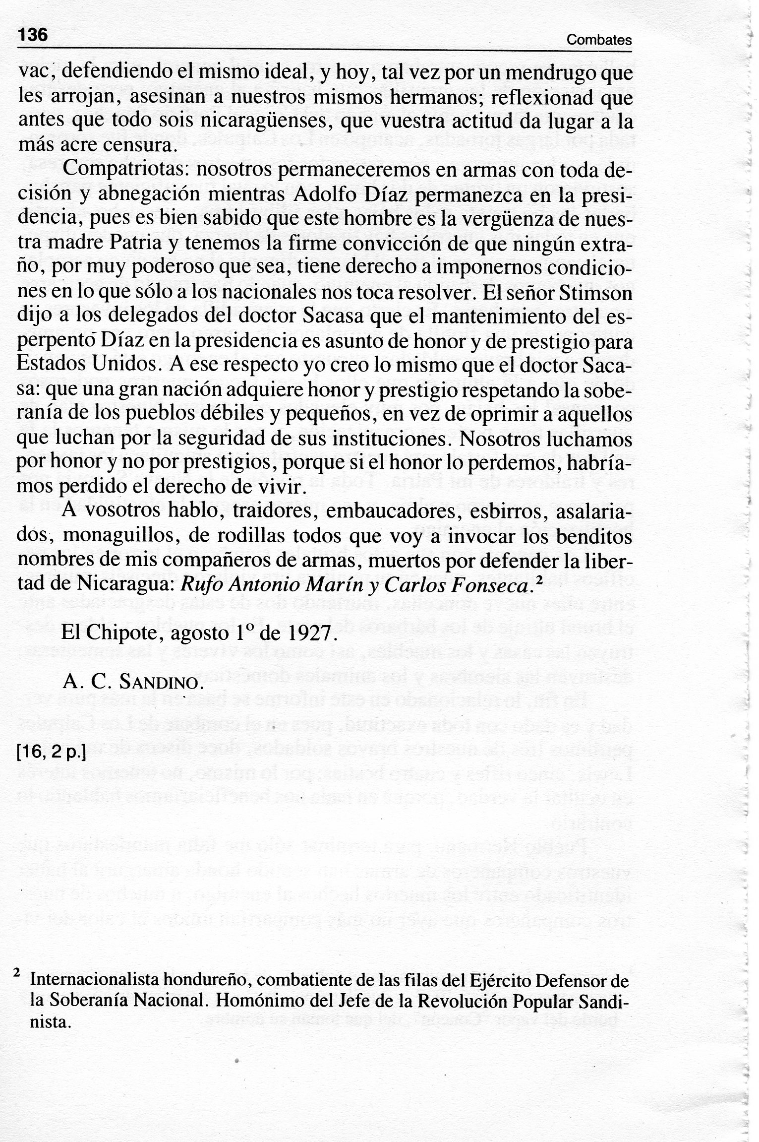 • Source: PV1: 134-36. (Sergio Ramírez, comp. & ed., Augusto C. Sandino, el pensamiento vivo (Managua: Nueva Nicaragua, 1984), v. 1, 134-36.)