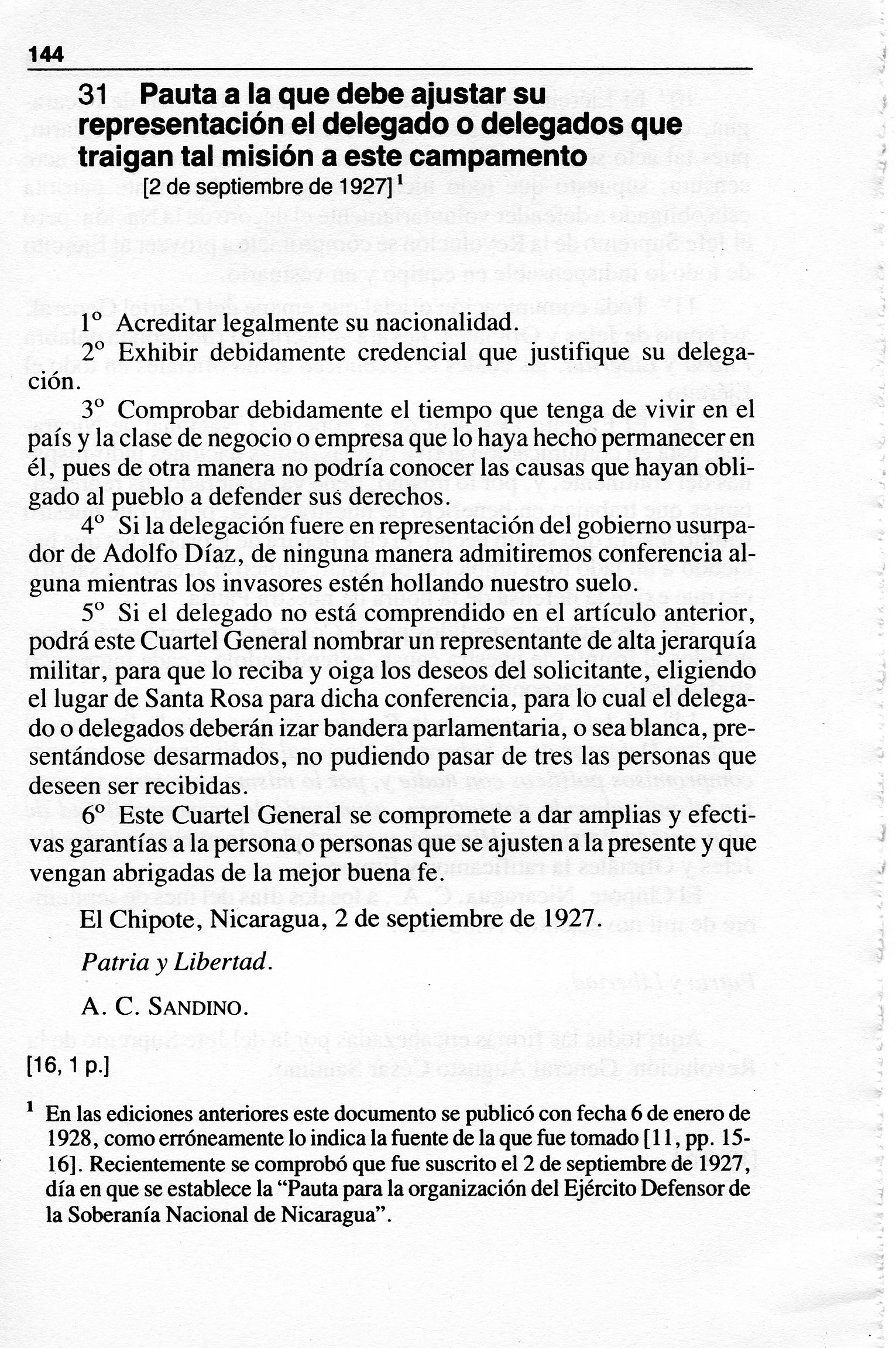 • Source: PV1: 144. (Sergio Ramírez, comp. & ed., Augusto C. Sandino, el pensamiento vivo (Managua: Nueva Nicaragua, 1984), v. 1, 144.)