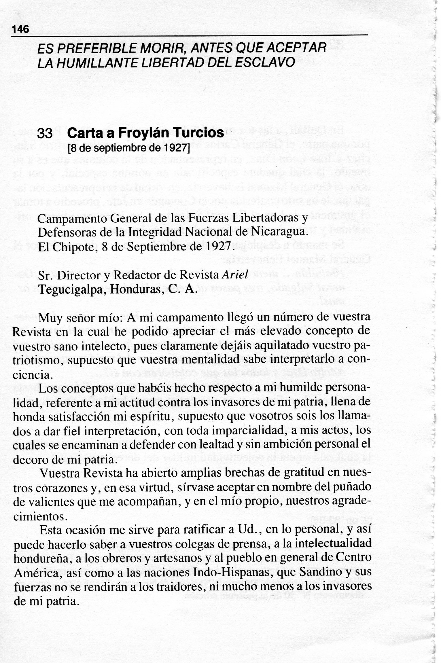 EDSN 27.09.08 • Sandino — Carta a Froylán Turcios
