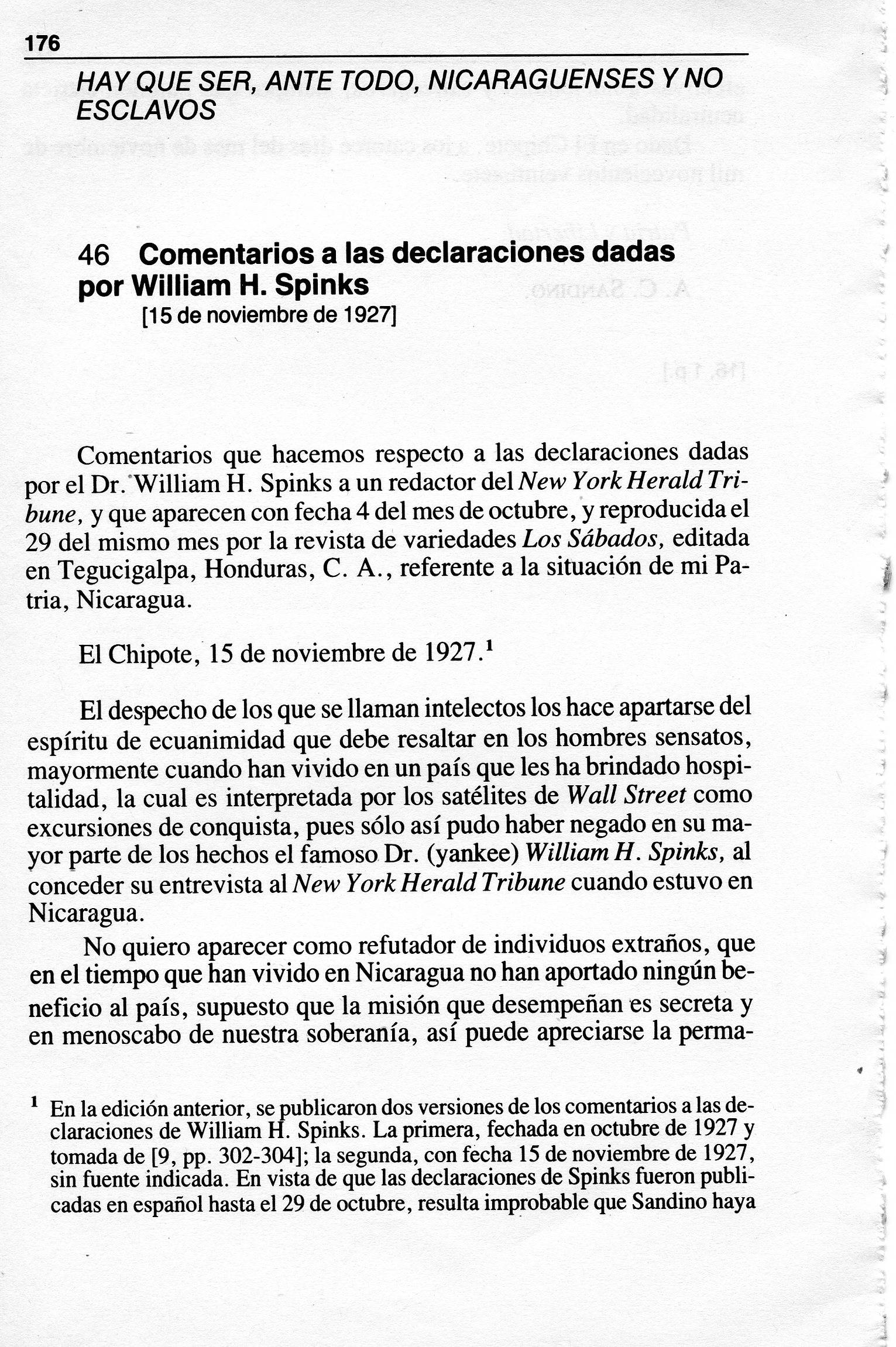 EDSN 27.11.15 • Sandino — Comentarios a las Declaraciones dadas por William H. Spinks