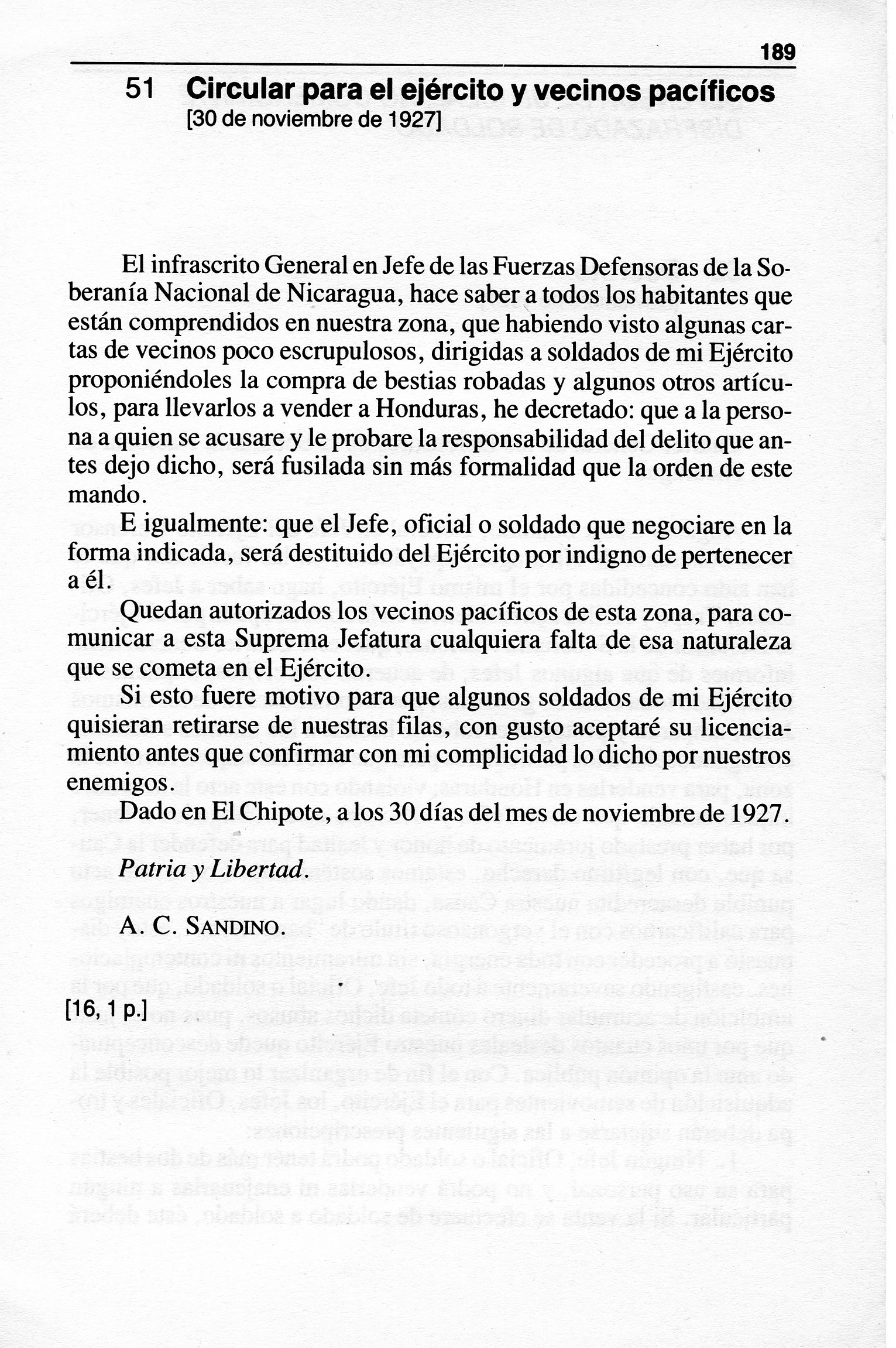 EDSN 27.11.30B • Sandino — Circular para el Ejército y Vecinos Pacíficos