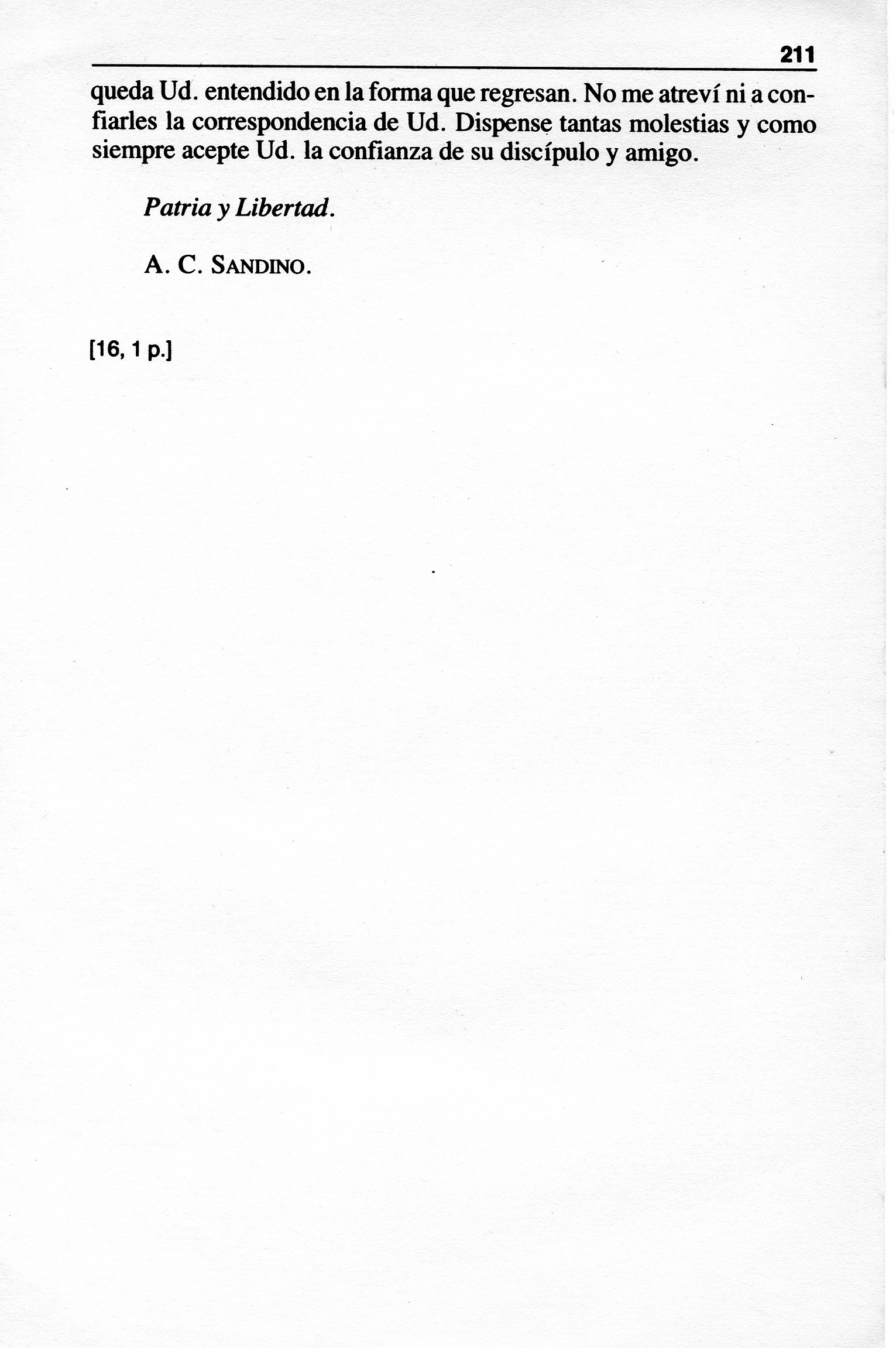 • PV1: 210-11. (Sergio Ramírez, comp. & ed., Augusto C. Sandino, el pensamiento vivo (Managua: Nueva Nicaragua, 1984), v. 1, 210-11.)