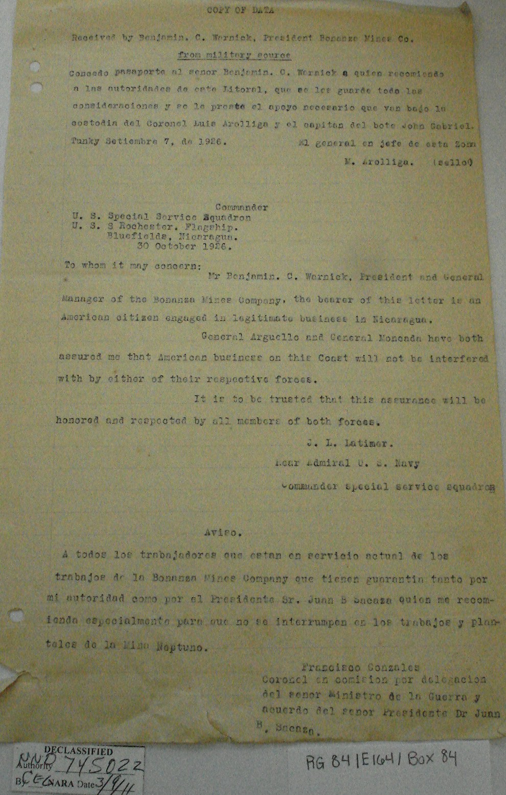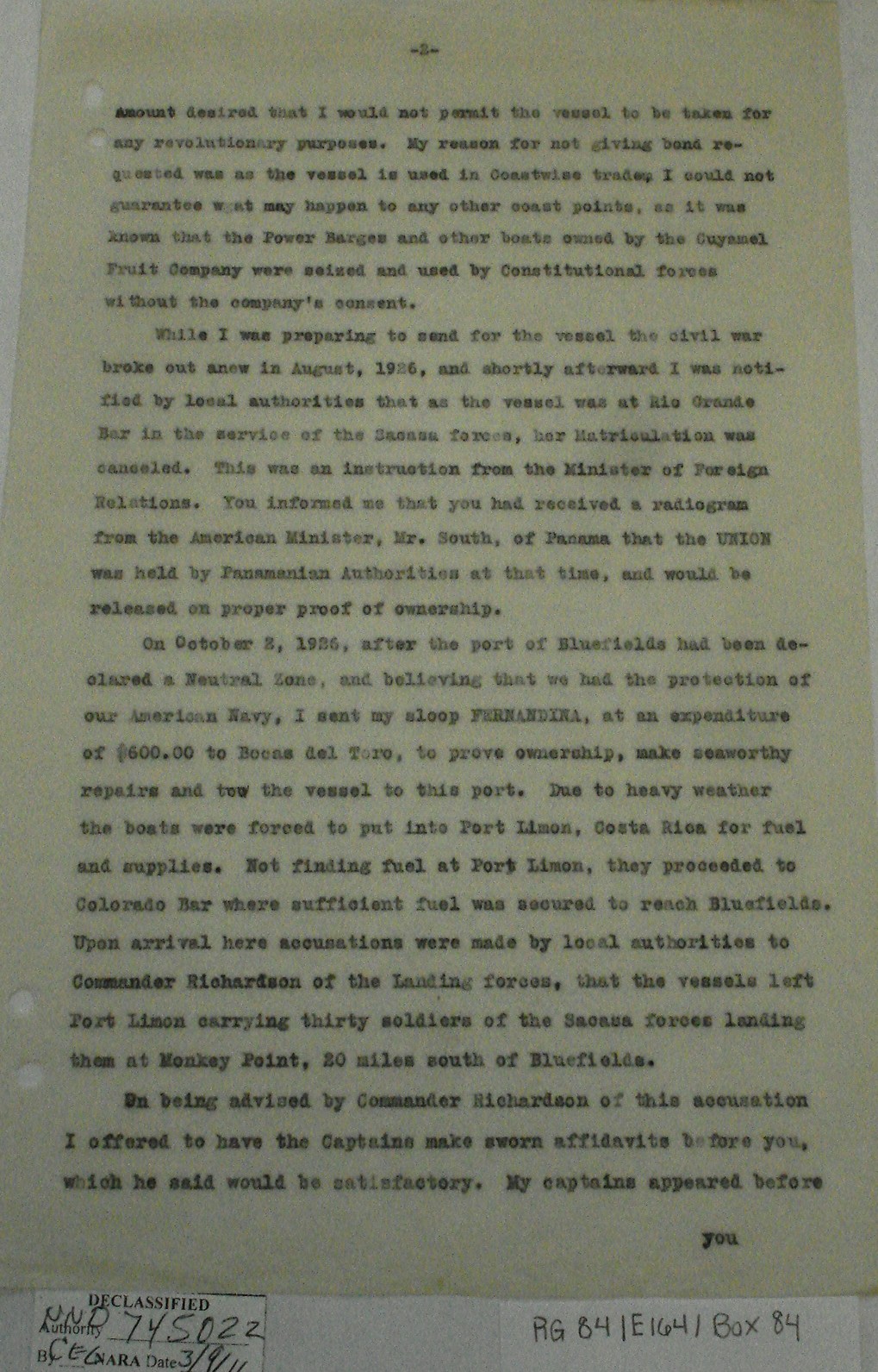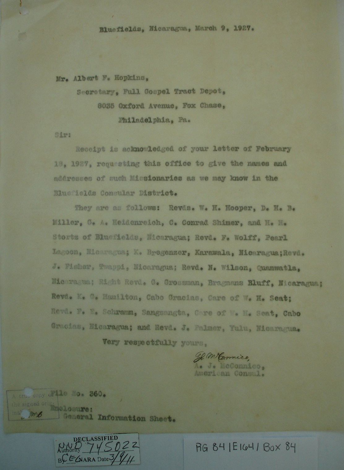 Nicaragua; Revd. K. C. Hamilton, Cabo