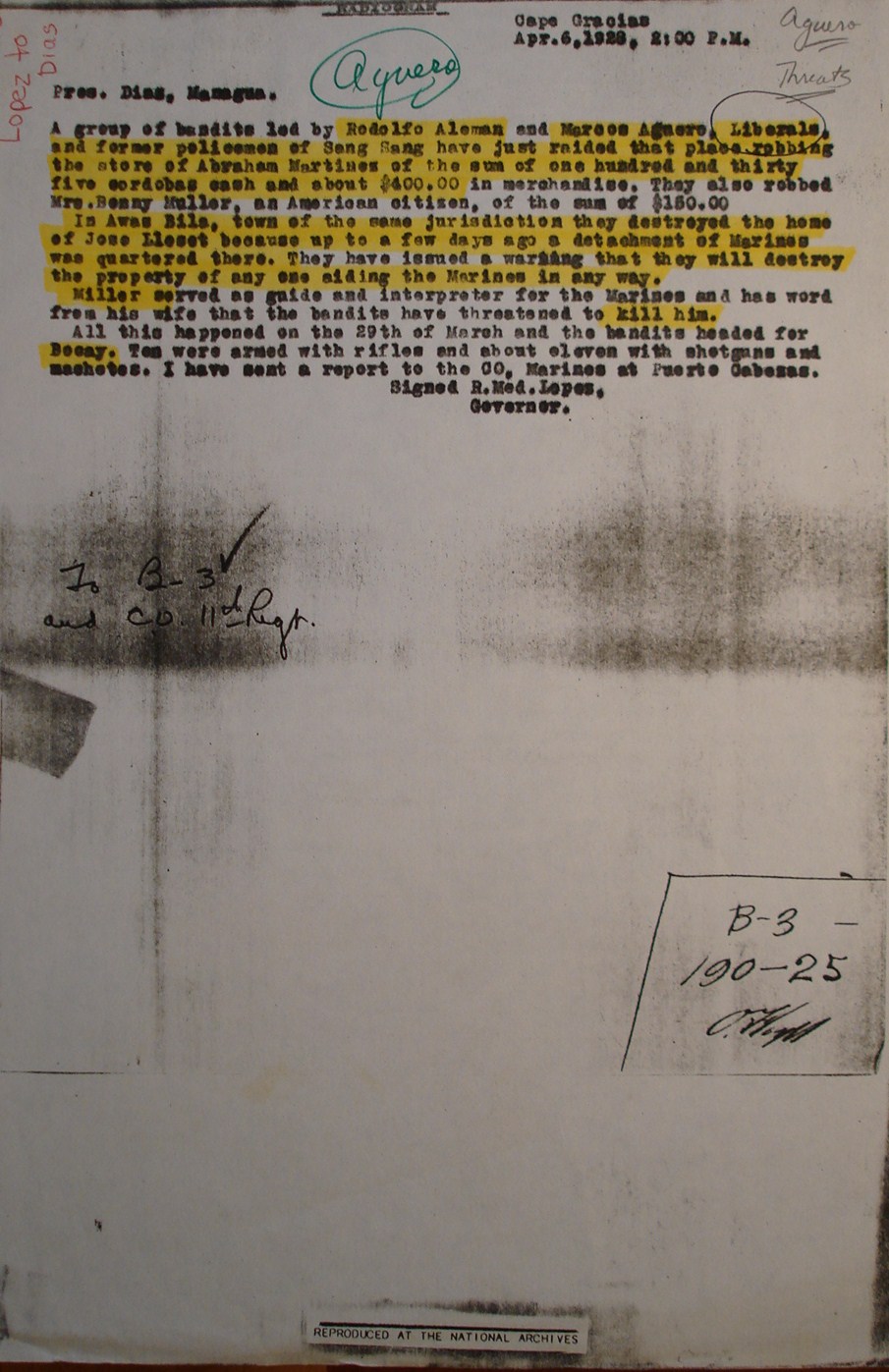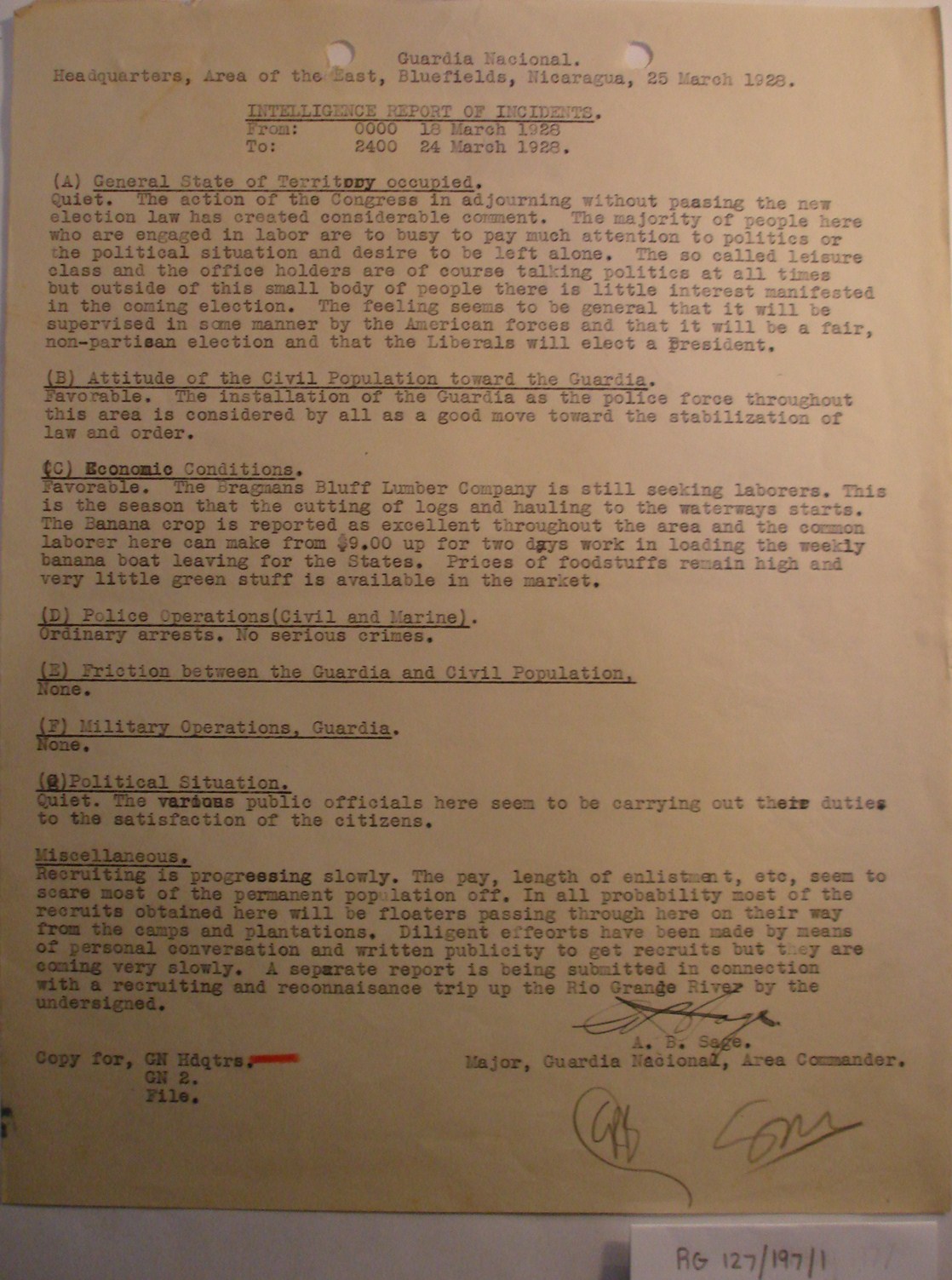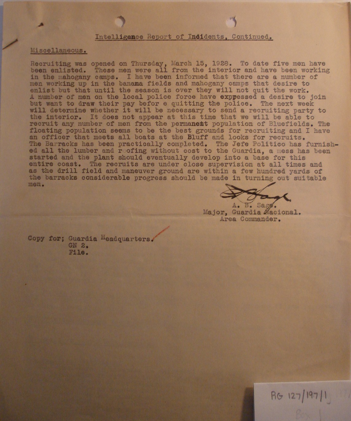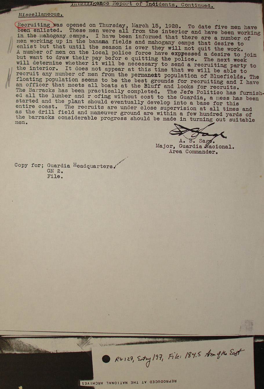 Radio to CO EL GALLO, CO BLUEFIELDS, NCO