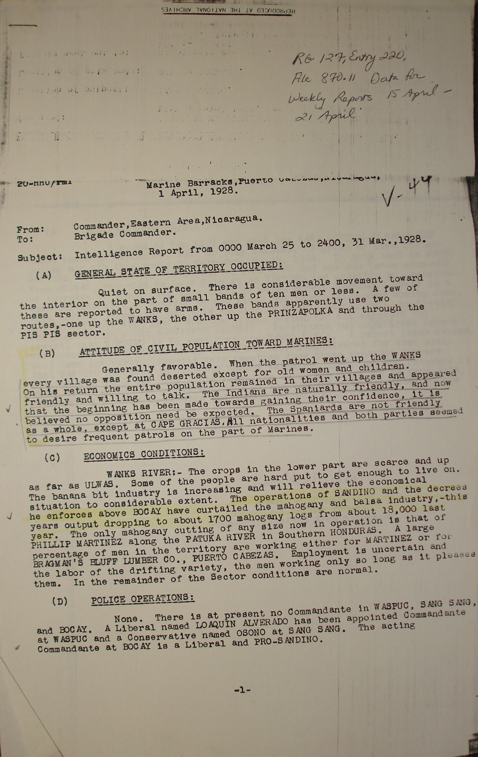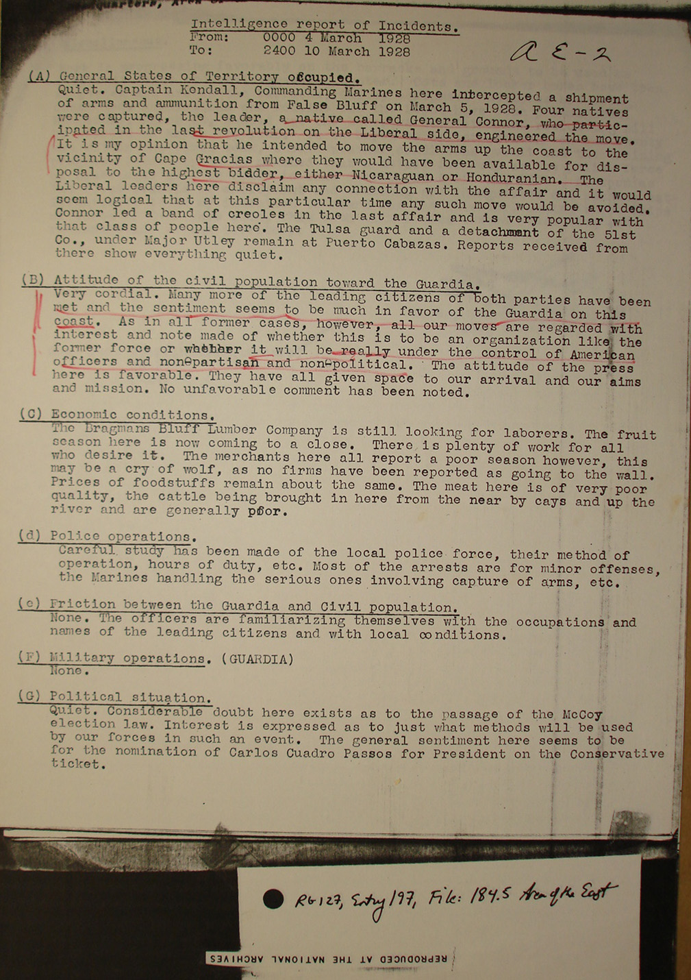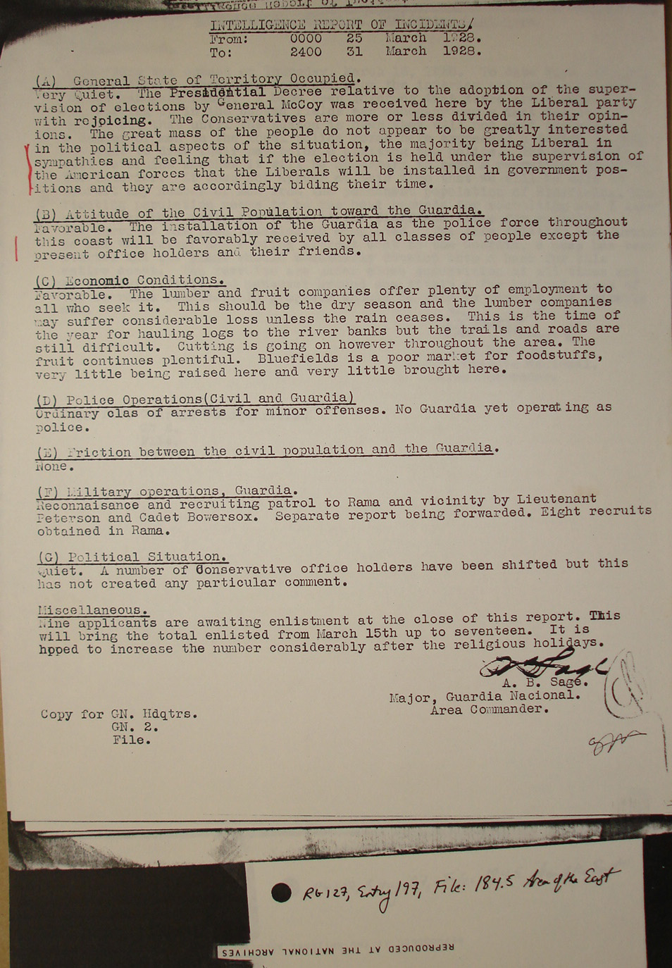 Radio to CO EL GALLO, CO BLUEFIELDS, NCO