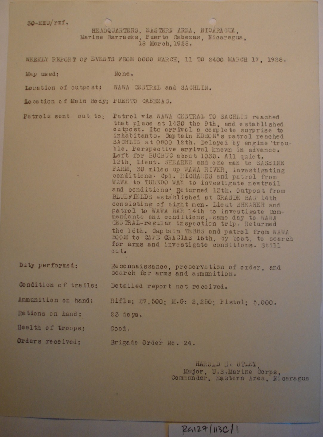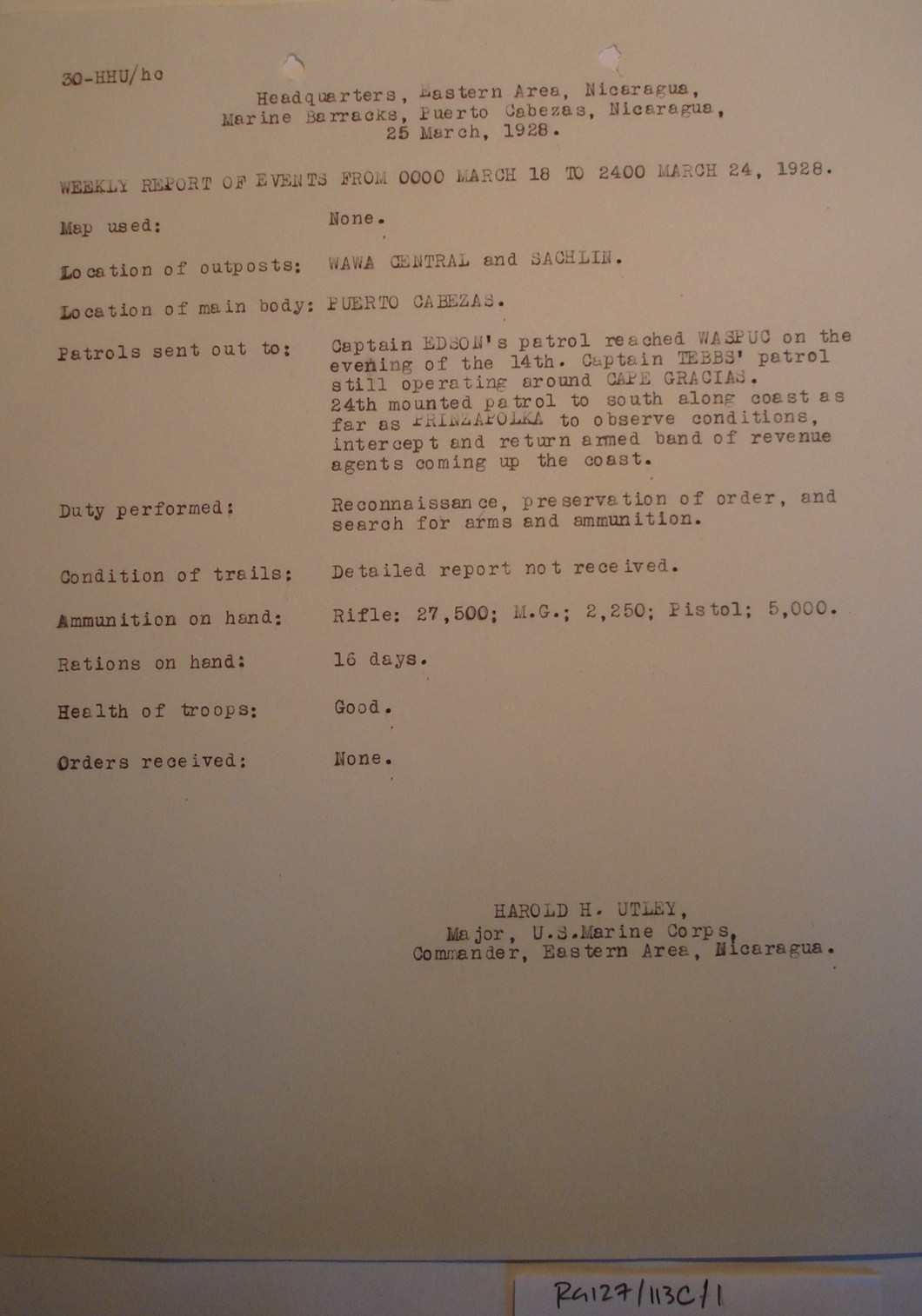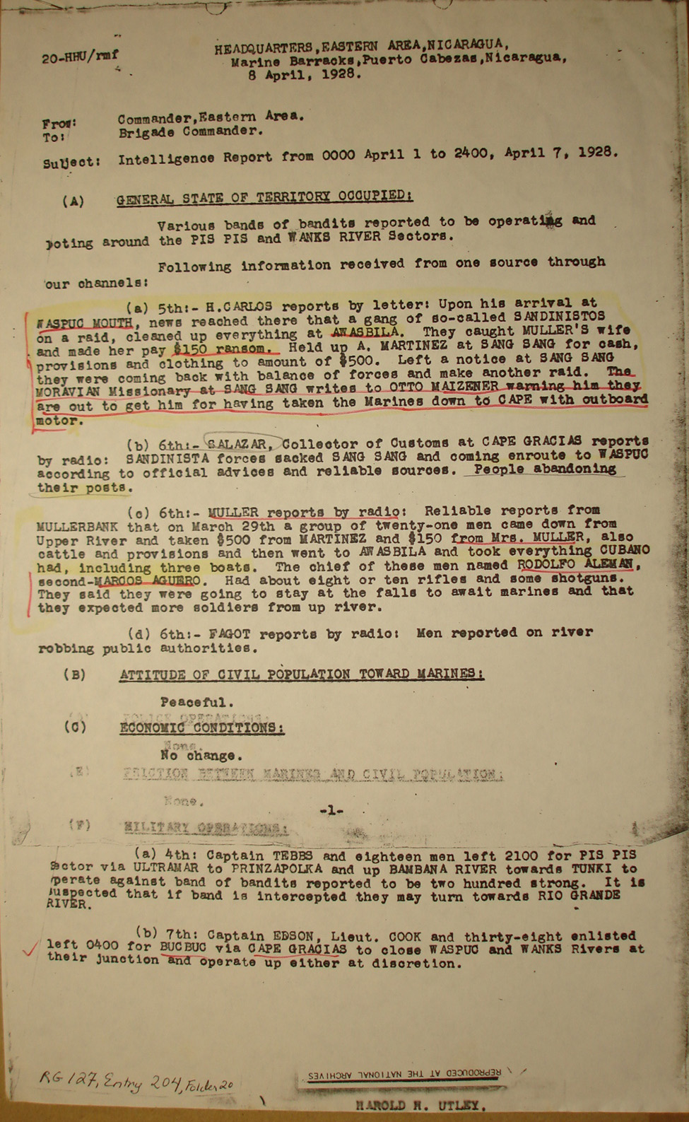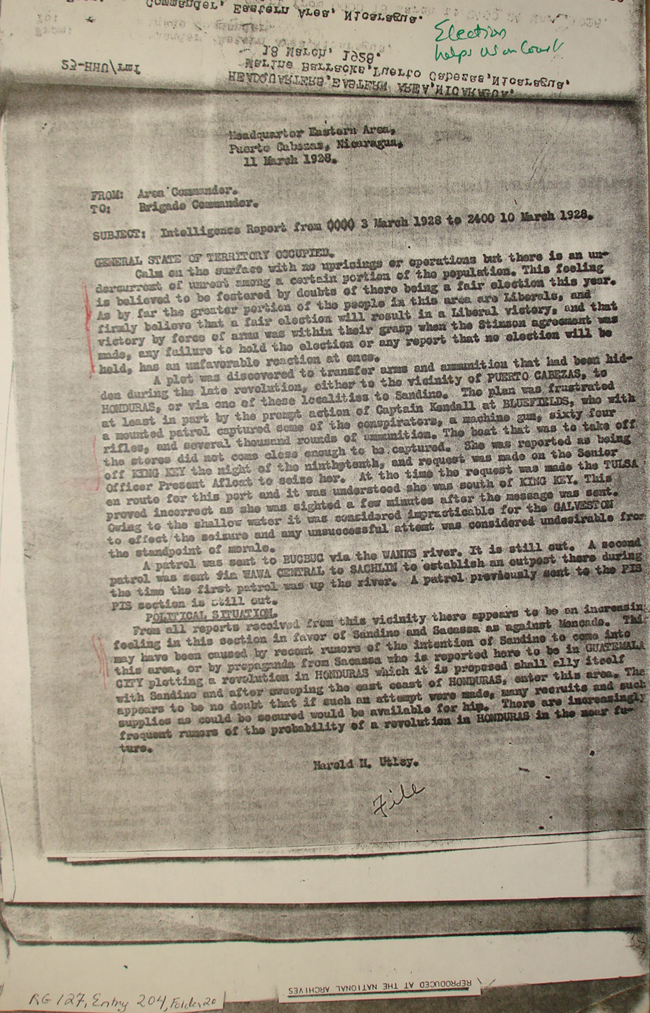 Radio to CO EL GALLO, CO BLUEFIELDS, NCO