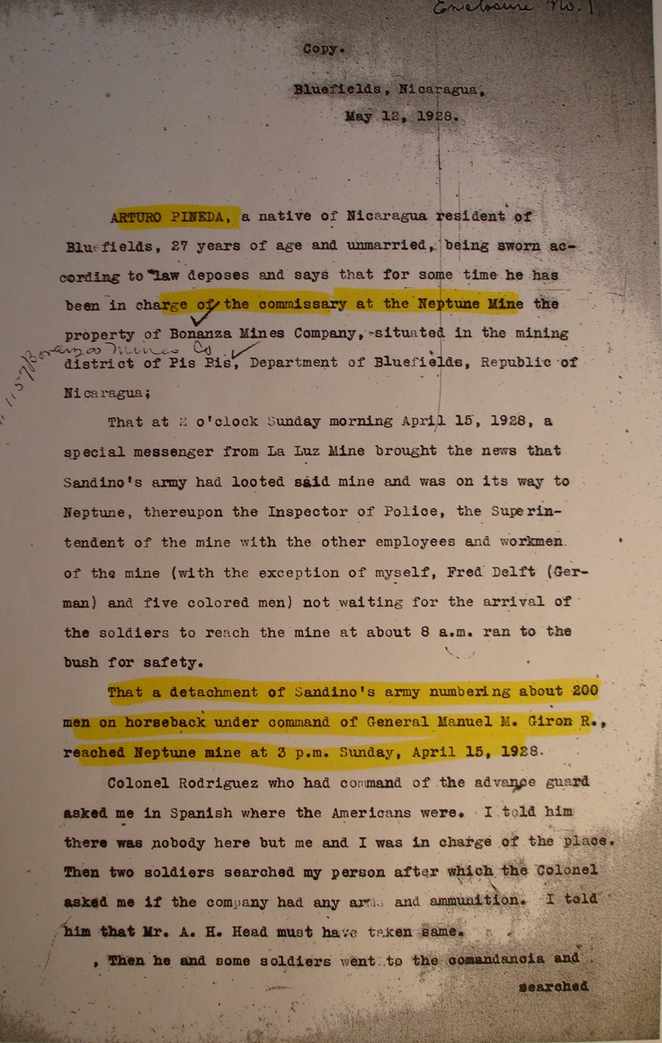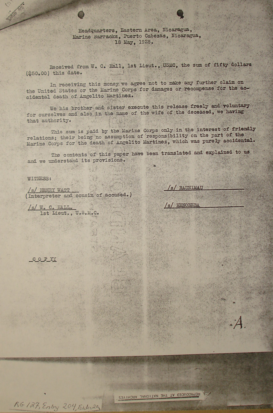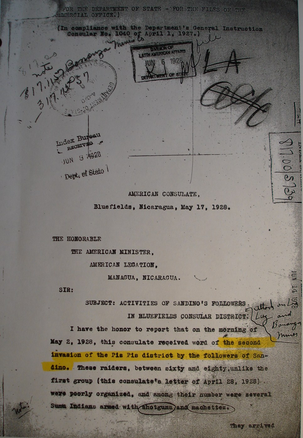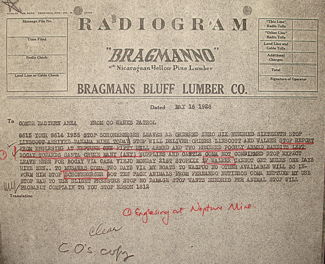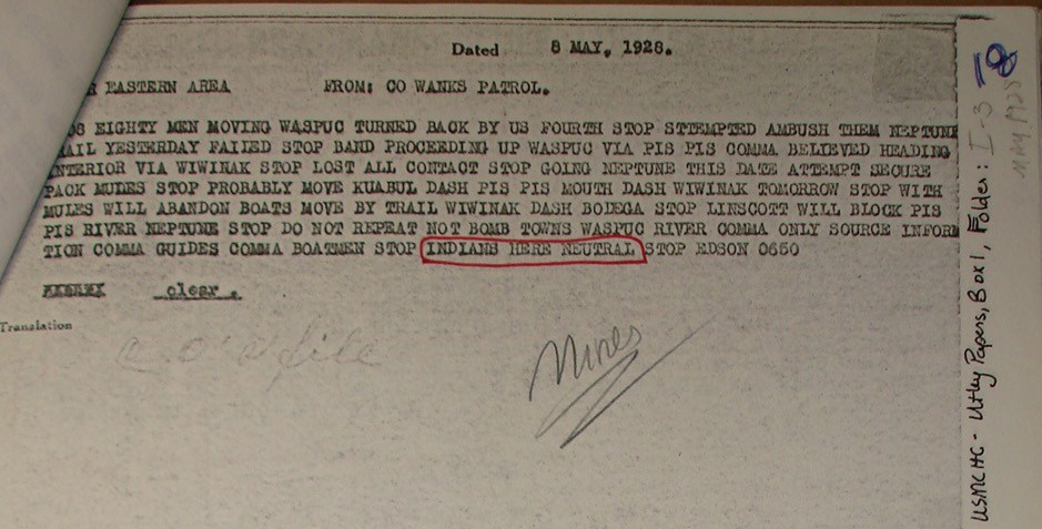 Miskitu Indians of the interior: "INDIANS HERE NEUTRAL." Also