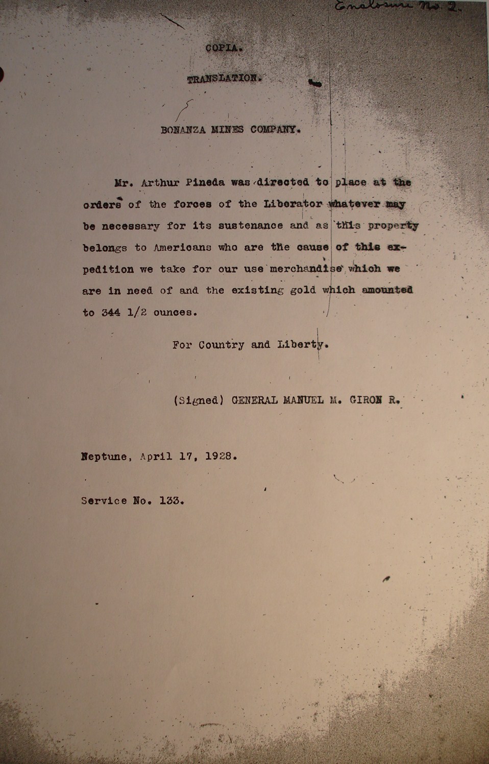 copy enclosed with these papers. ¶