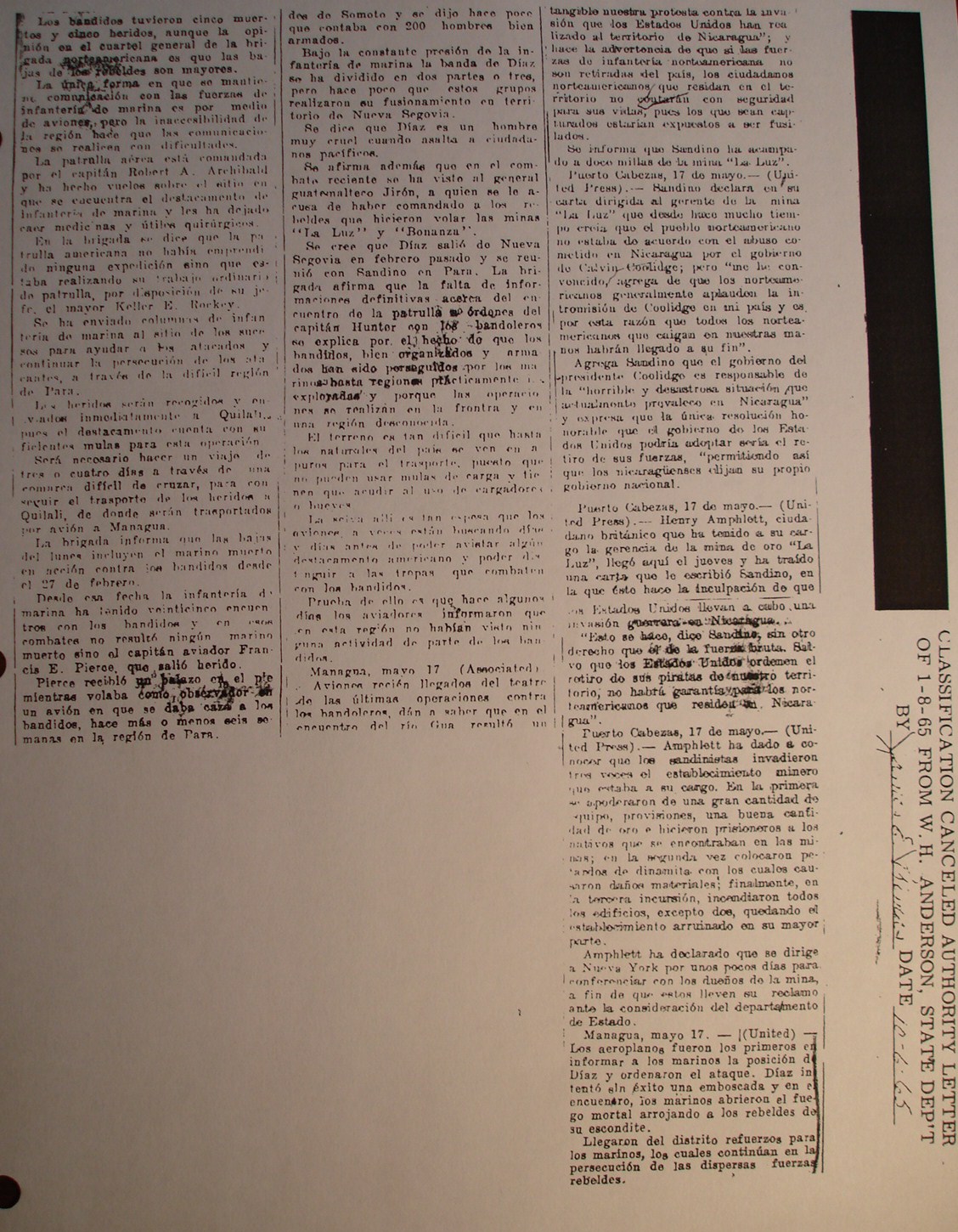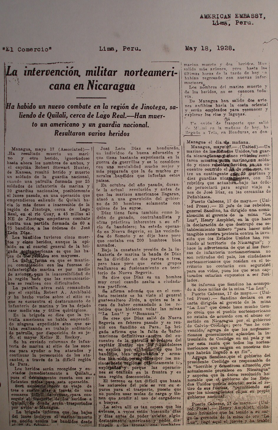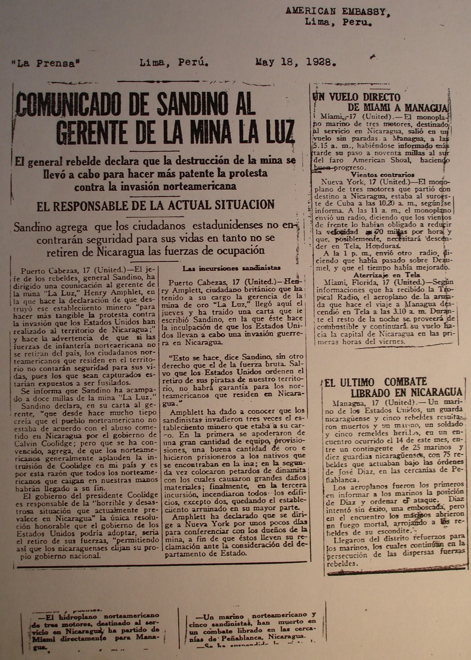 mayo.—(United Press)—Sandino declara en