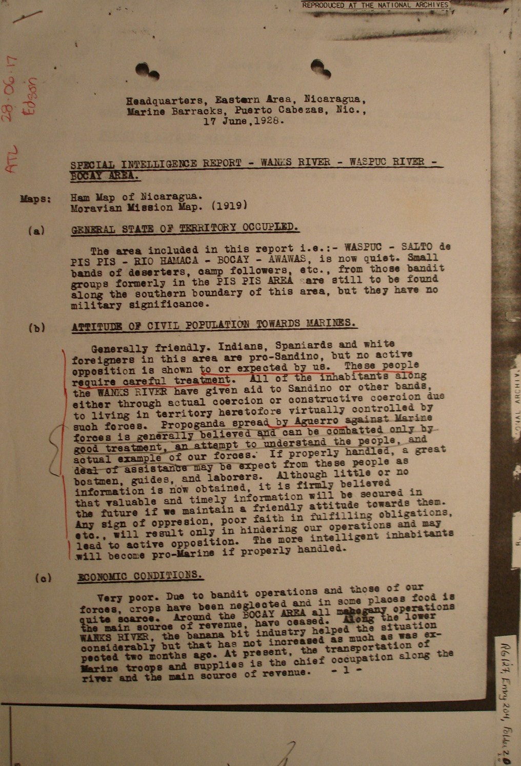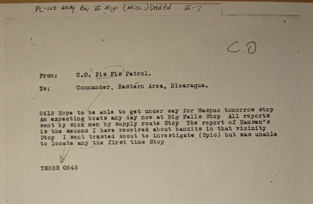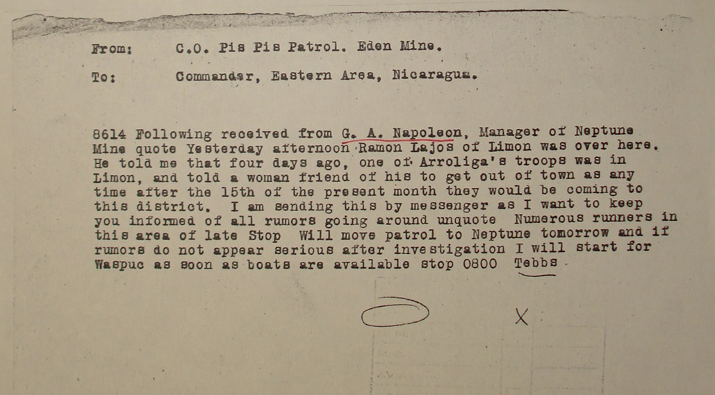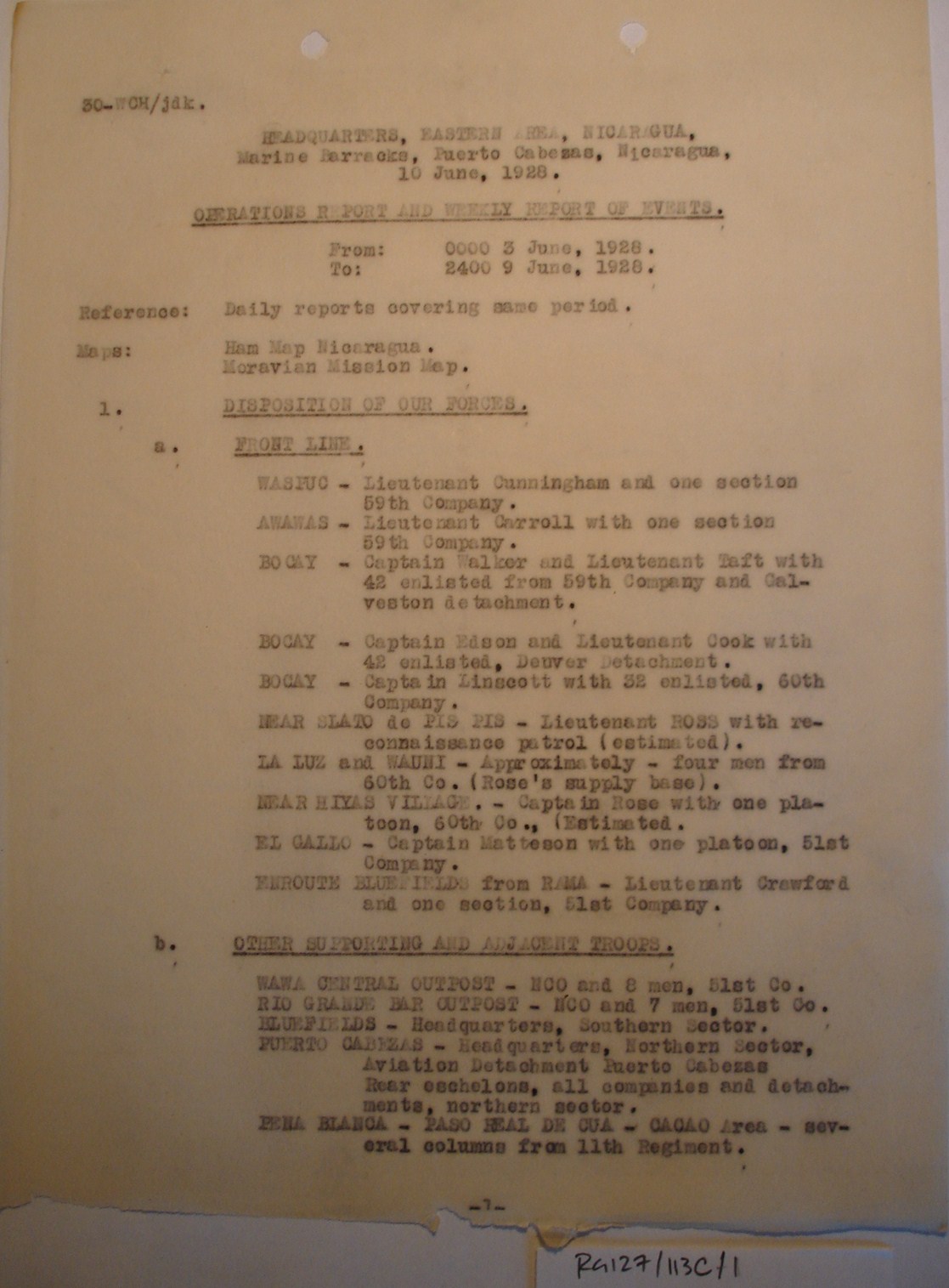 CABEZAS via PRINZAPOLKA. ¶ d. Troops in