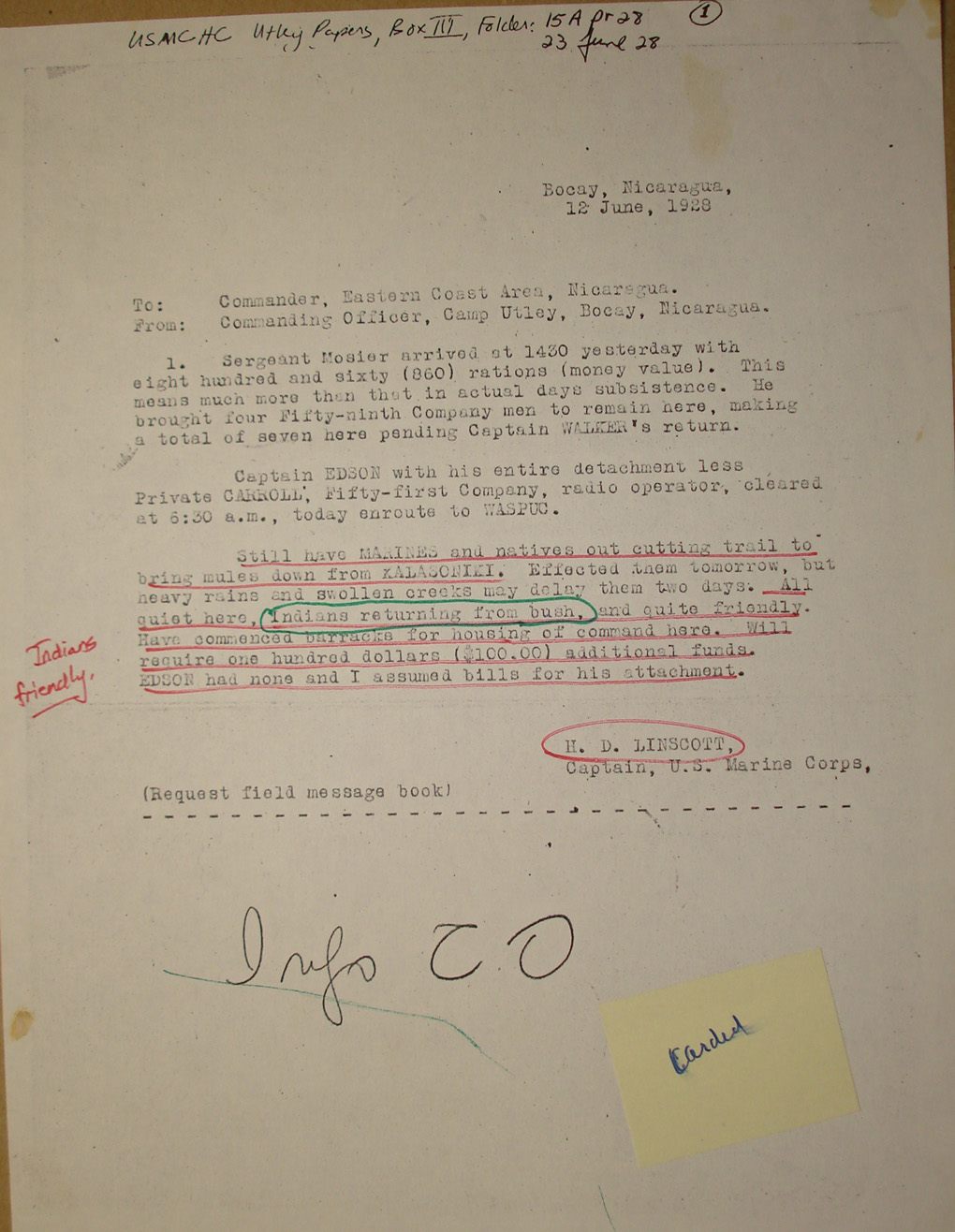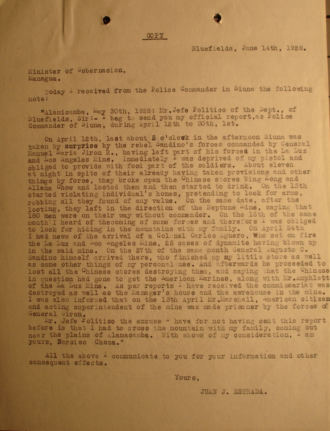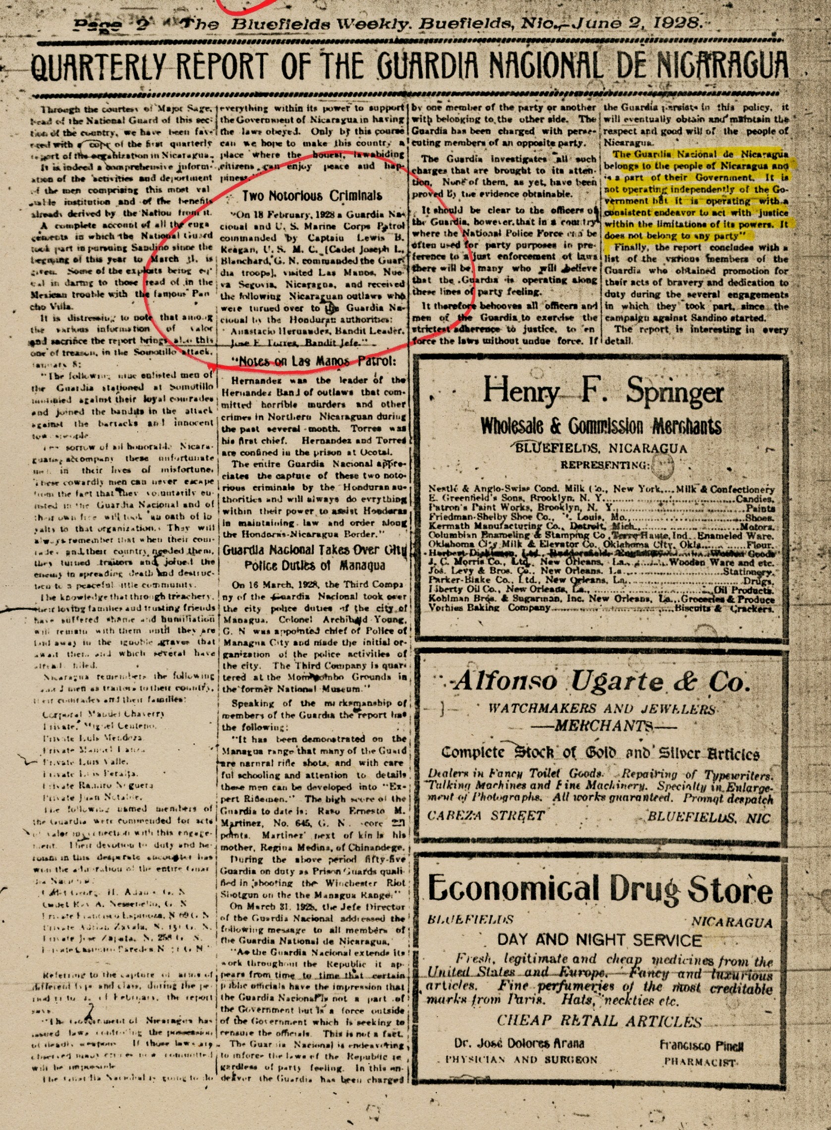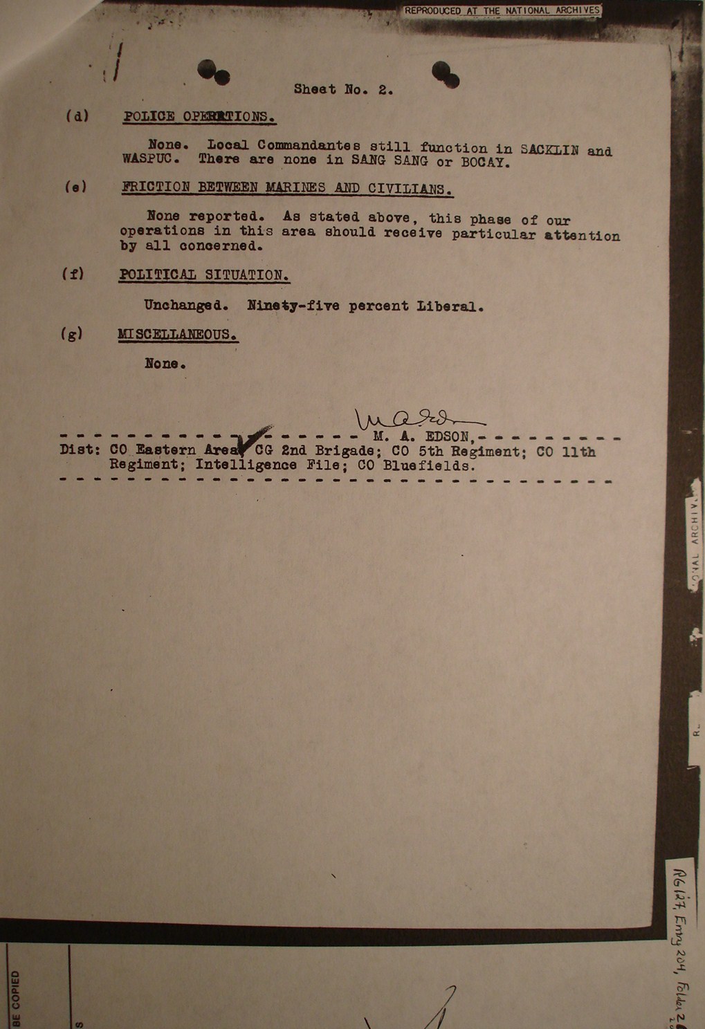 CABEZAS via PRINZAPOLKA. ¶ d. Troops in