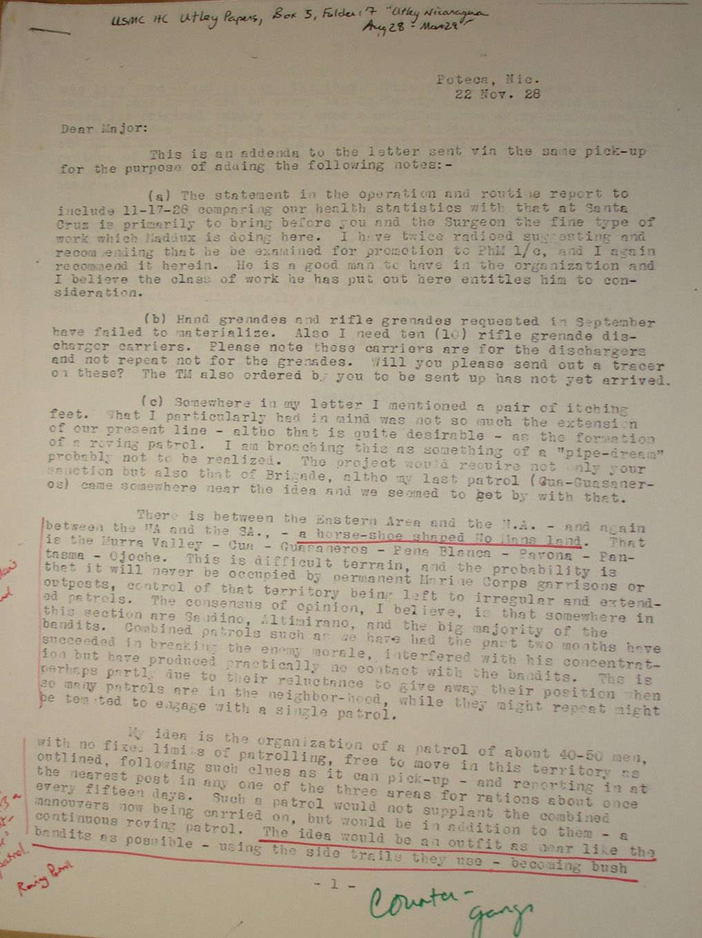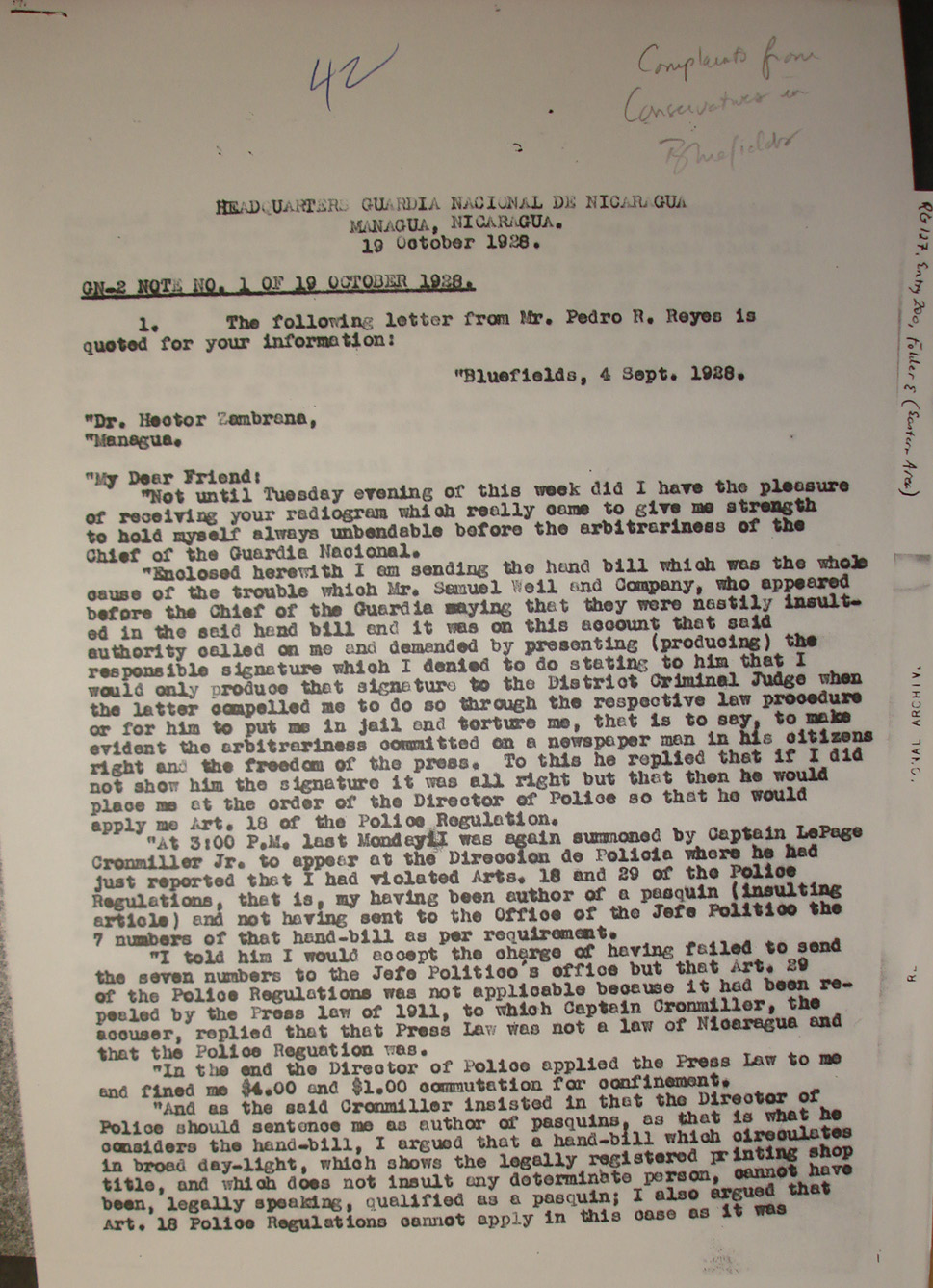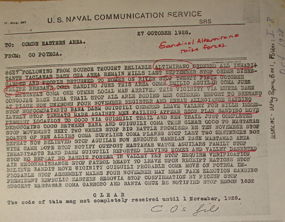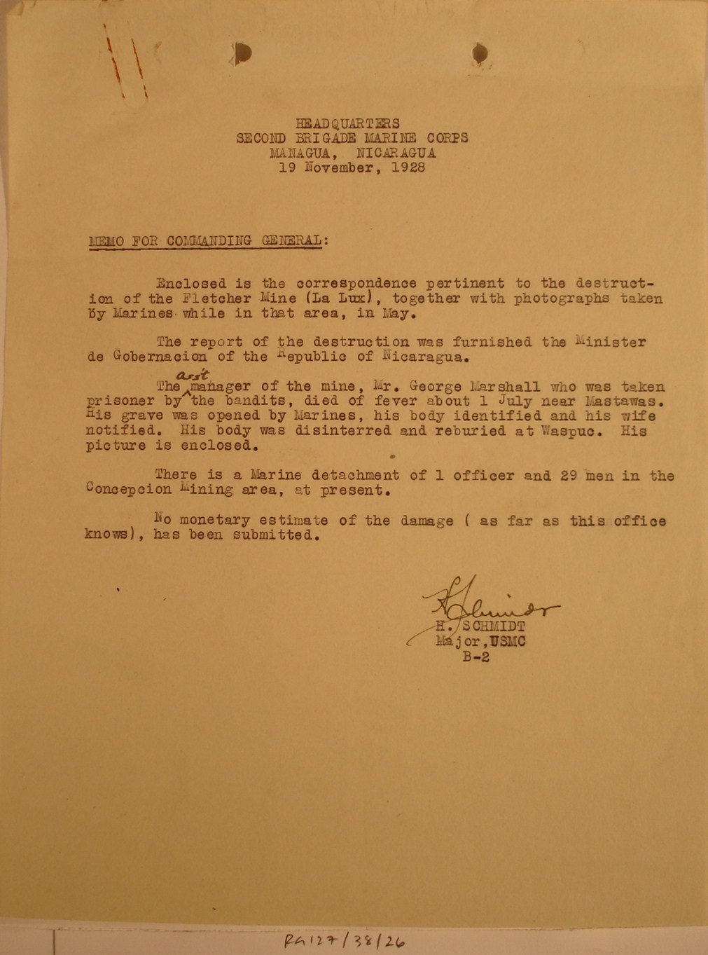 Cabezas, to Major H. H. Utley, Puerto Cabezas,