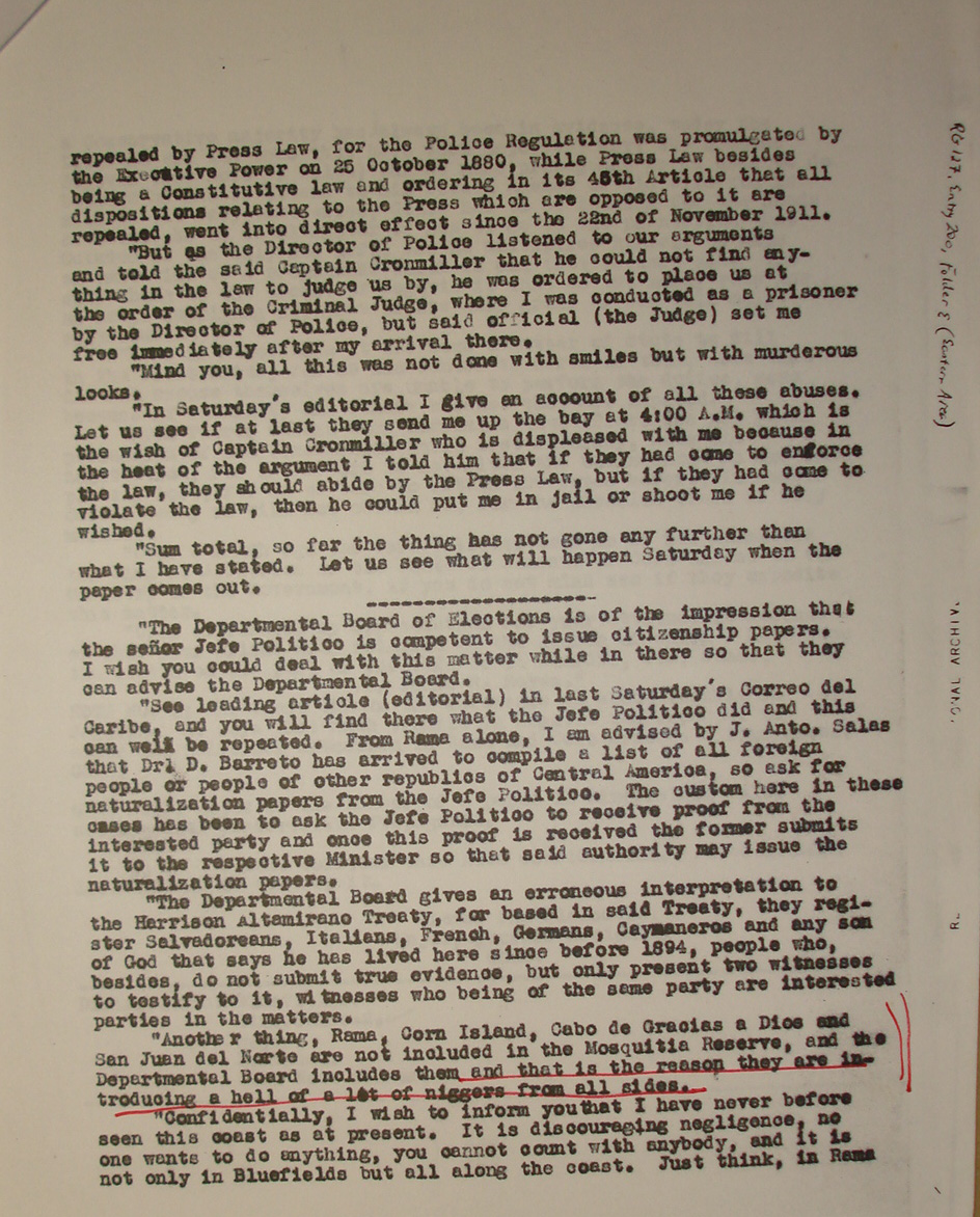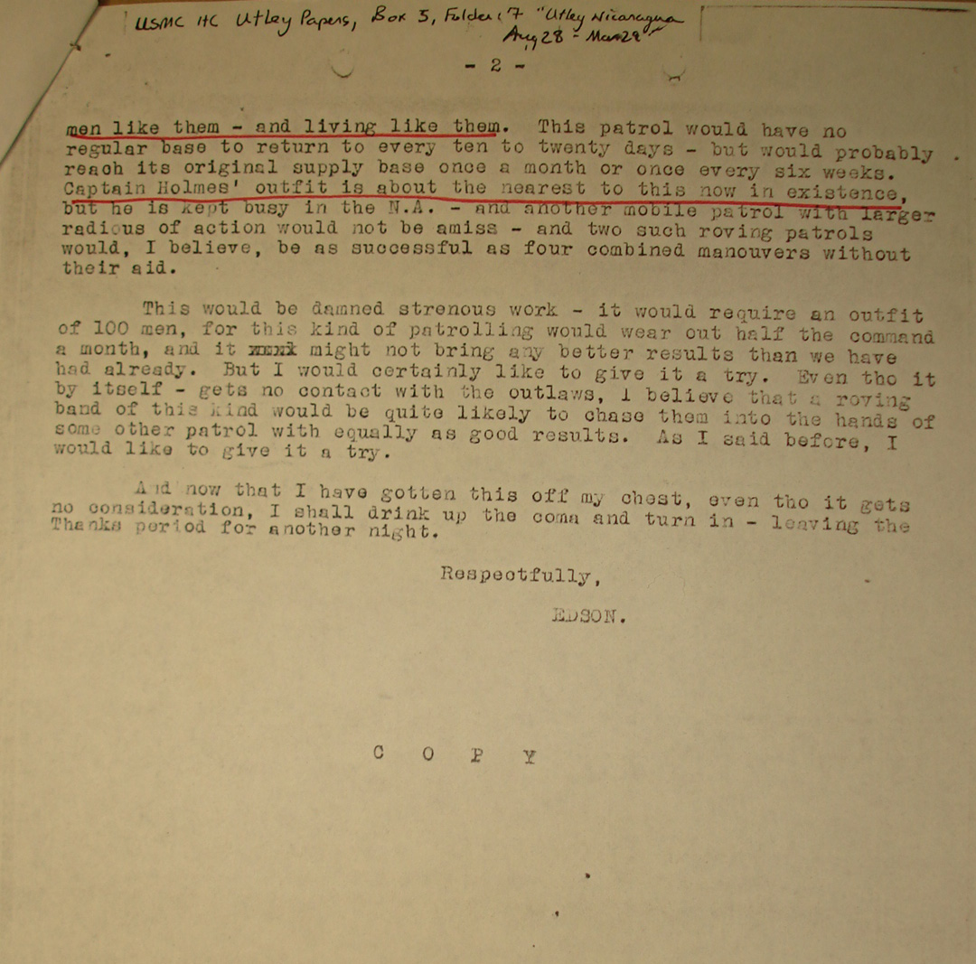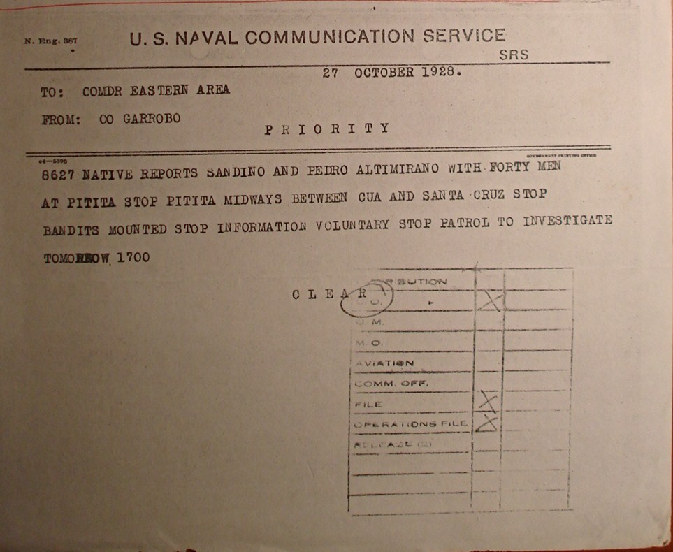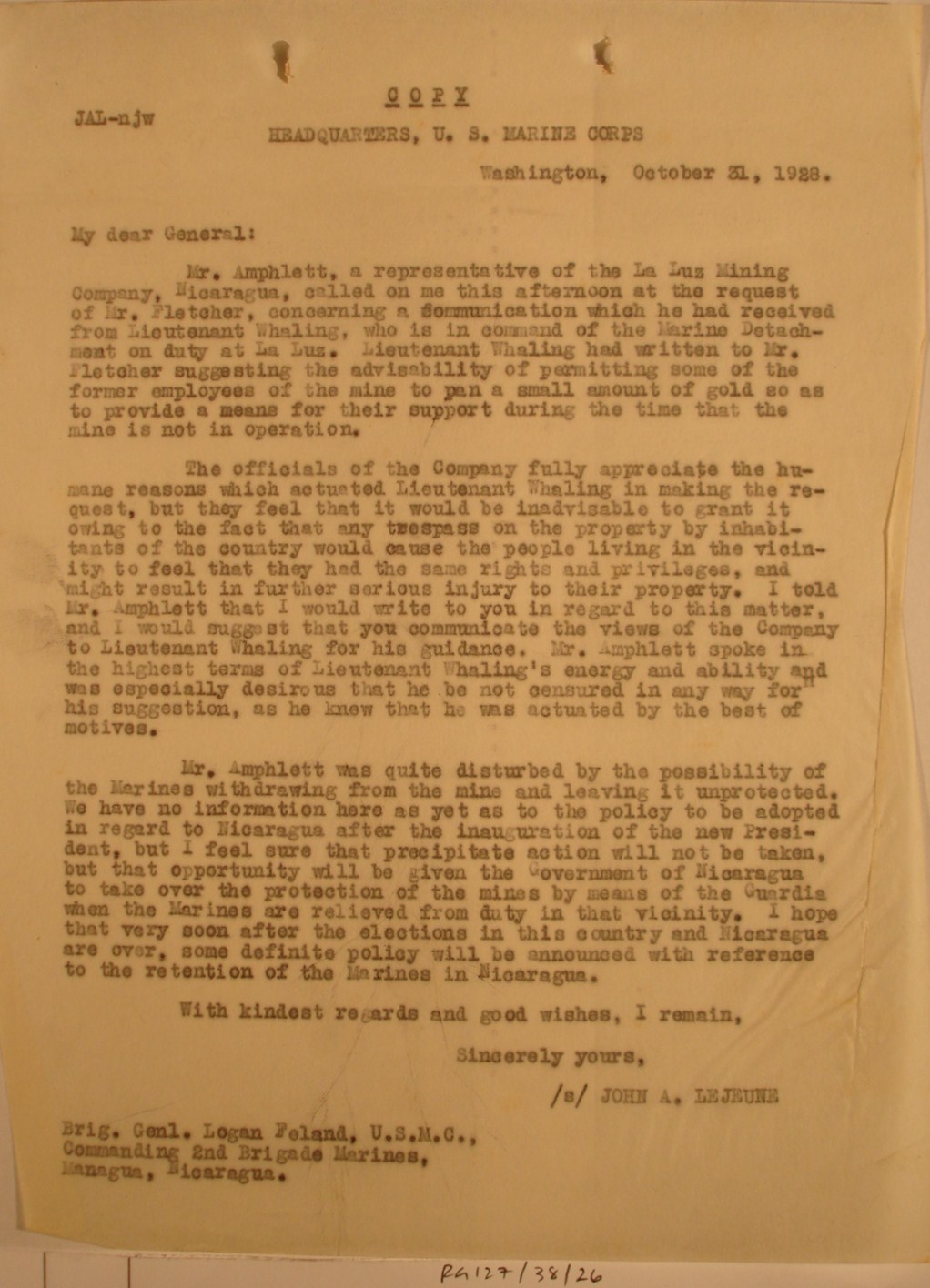 Cabezas, to Major H. H. Utley, Puerto Cabezas,