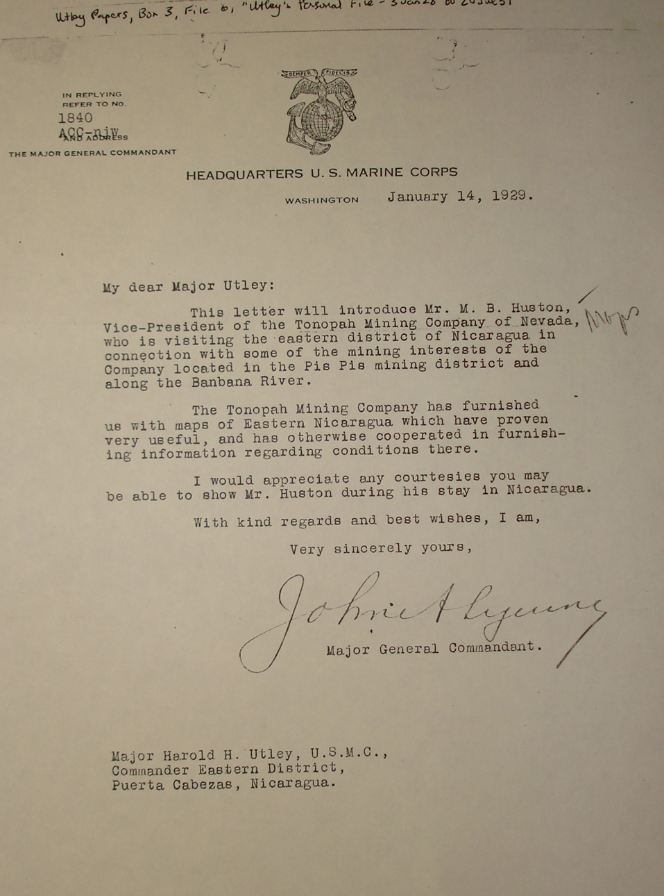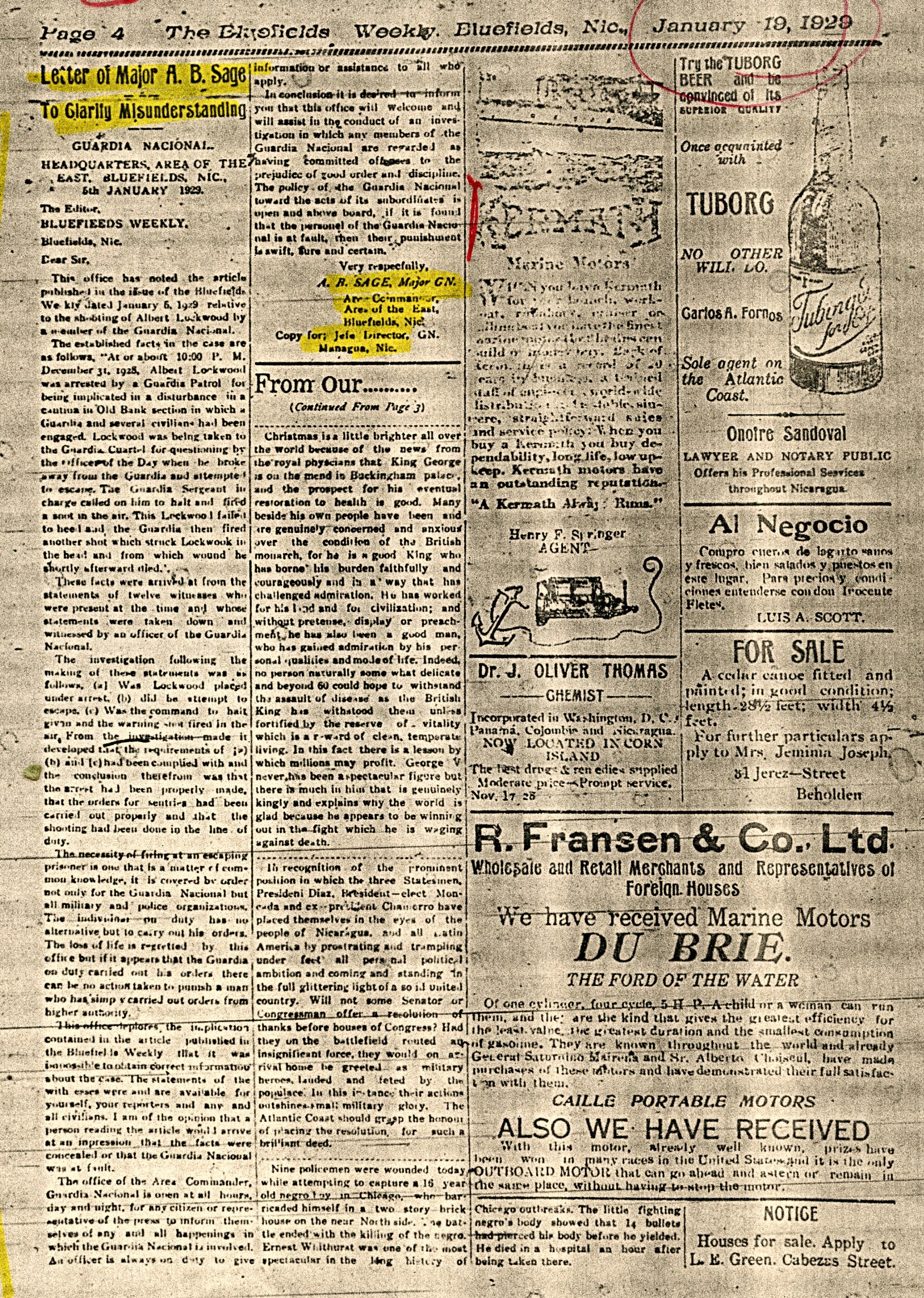 H. Utley, Puerto Cabezas. "FOLLOWING