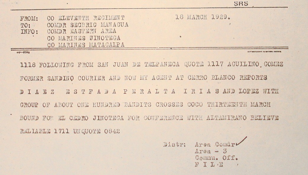 Gen. Feland, Managua, to Major H.