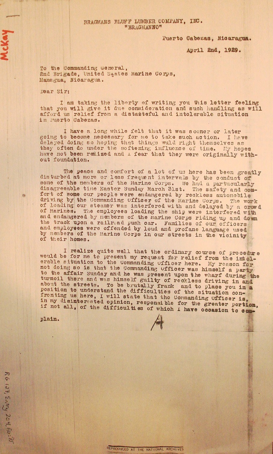 McKay, dated 2 April, 1929. (B)