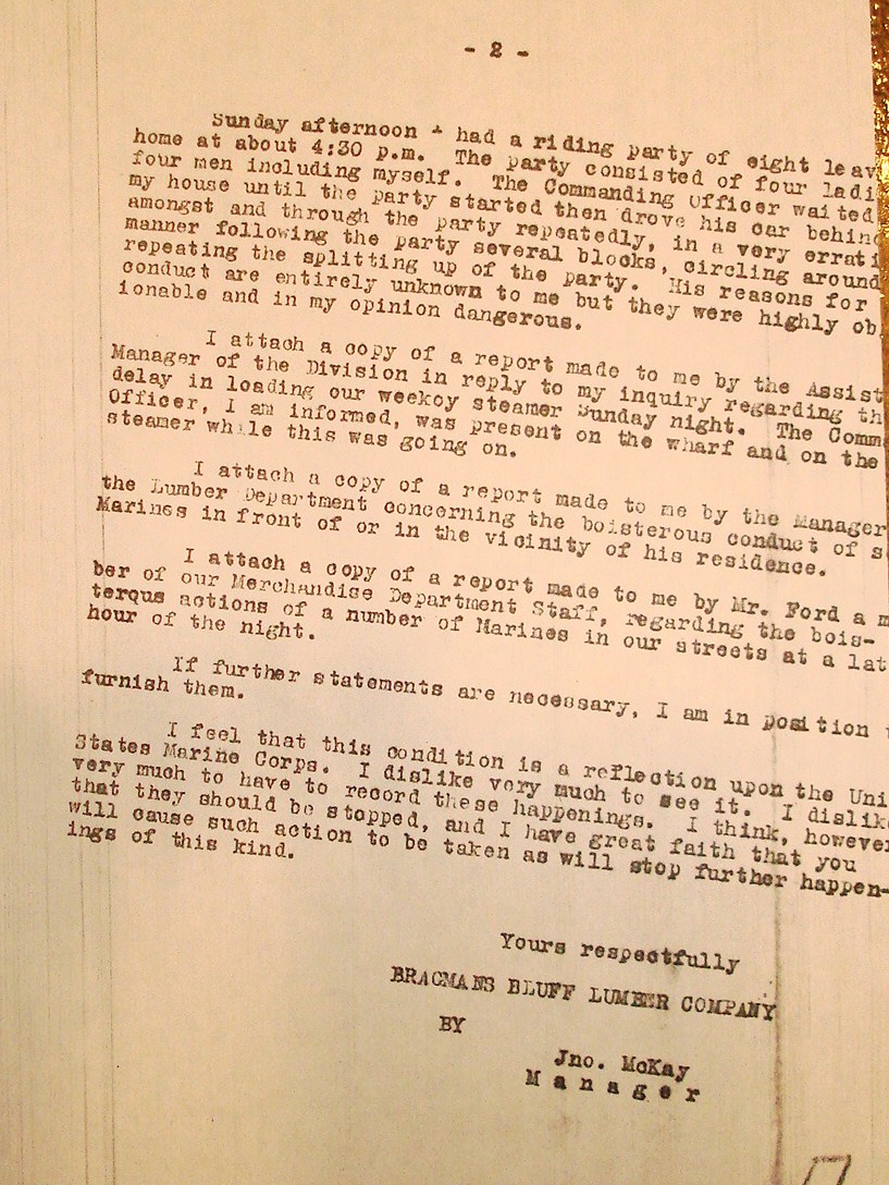 Puerto Cabezas, Second Brigade Inspector Henry L. Larsen, Managua, to General