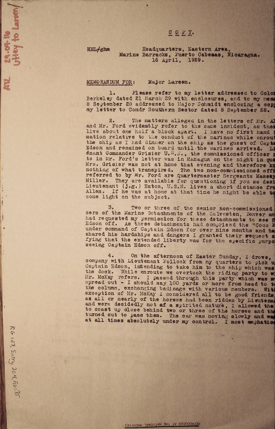 Henry L. Larsen, Managua, to General
