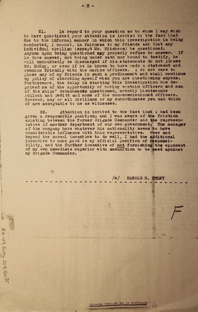 Reply of Major H. H. Utley, dated 16