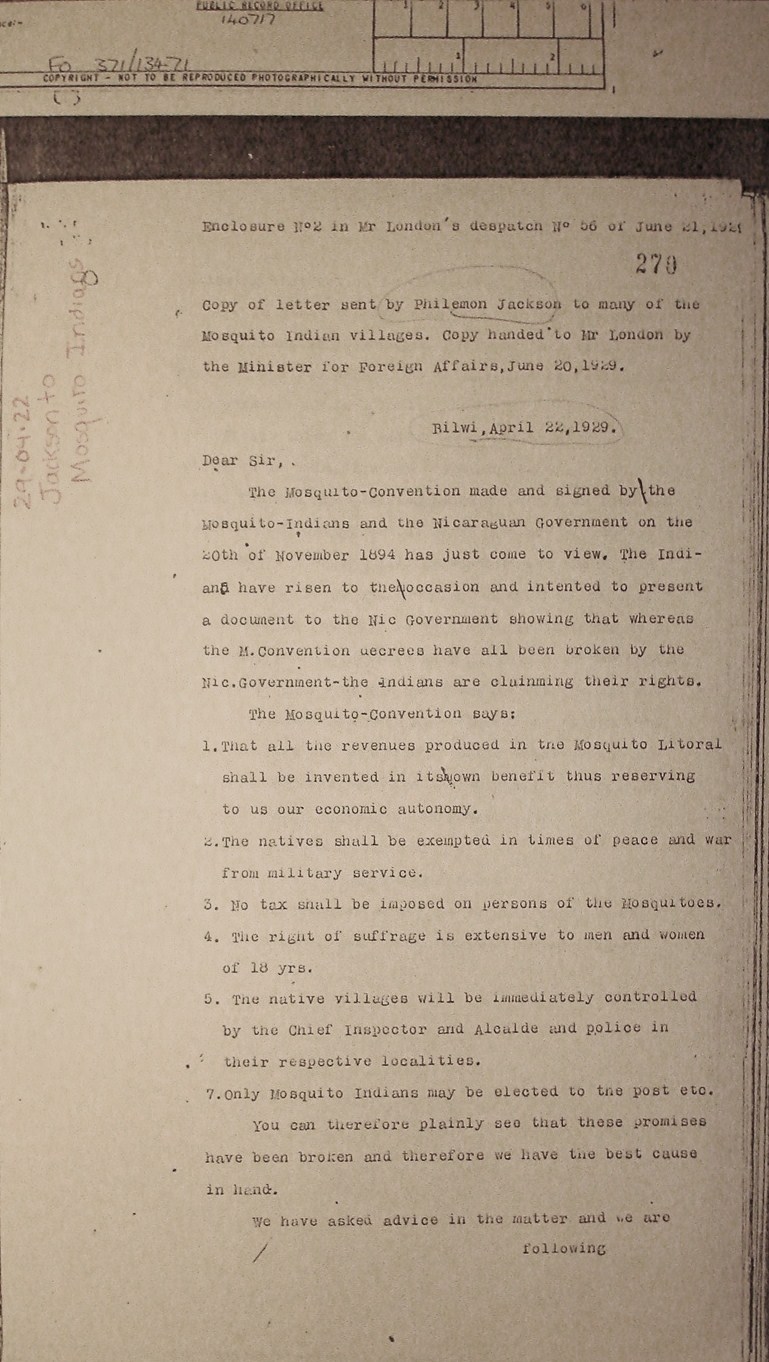 circulated in Miskitu villages by