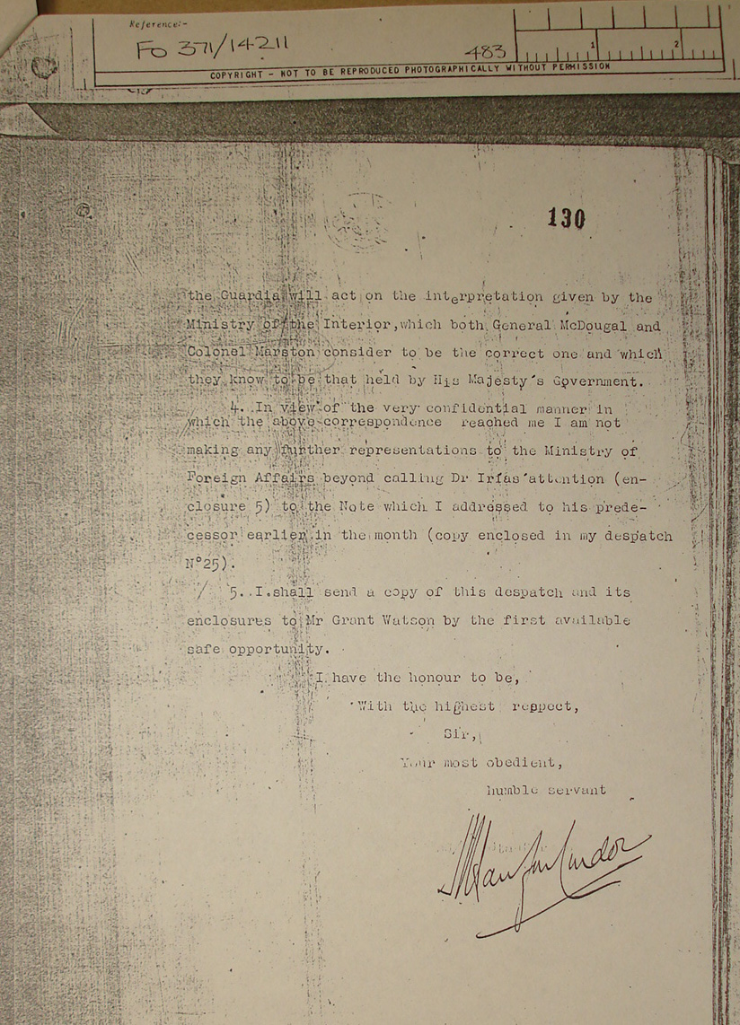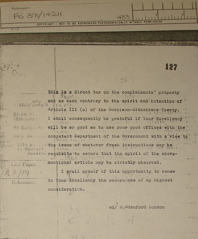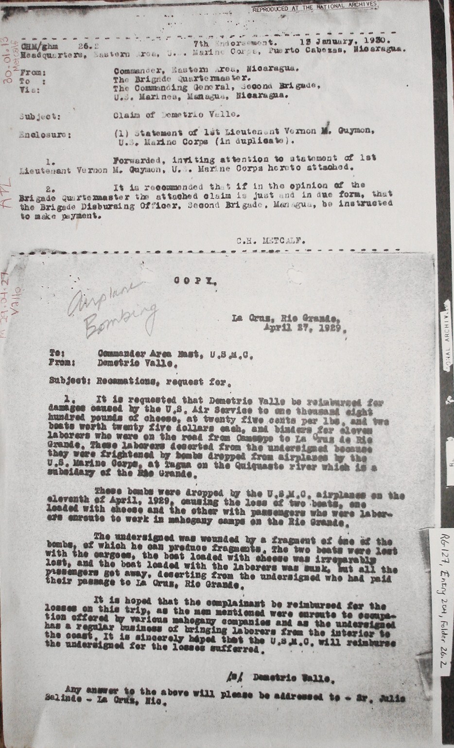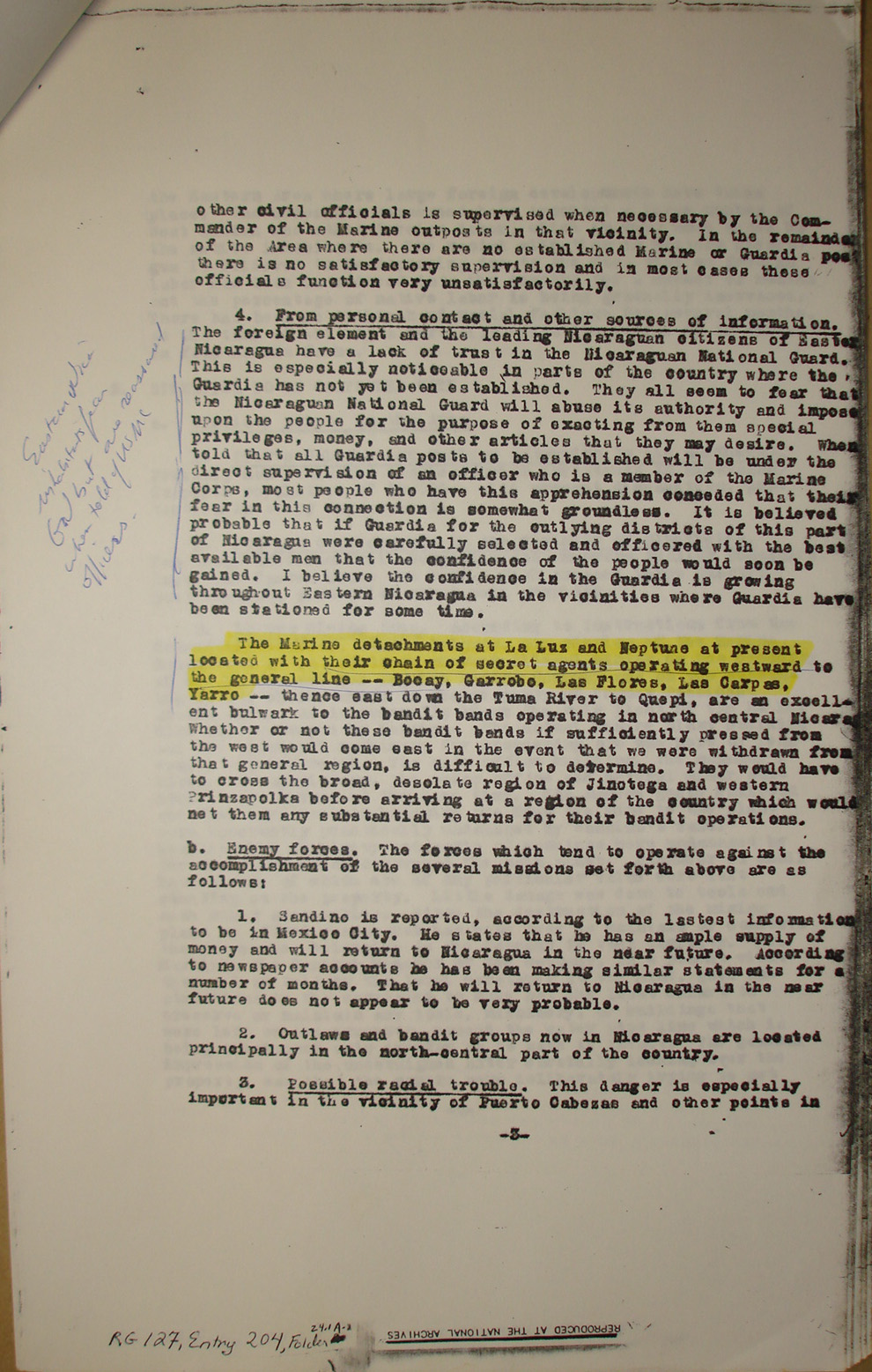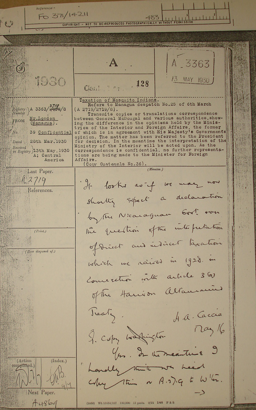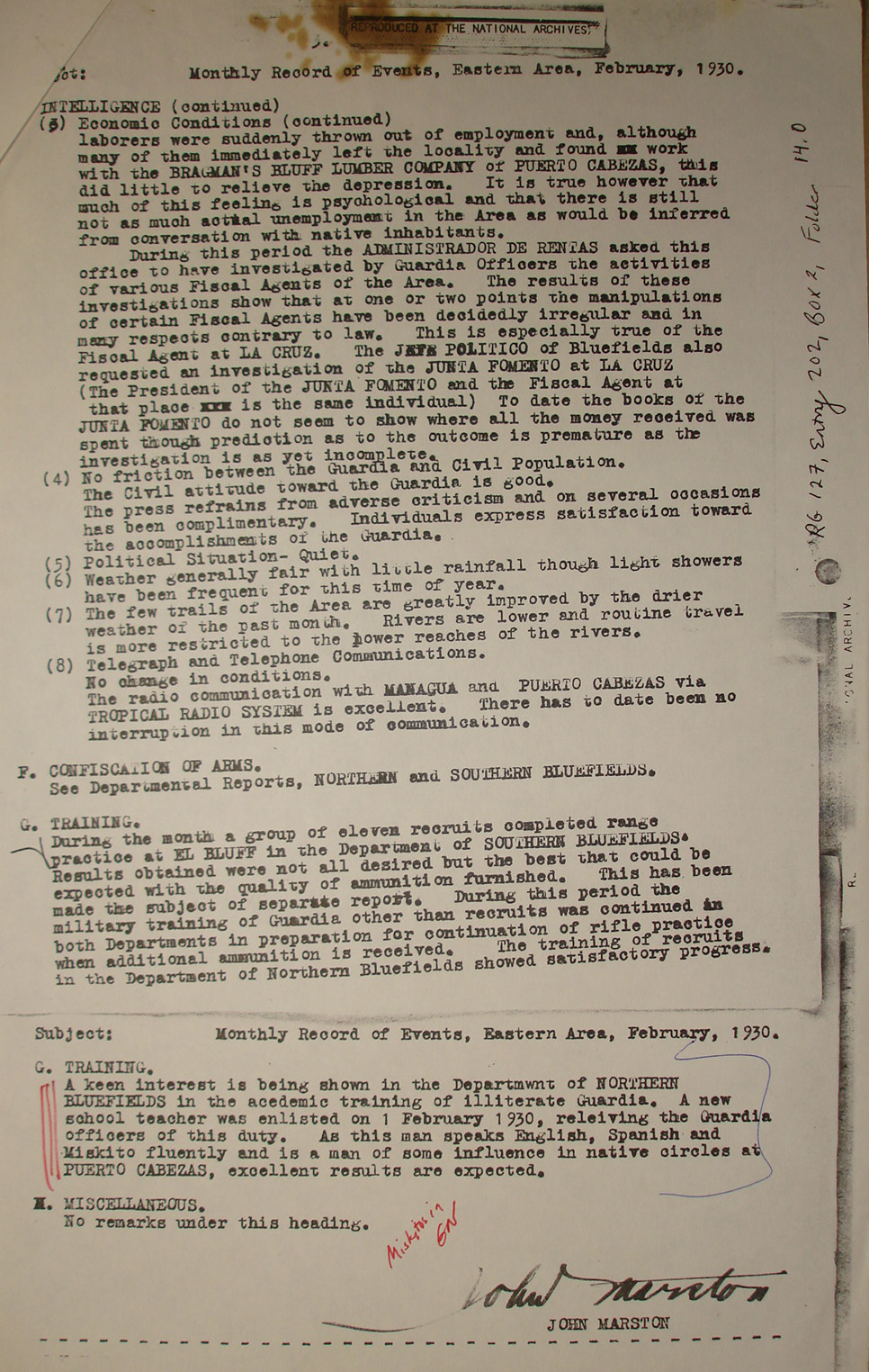 Dios, to Lt. W. C. Hall, Puerto Cabezas.