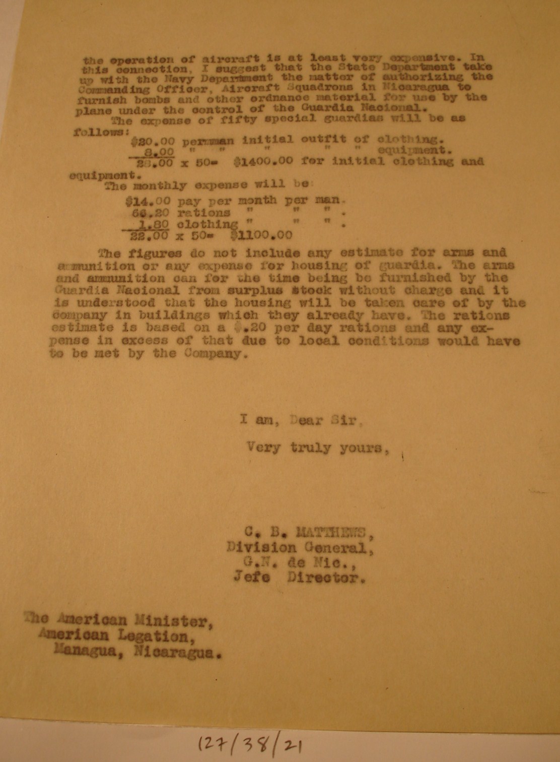 Managua, to US Minister Matthew Hanna,