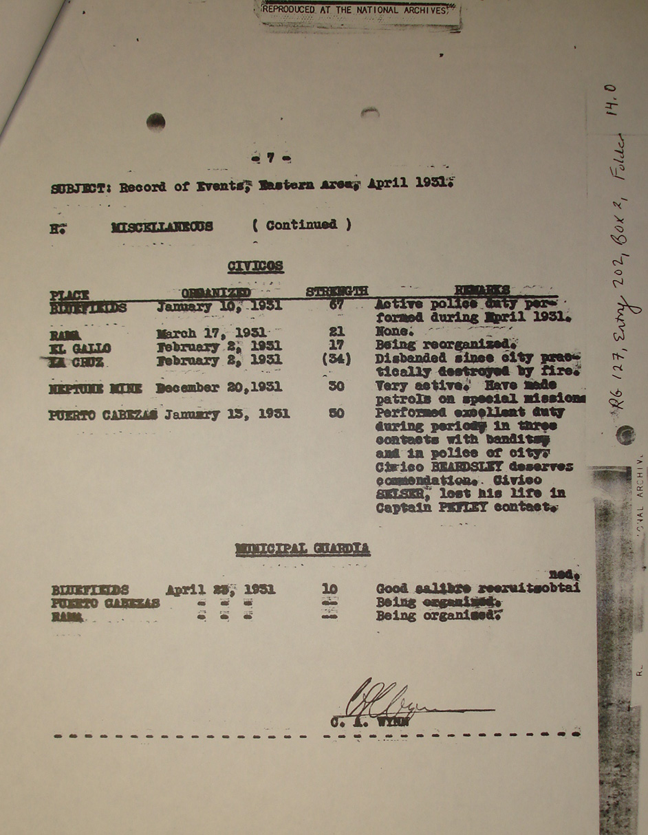 Miskito Indians." [six signatures]