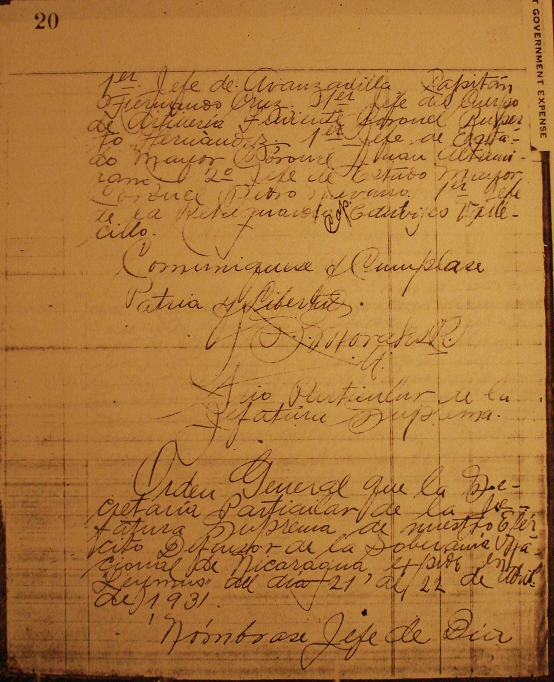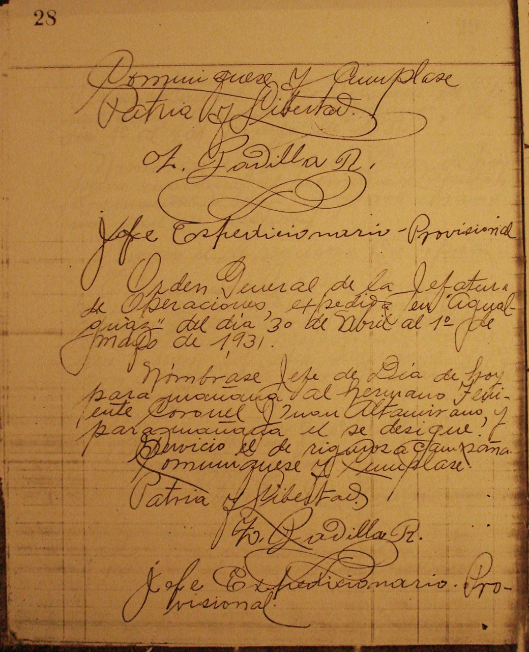 Estado Mayor 1o Jefe el Coronel Dionicio