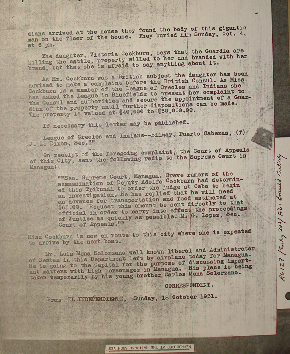 on Nicaragua's Caribbean Coast region, housing material dated in the