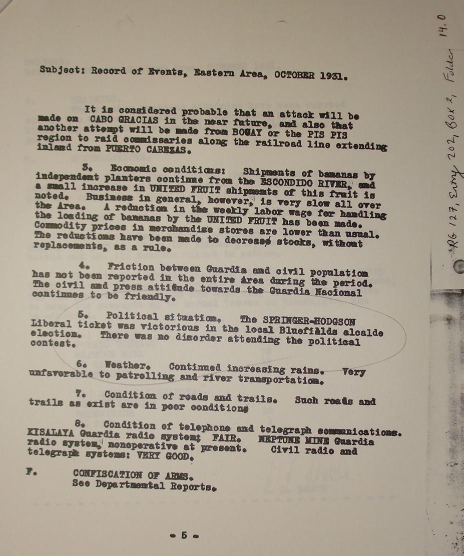 Inman, Puerto Cabezas, p. 1.