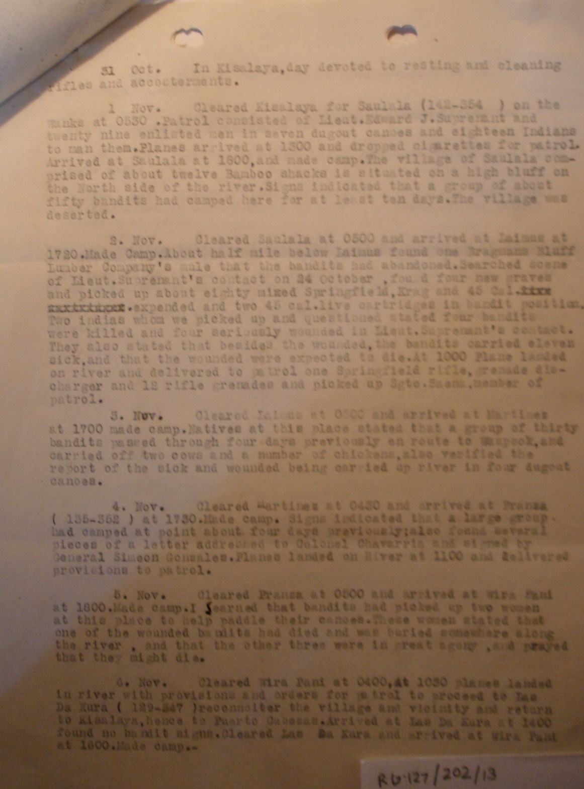 report by Lt. Stephenson (same