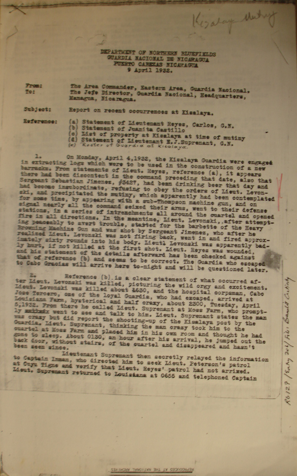 act of vengeance by Miskitu Indians