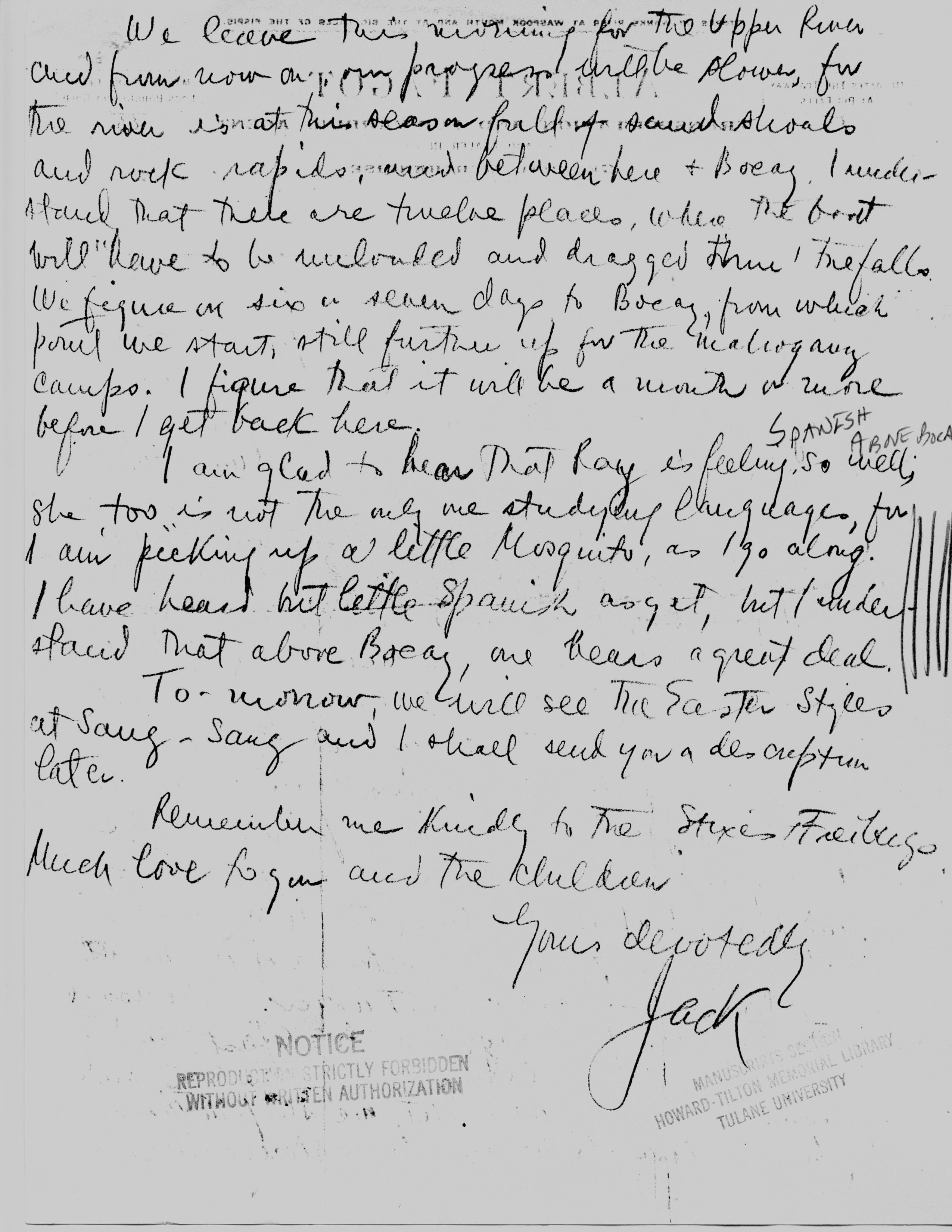 Jack Lemann, Waspook on the Río Coco, to Jack