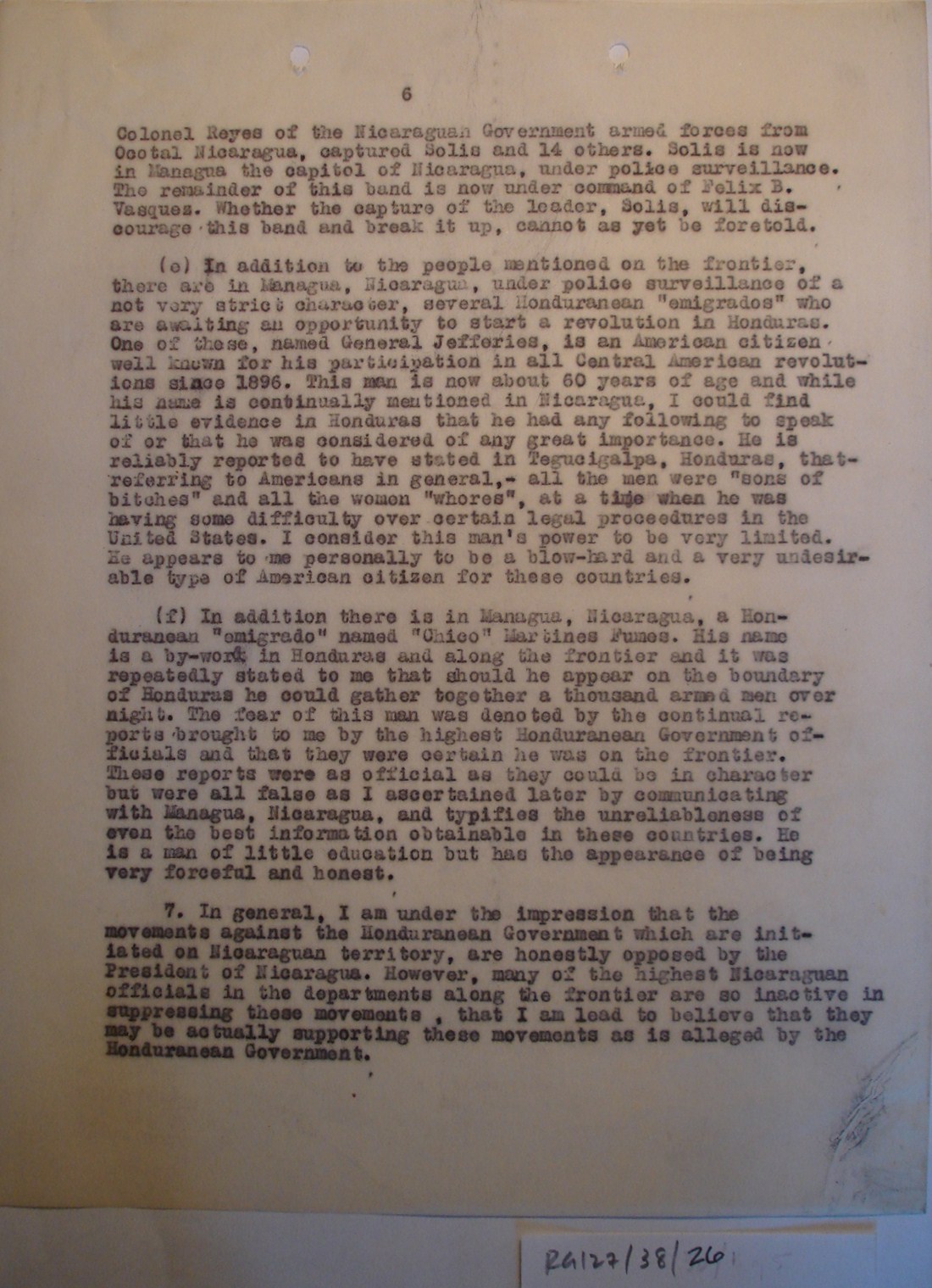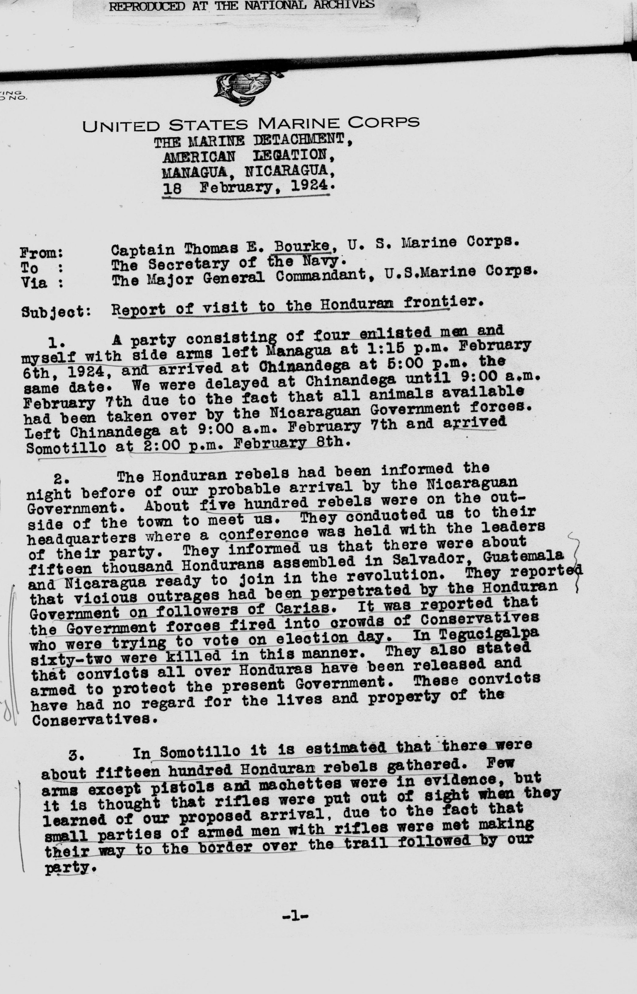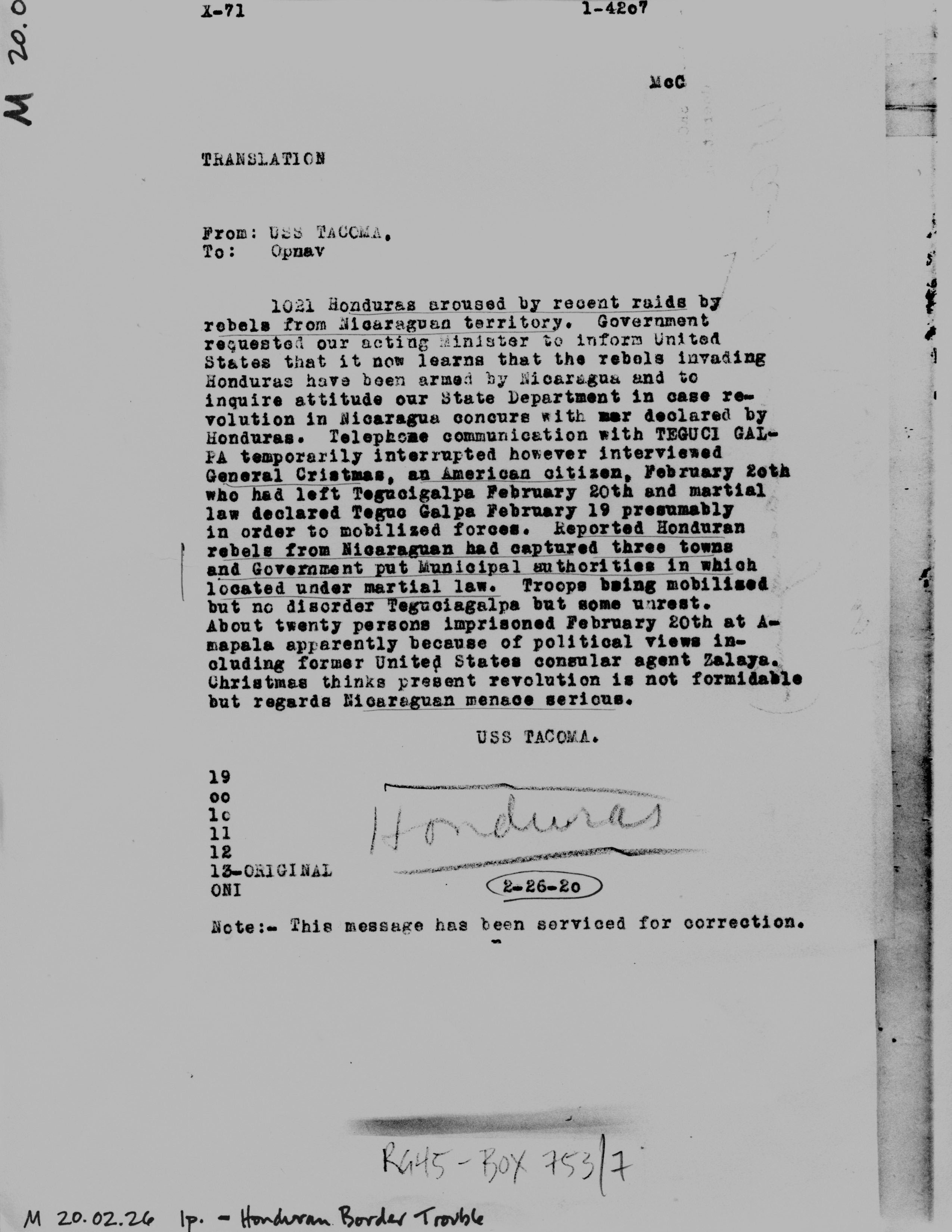 declared Teguc Galpa [Tegucigalpa?] February 19