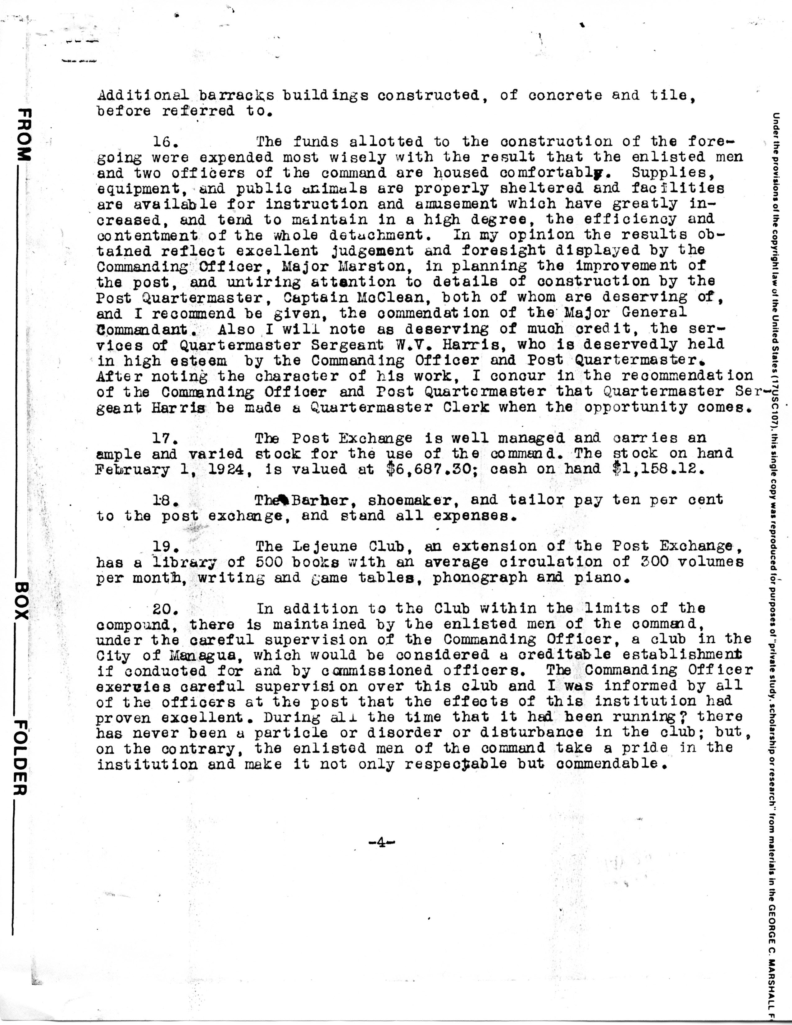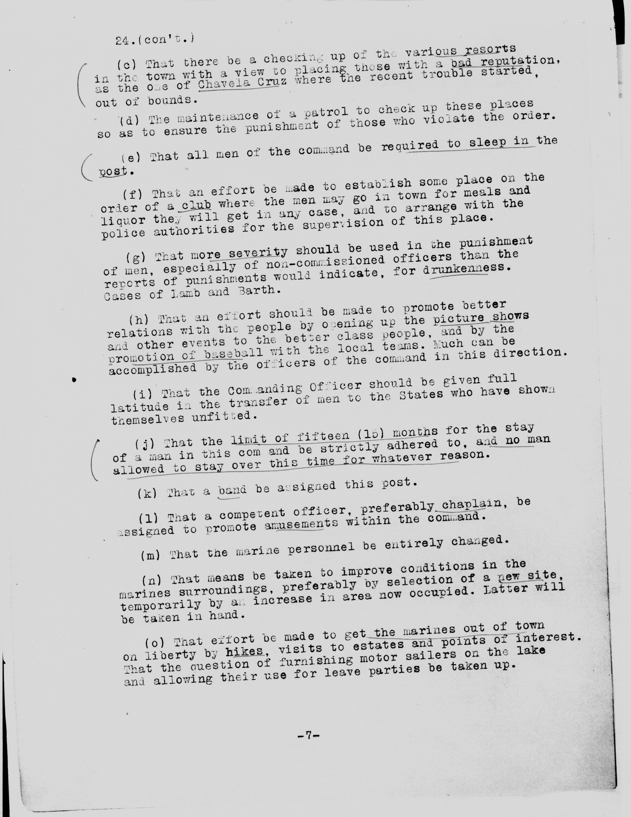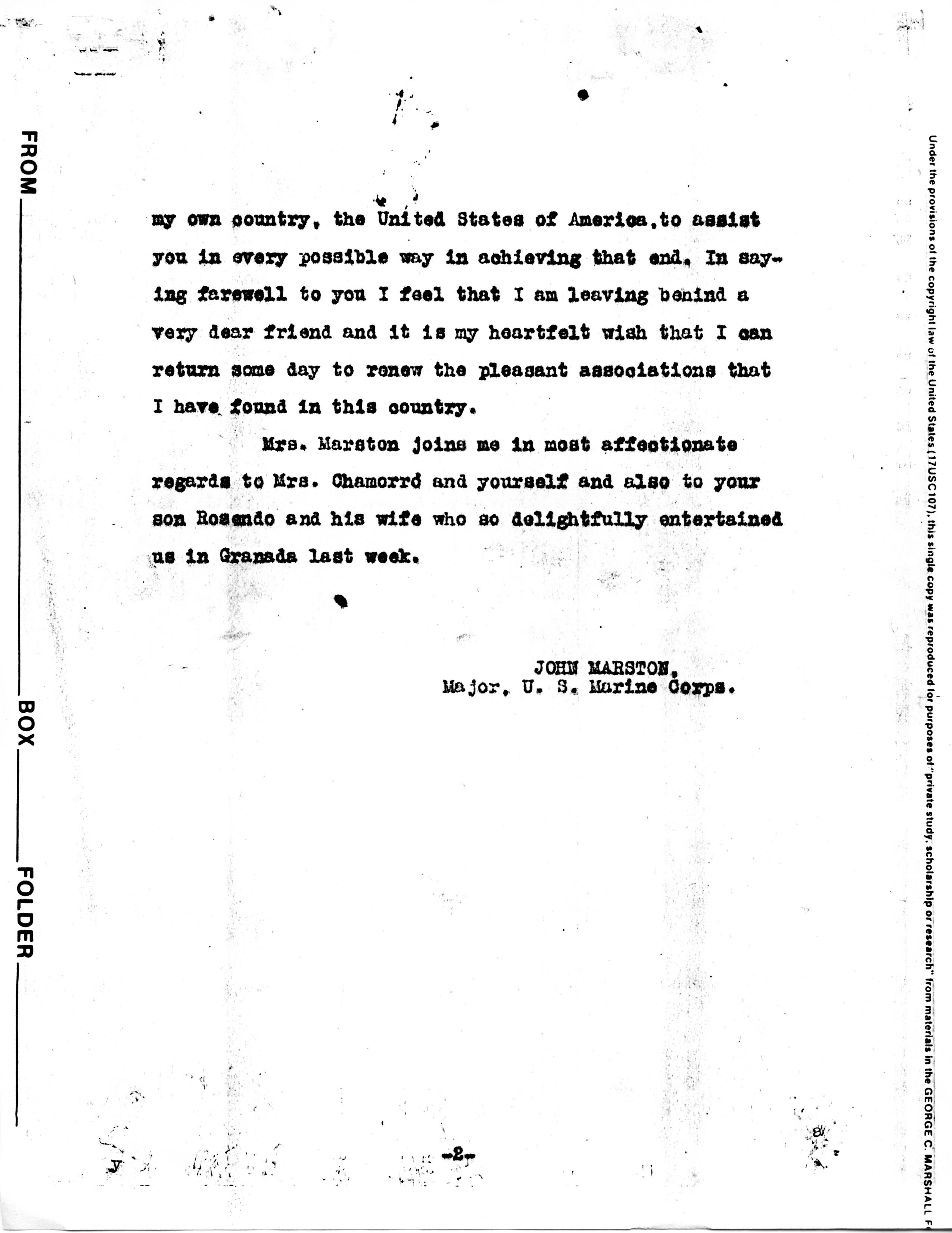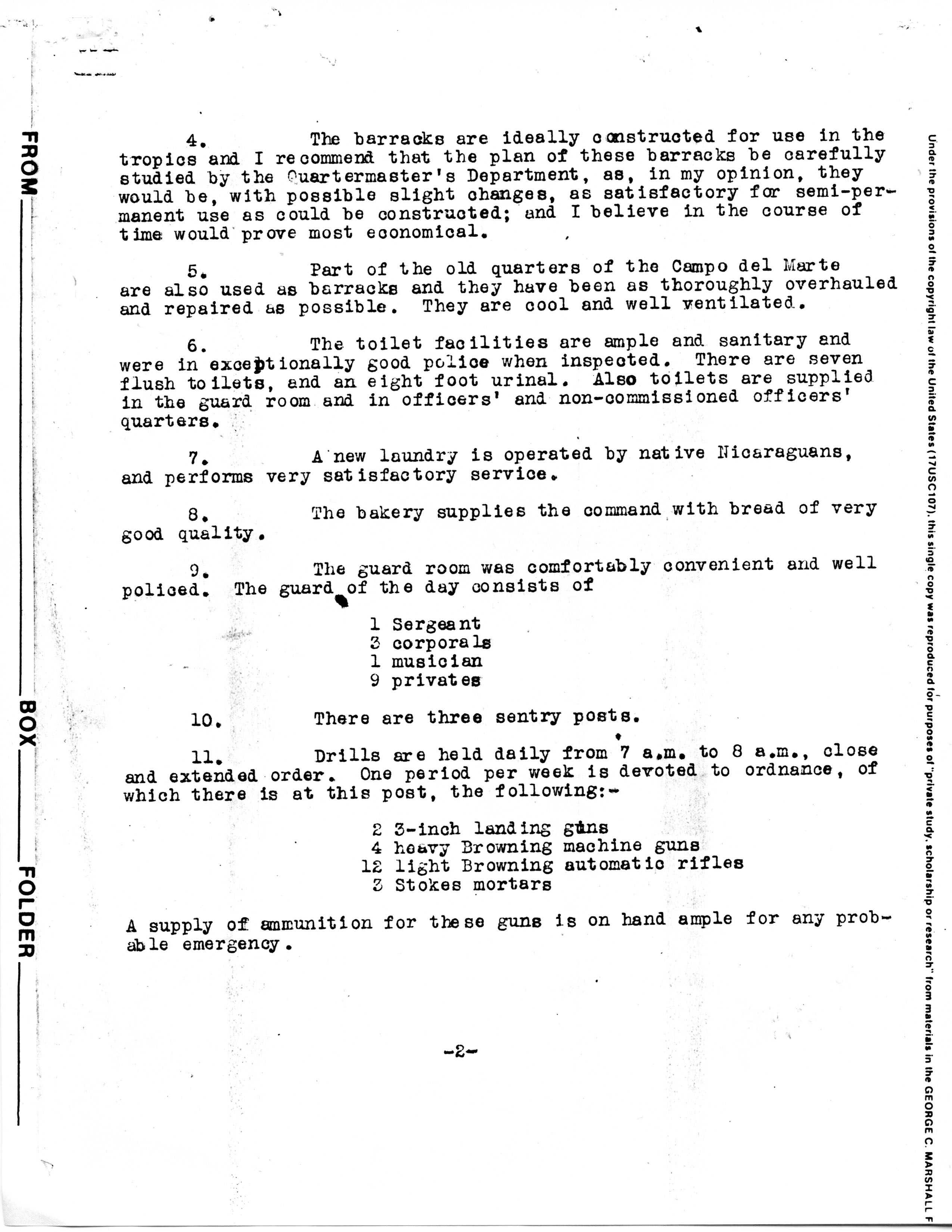 Copy to: Major Marston, M.B. Quantico, Va. ¶ The