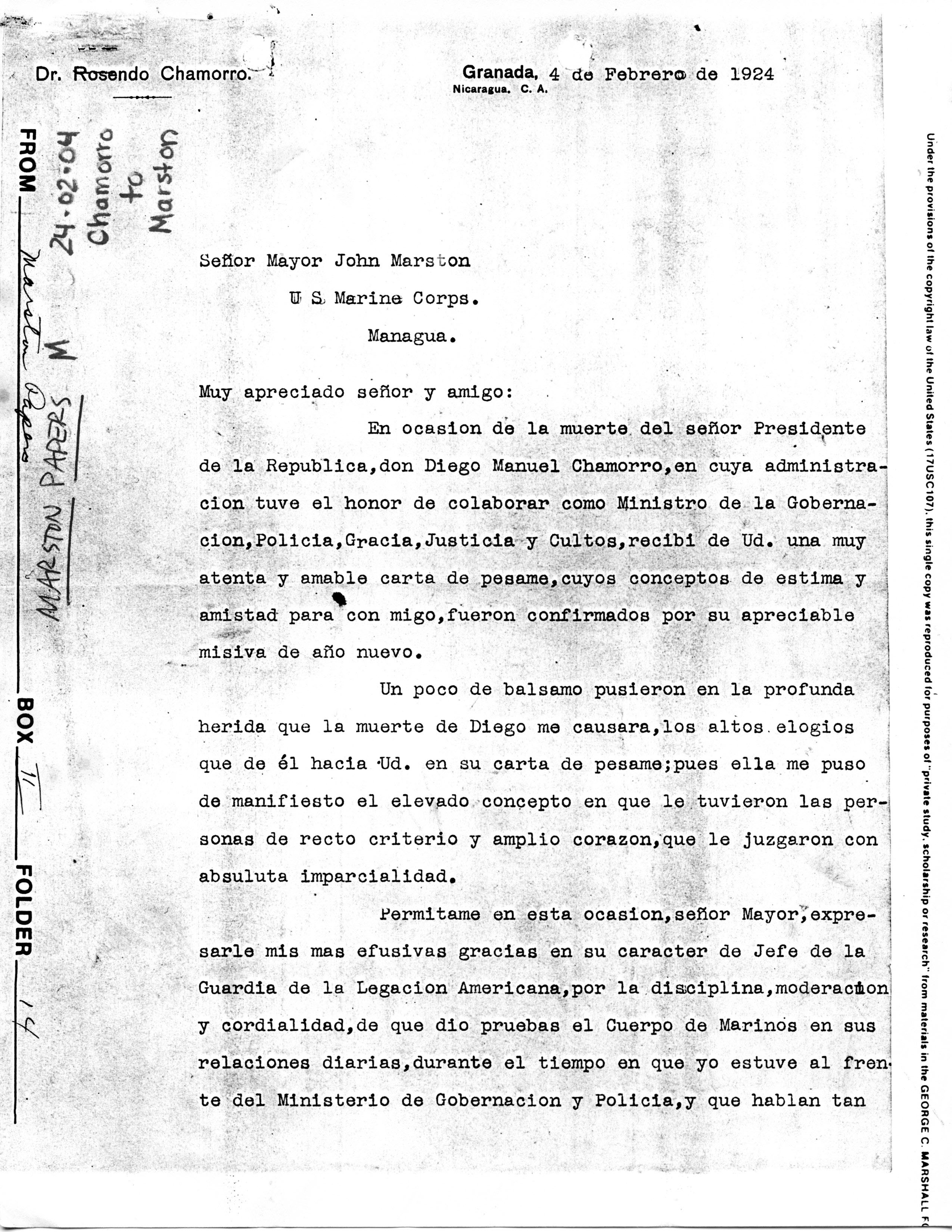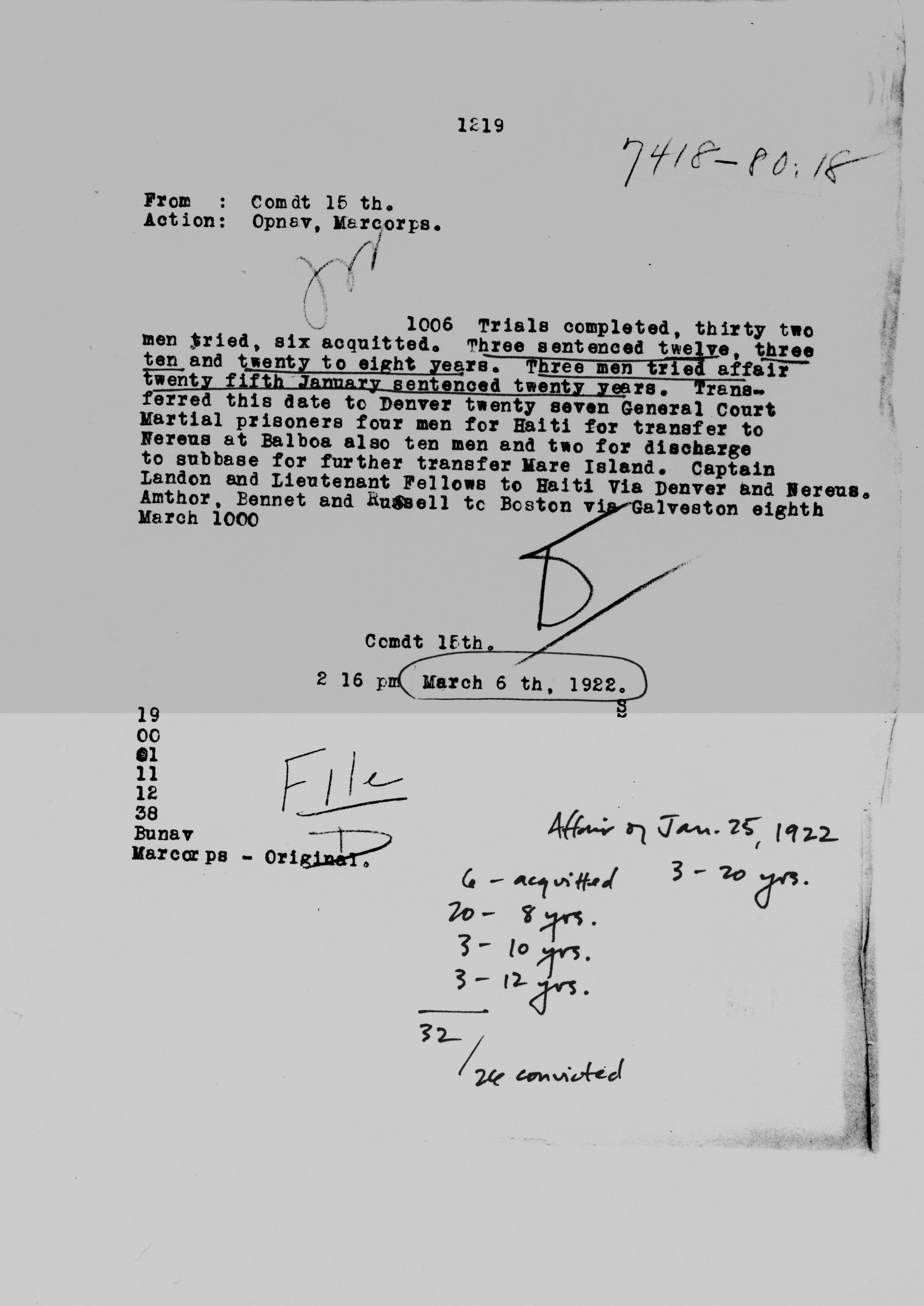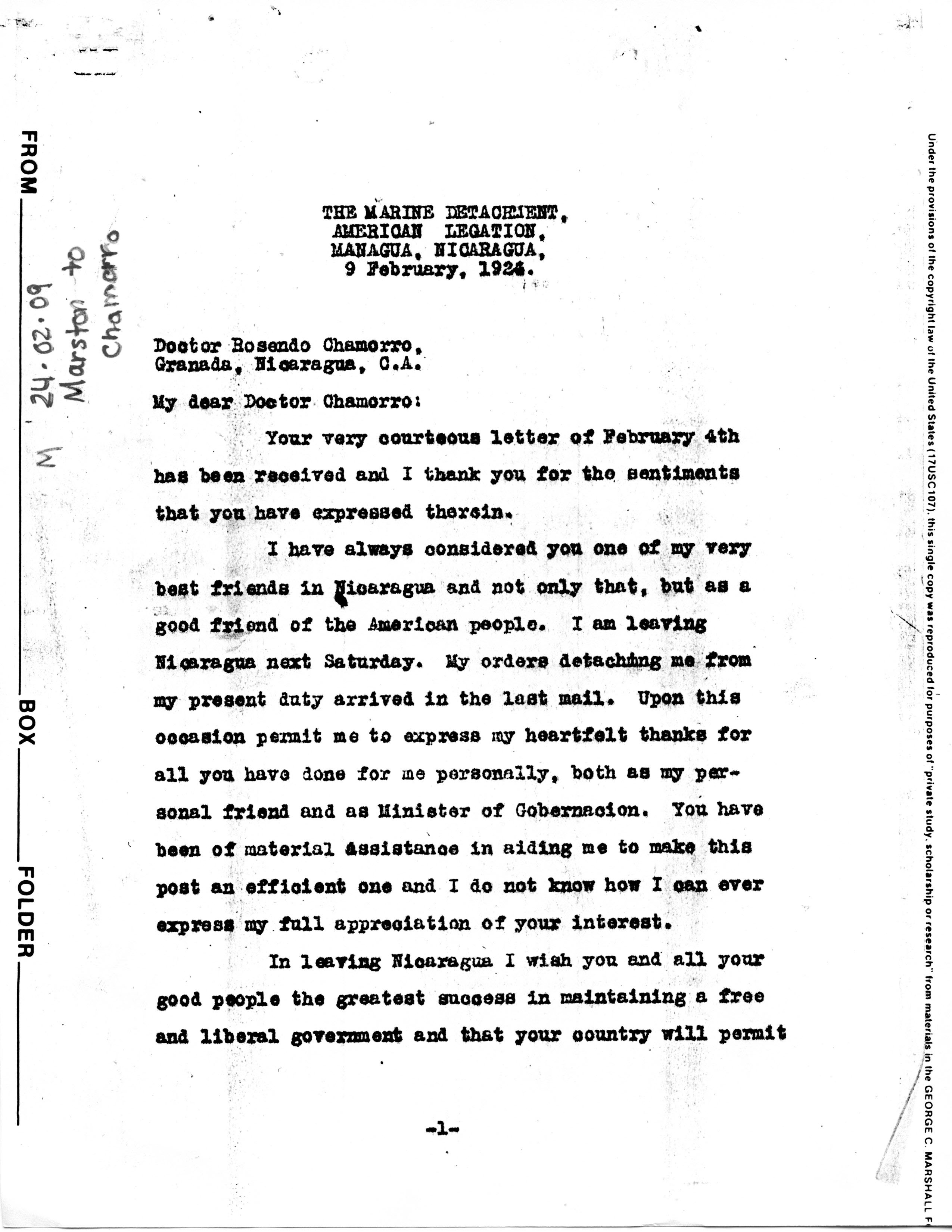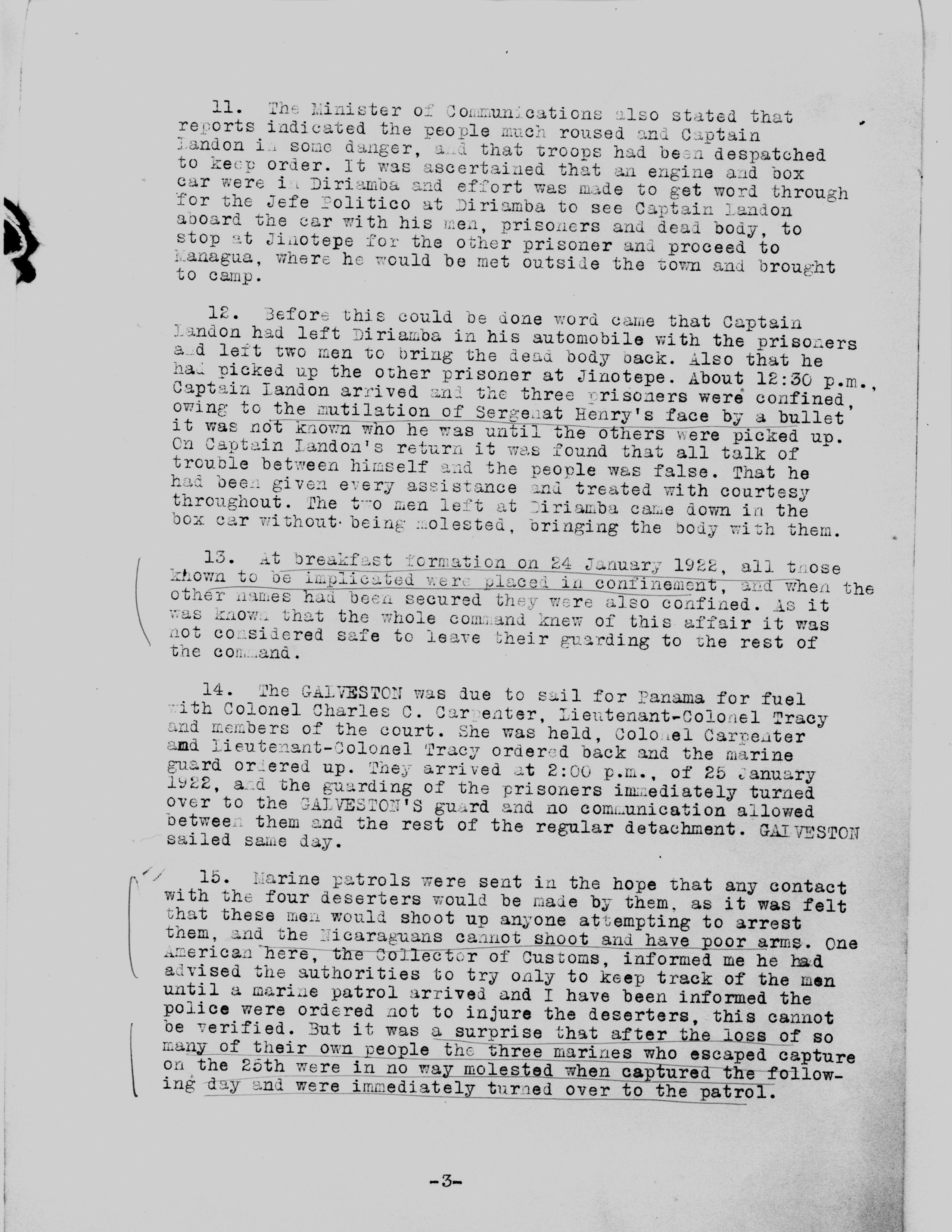 Copy to: Major Marston, M.B. Quantico, Va. ¶ The