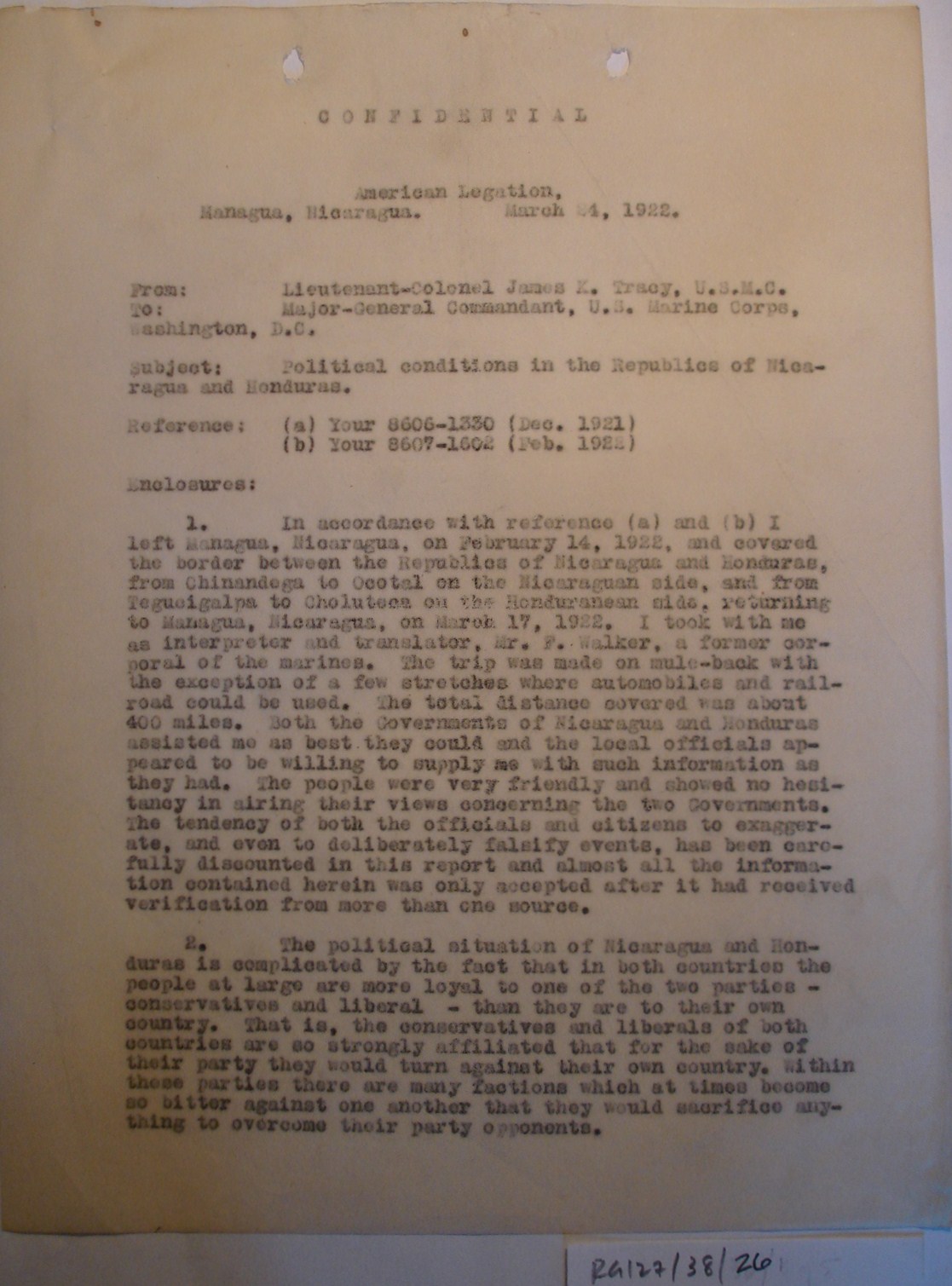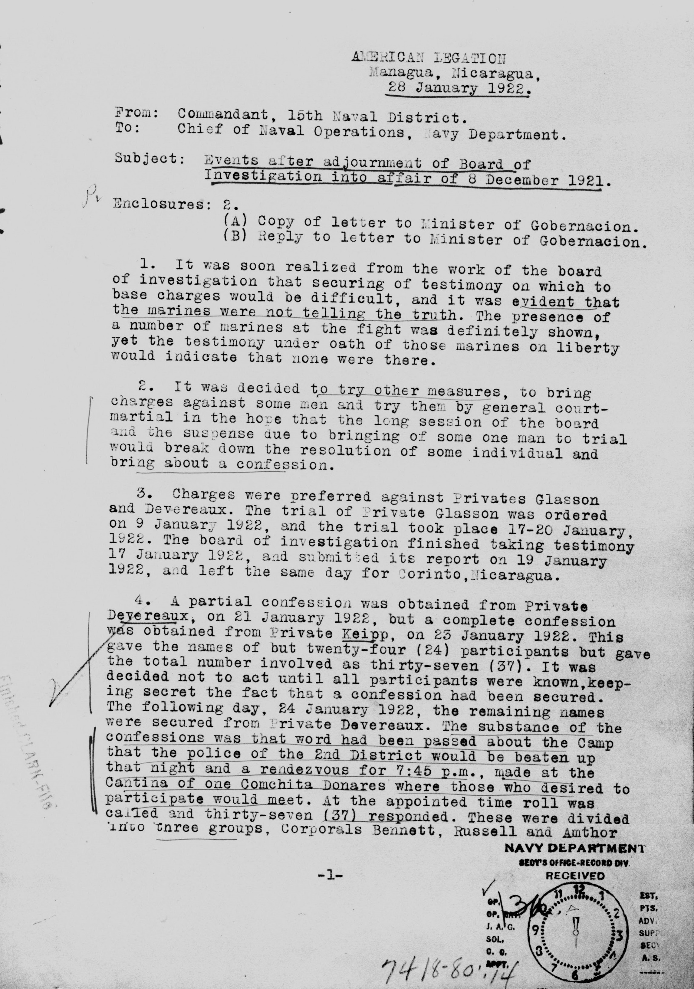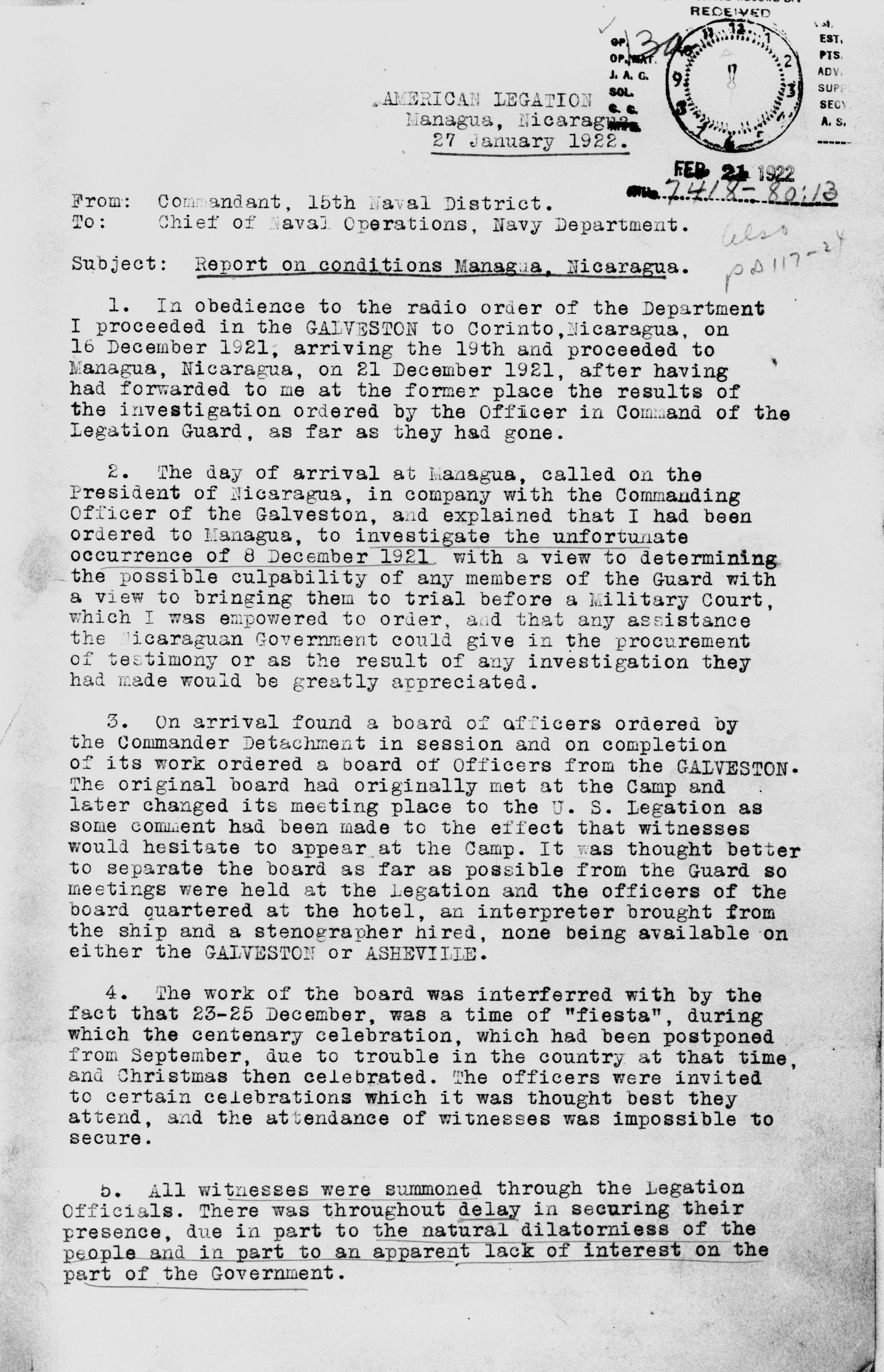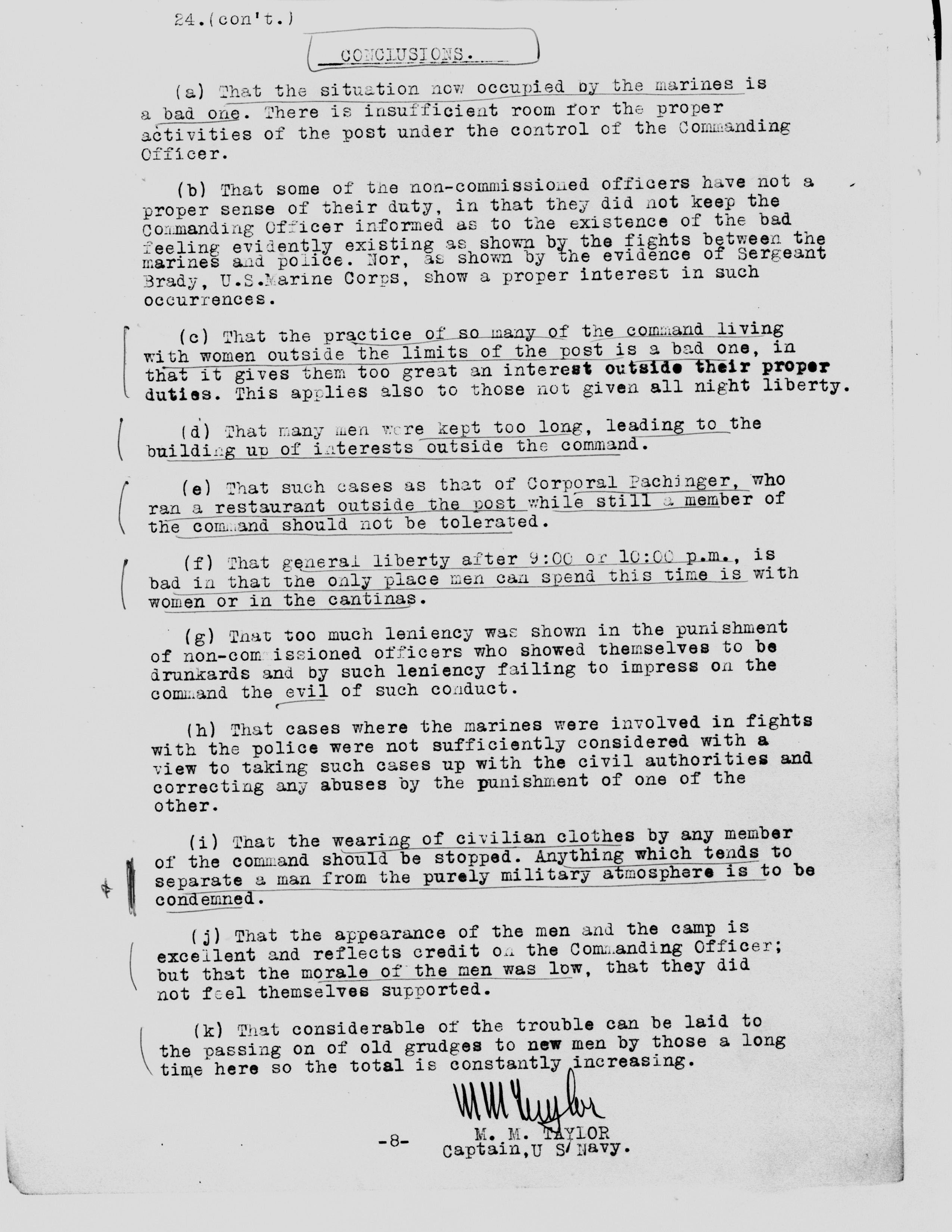 Copy to: Major Marston, M.B. Quantico, Va. ¶ The