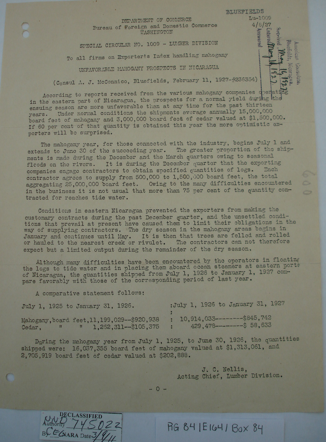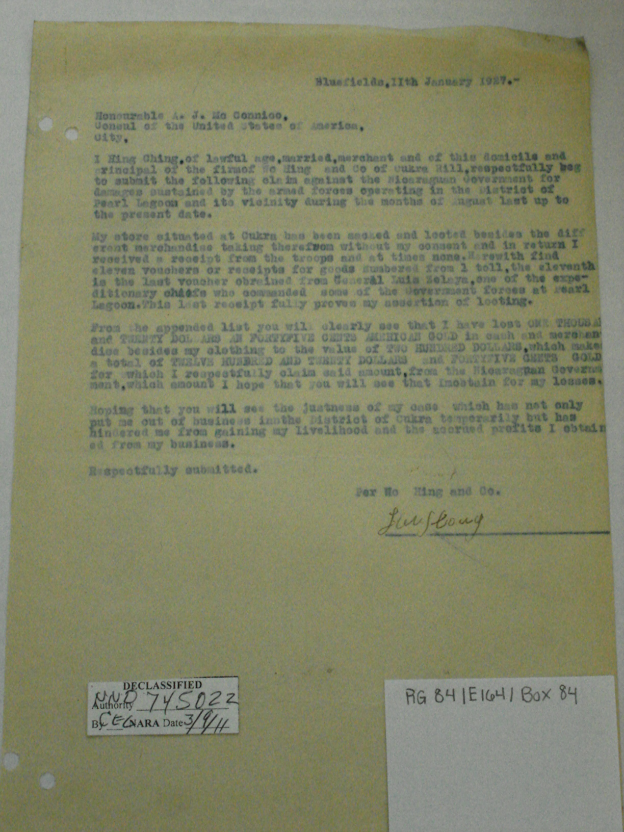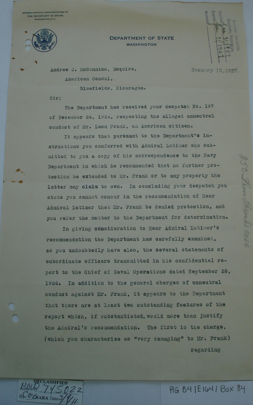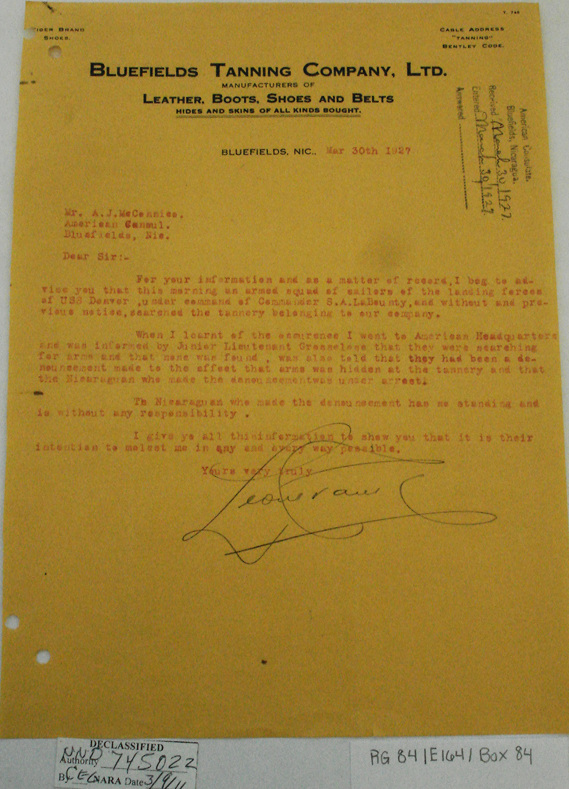 Consul, Bluefields, p. 1. "Bluefields,