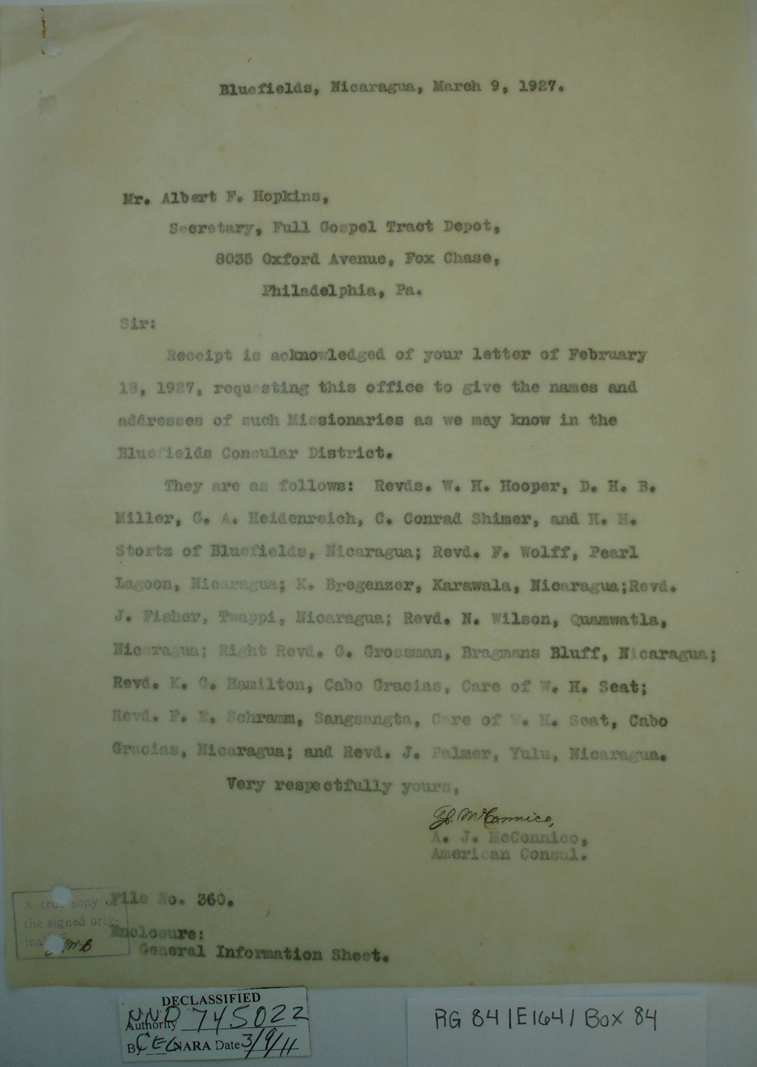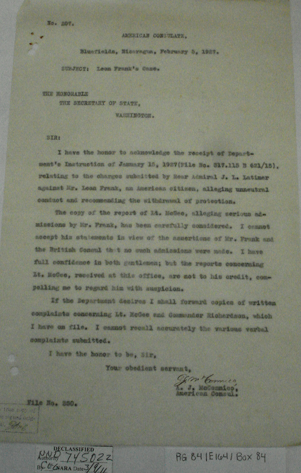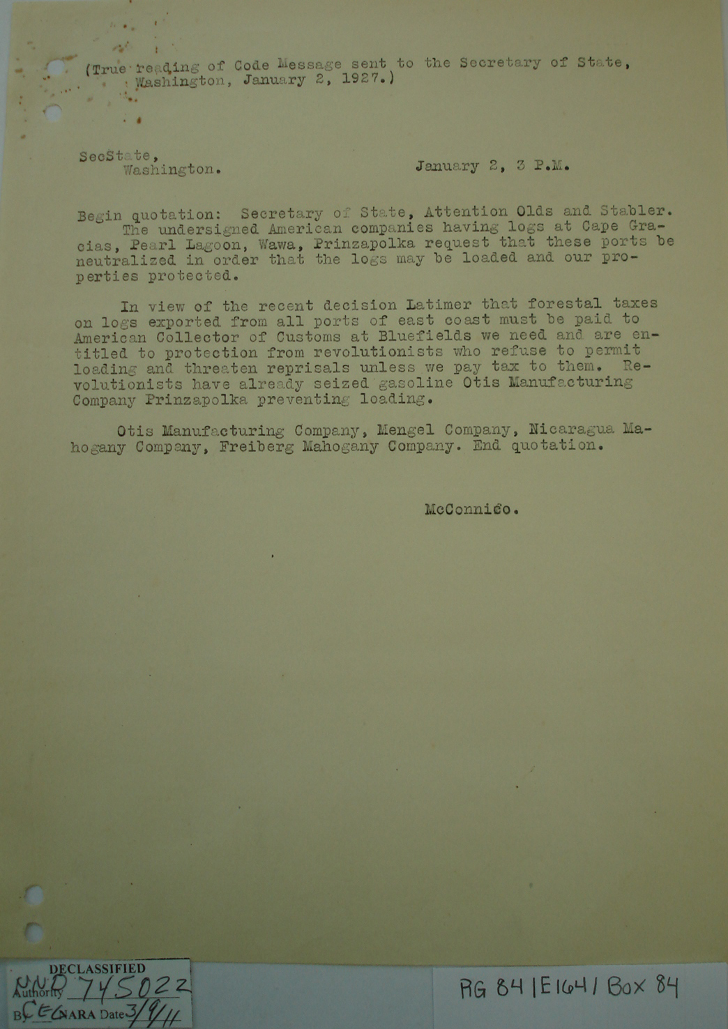 US Consul A. J. McConnico, Bluefields, p. 3.