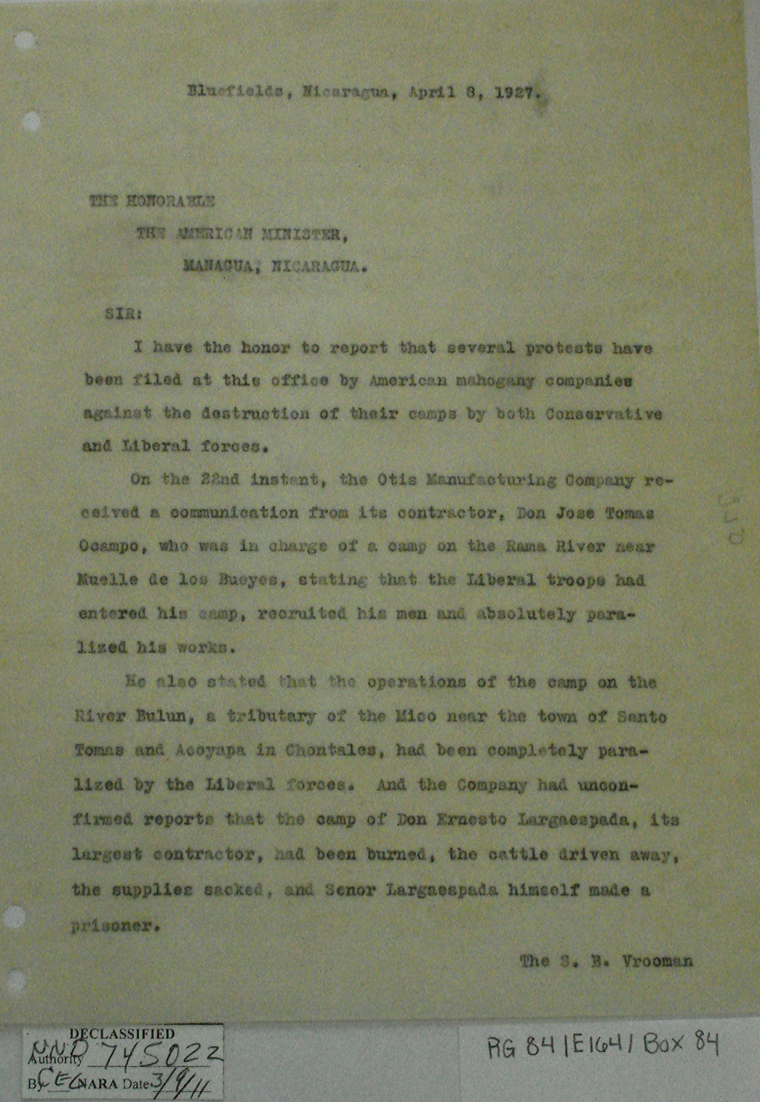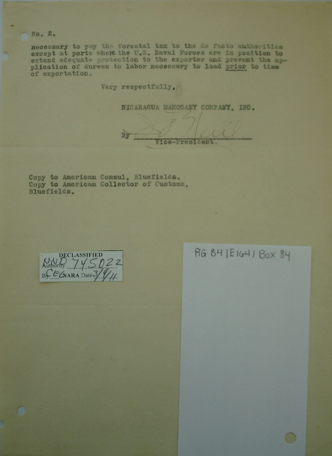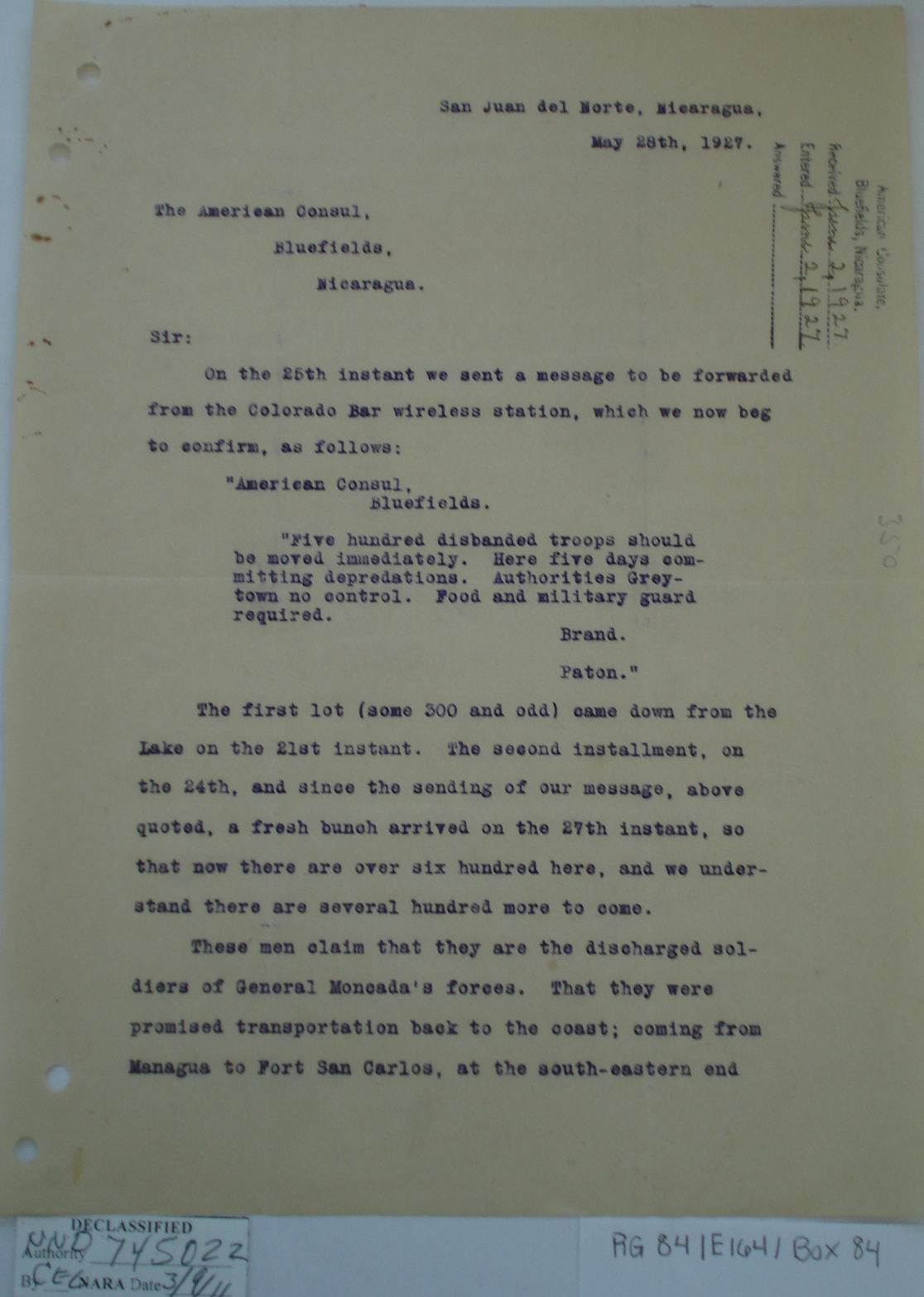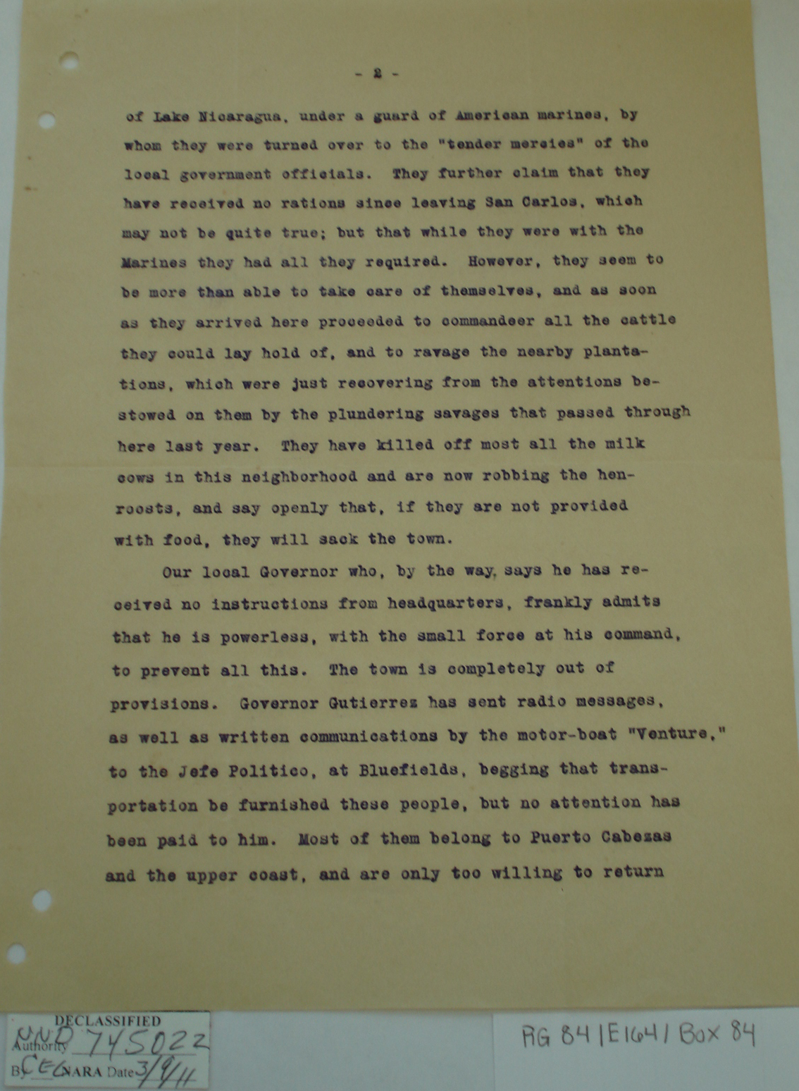 Consul, Bluefields, p. 2. "We