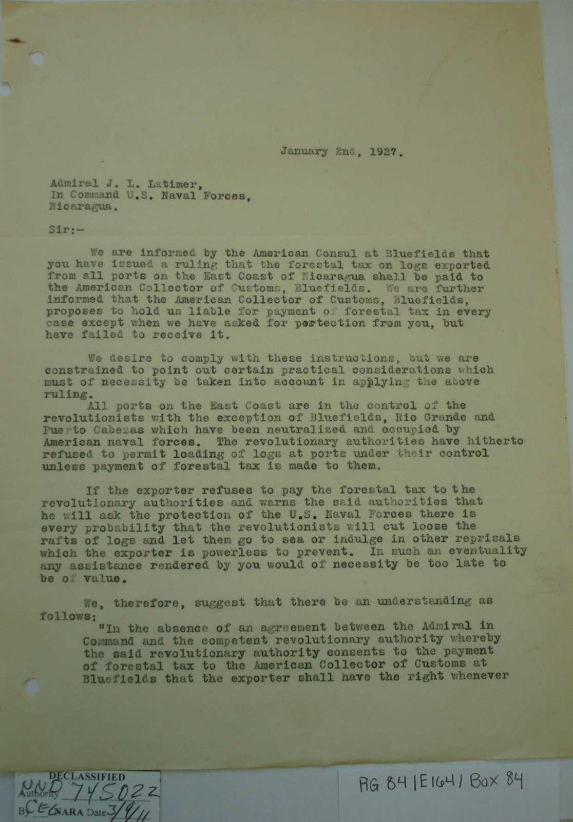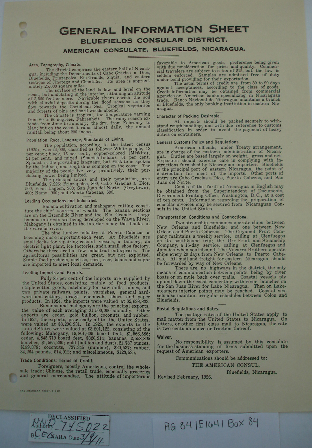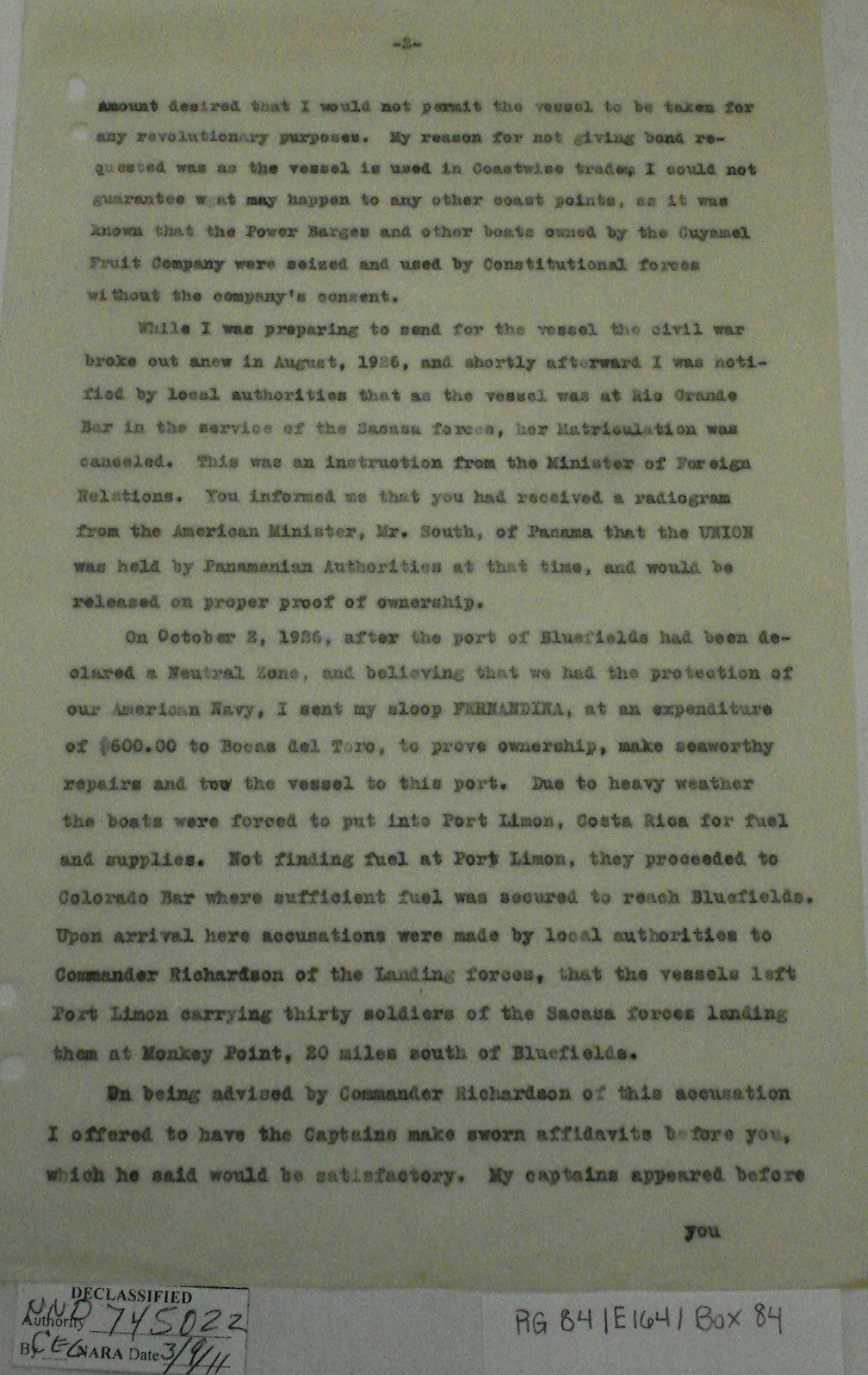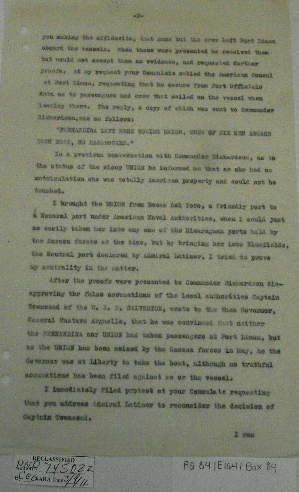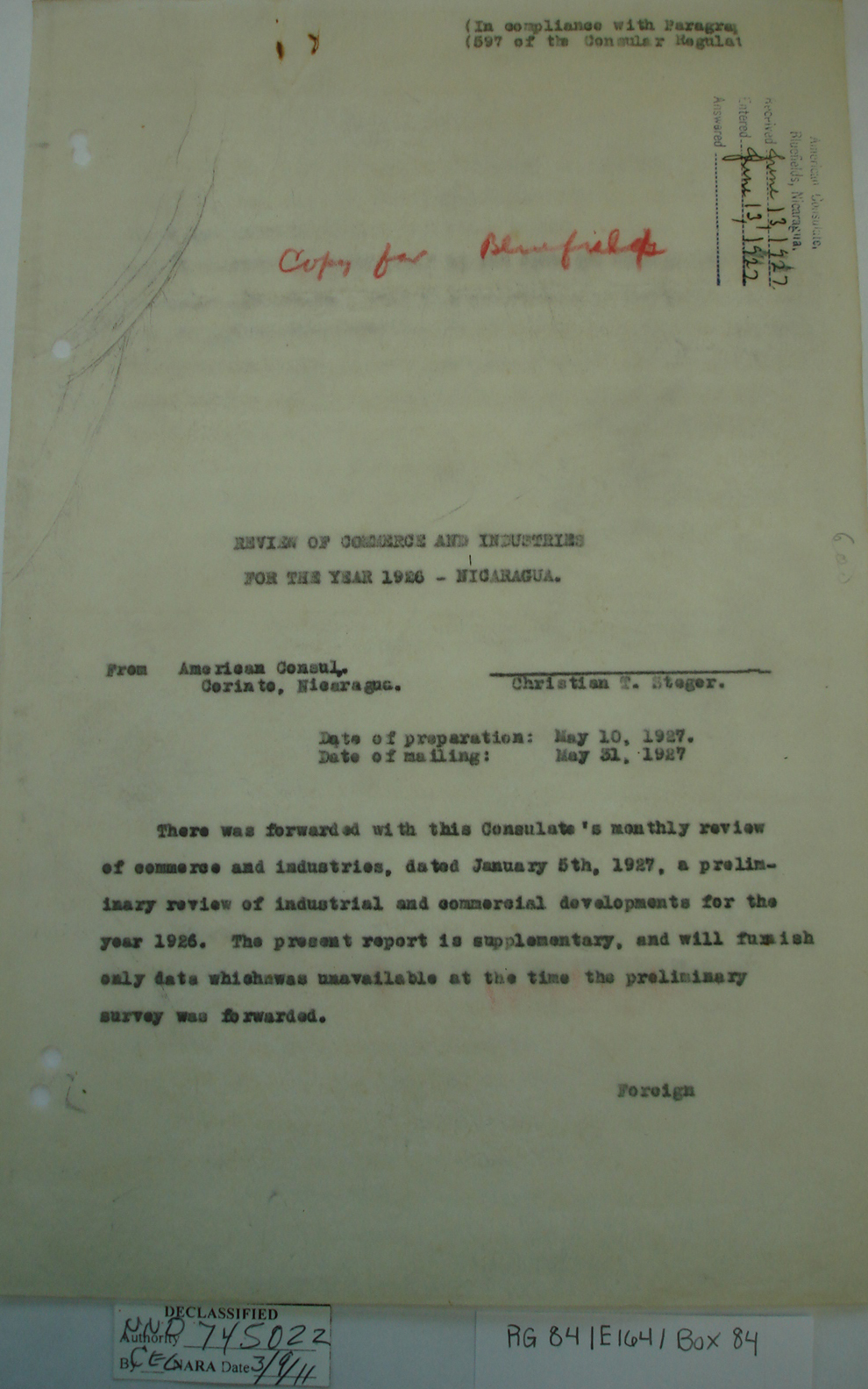 Consul, Bluefields, p. 2. "We