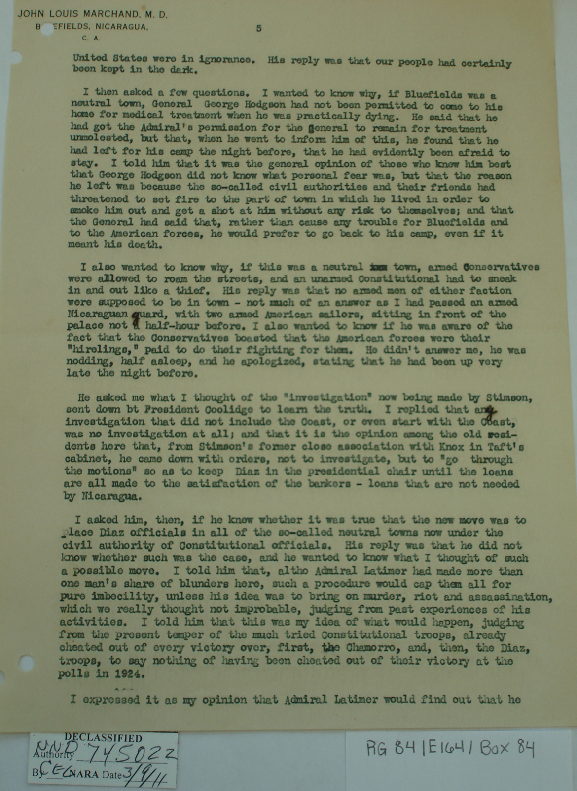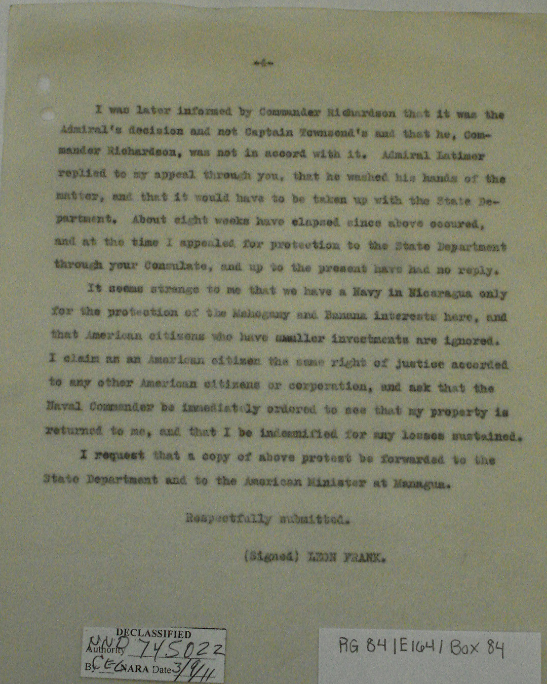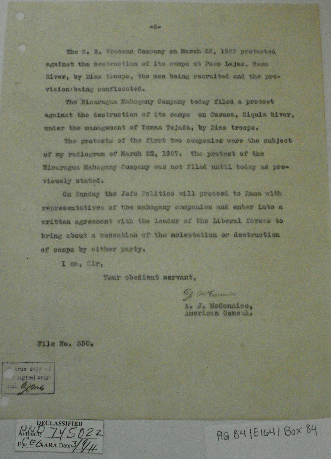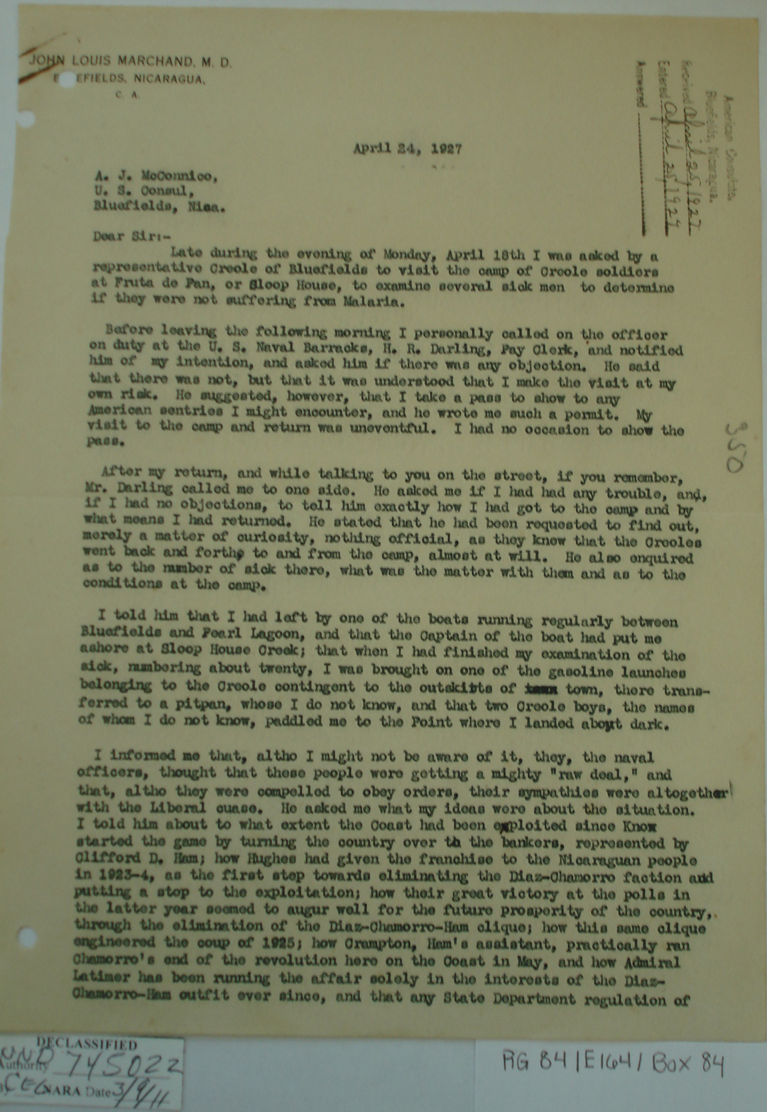 Consul, Bluefields, p. 2. "We