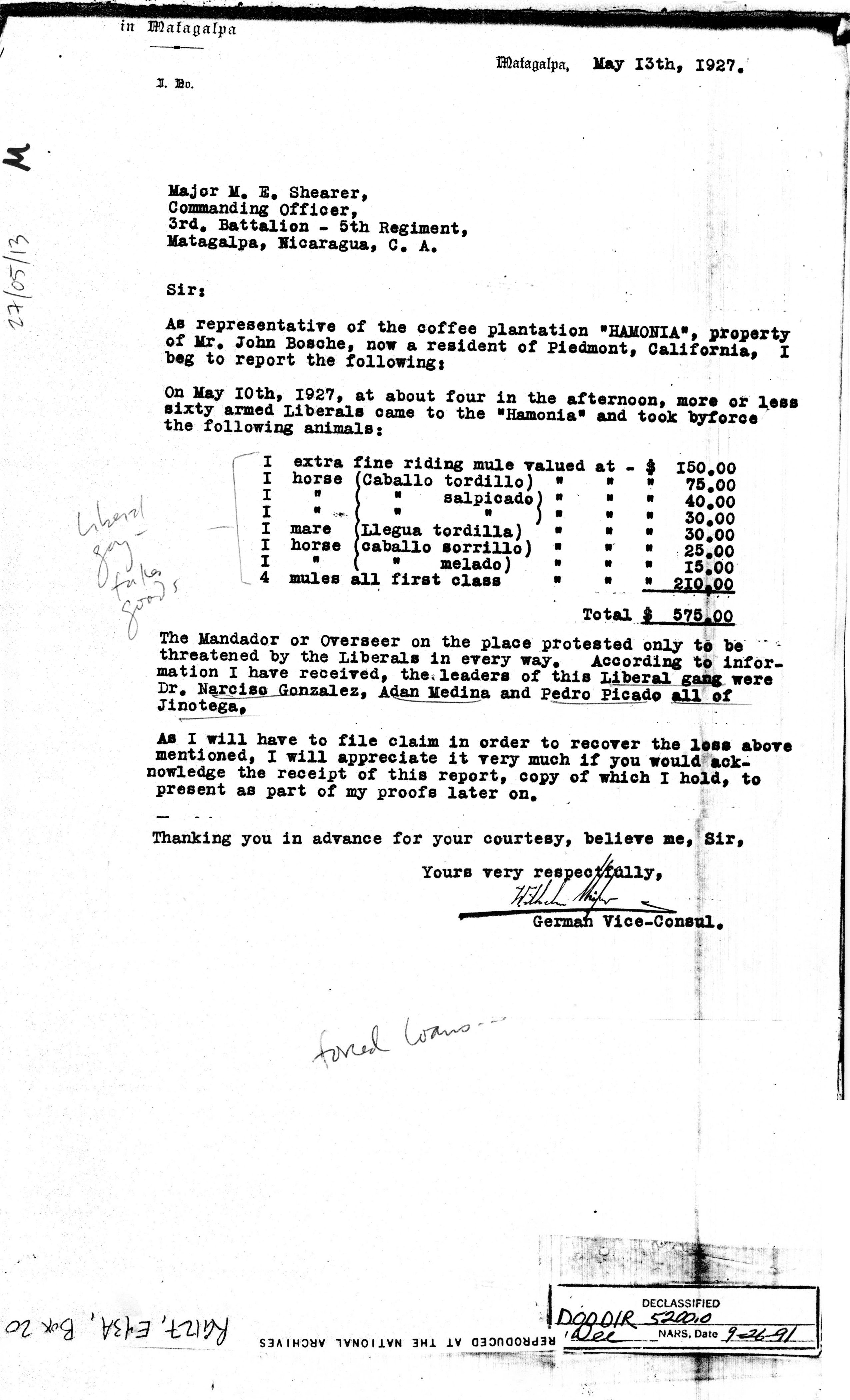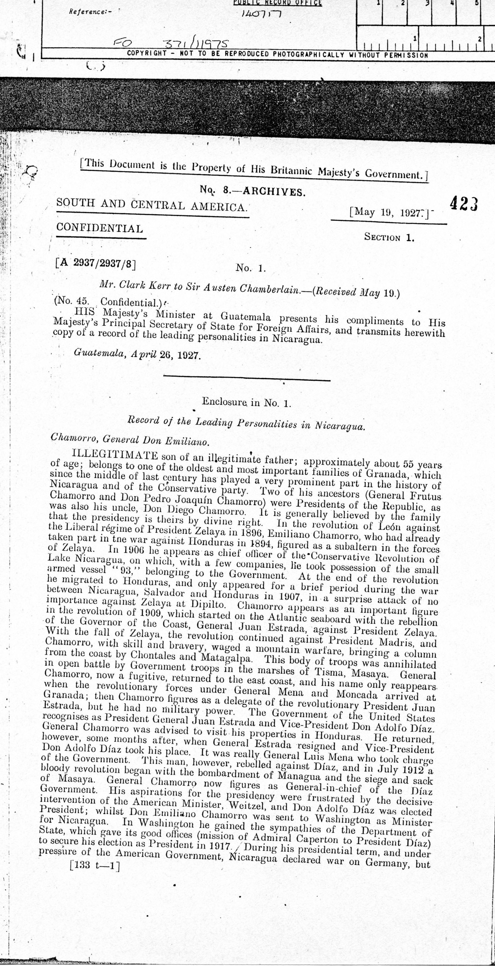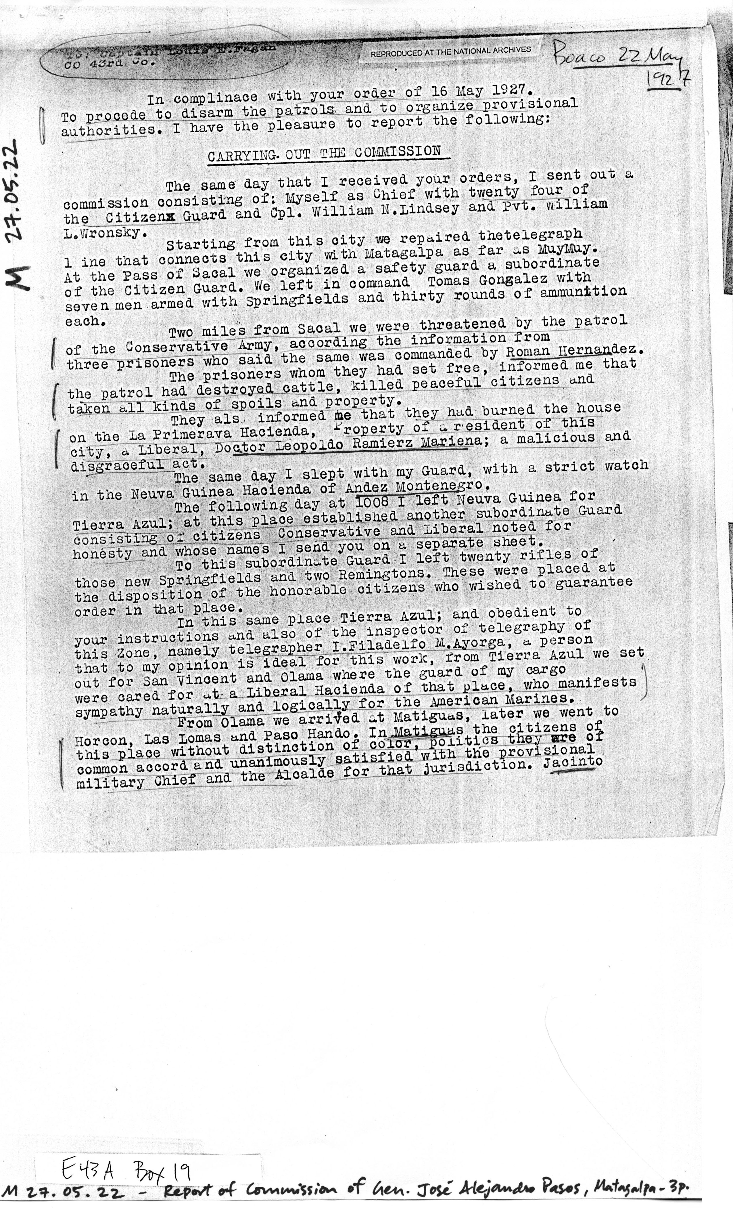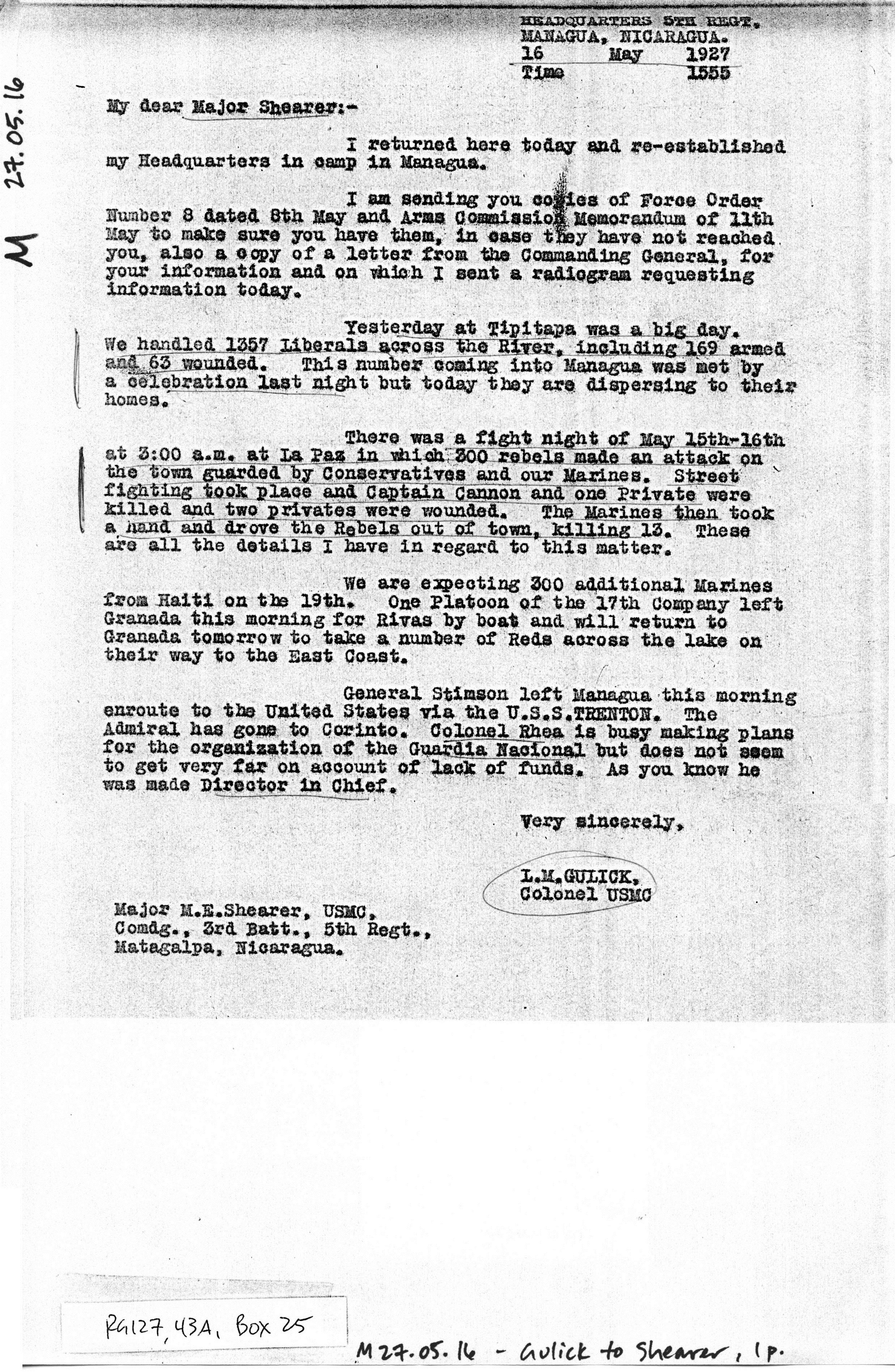 Nicaragua, ¶ Managua, Nicaragua, ¶ 28 May, 1927.
