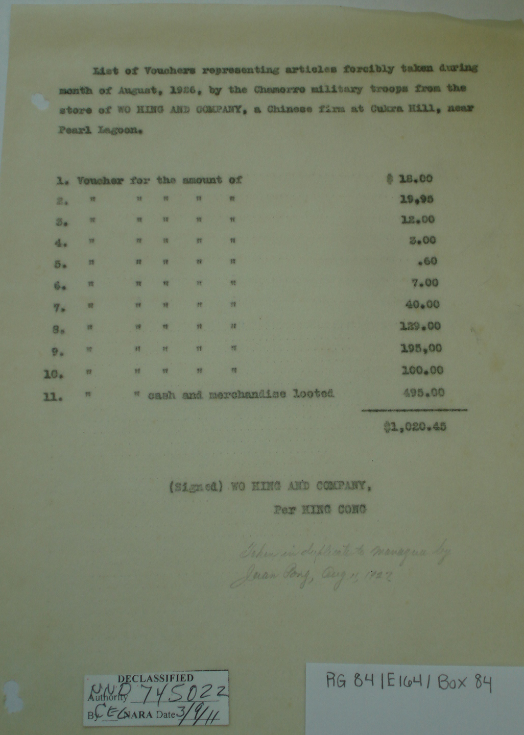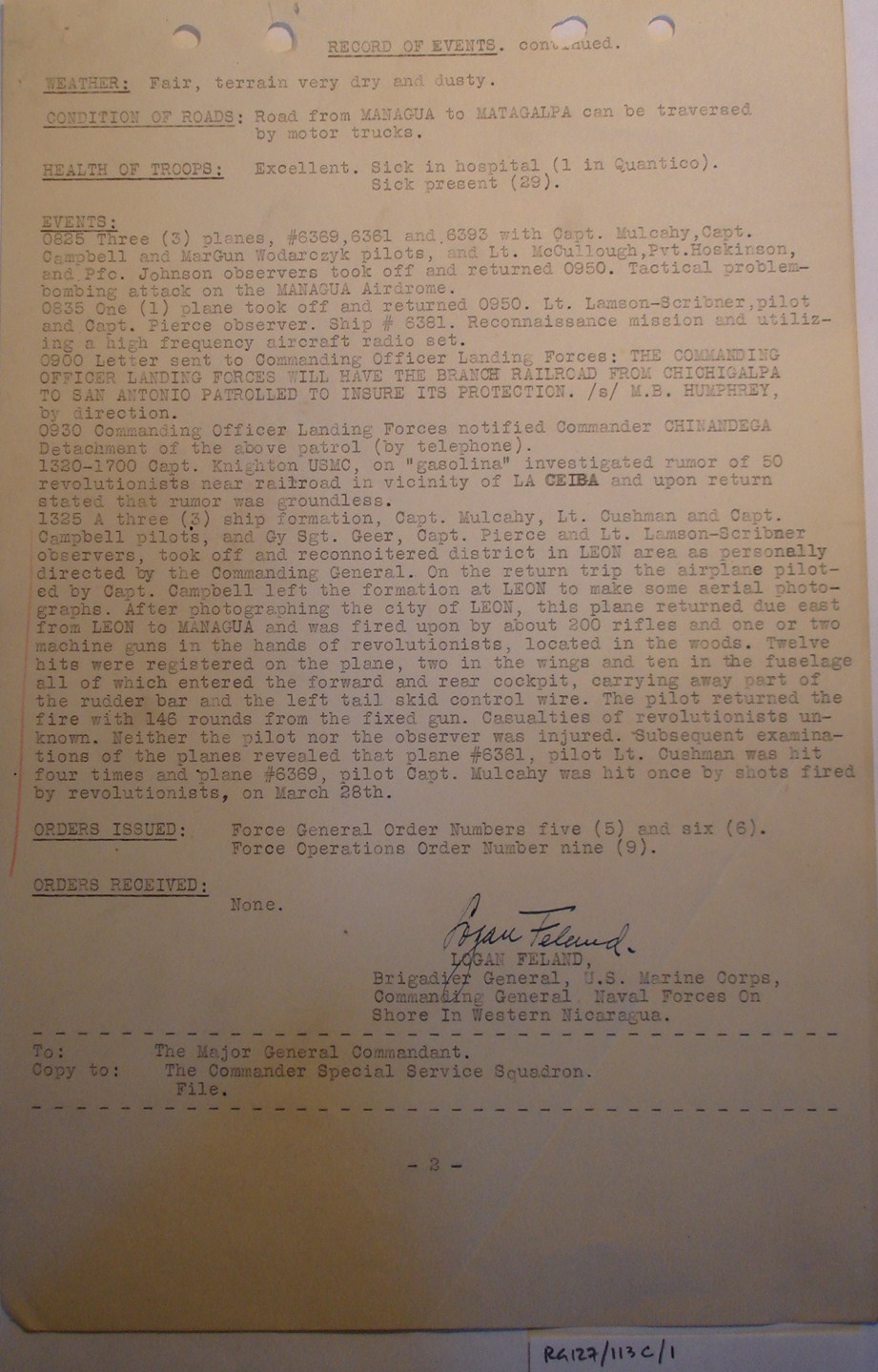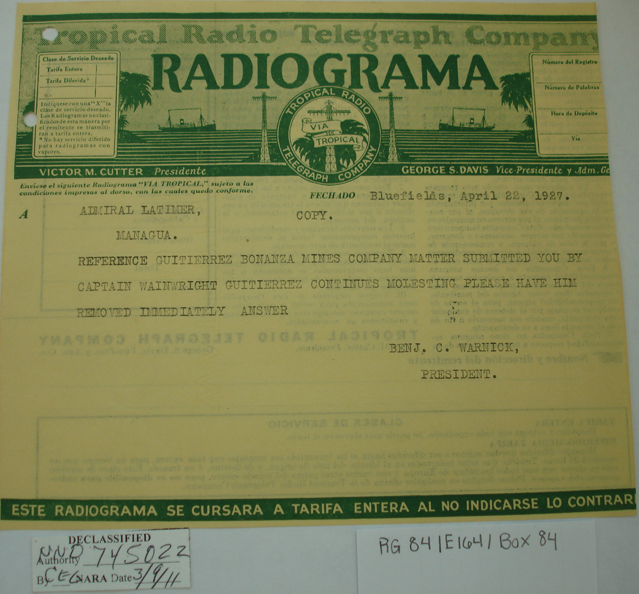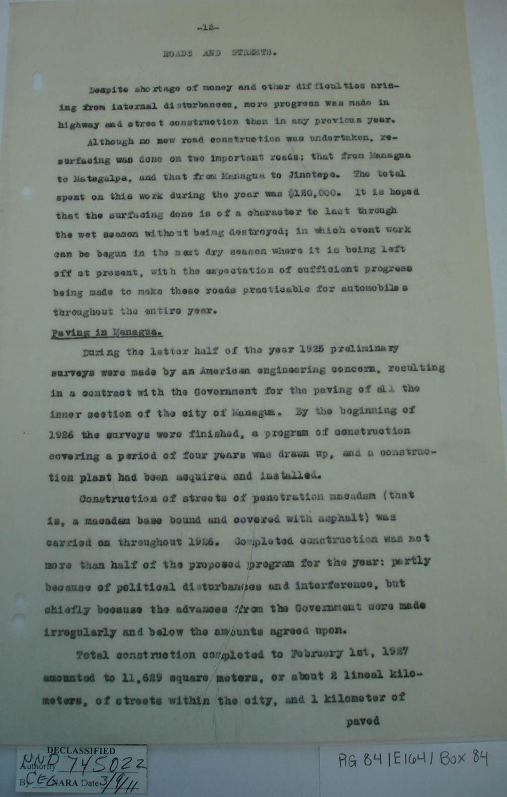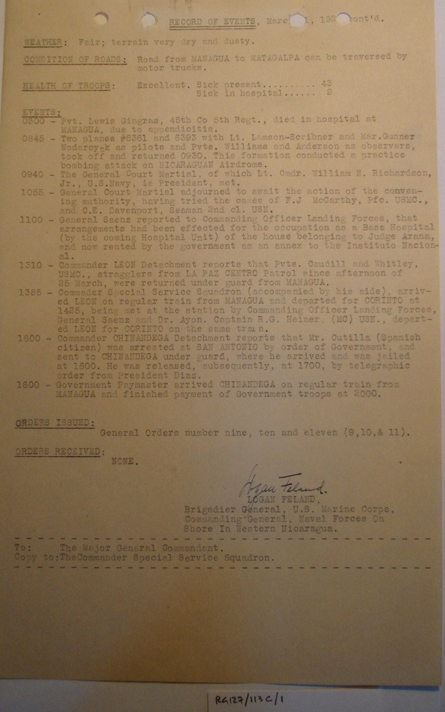 Nicaragua, ¶ Managua, Nicaragua, ¶ 28 May, 1927.