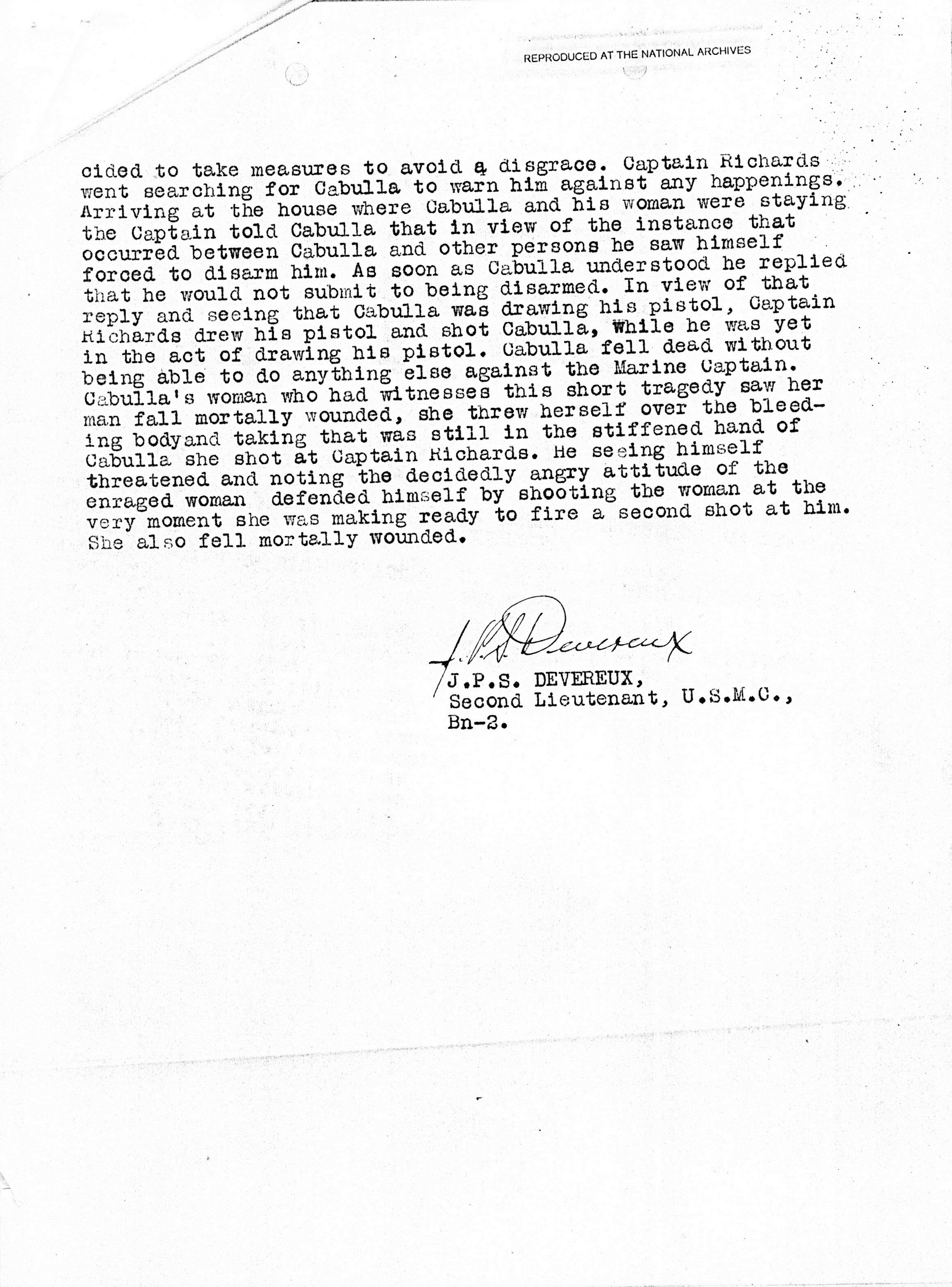 Cabulla was drawing his pistol, Captain Richards