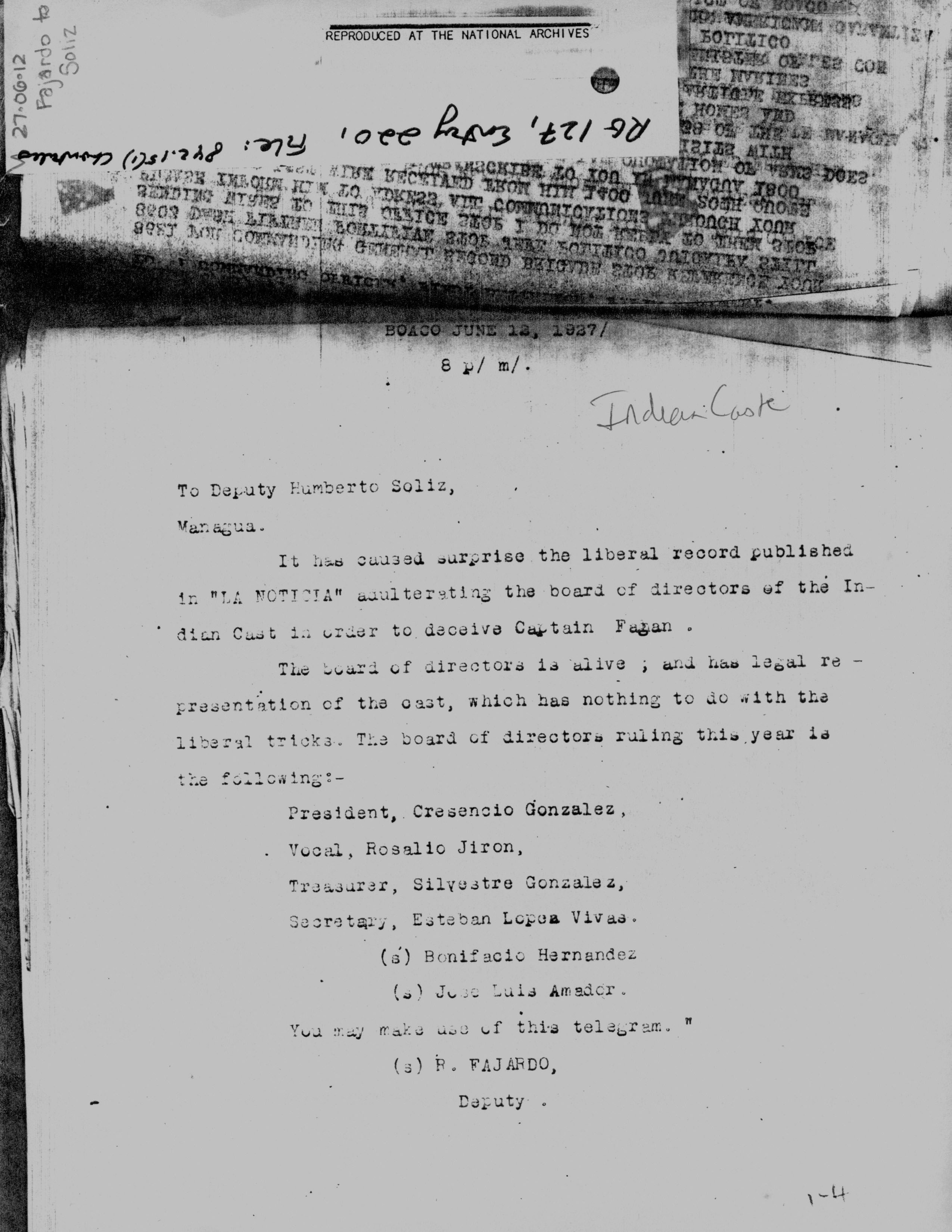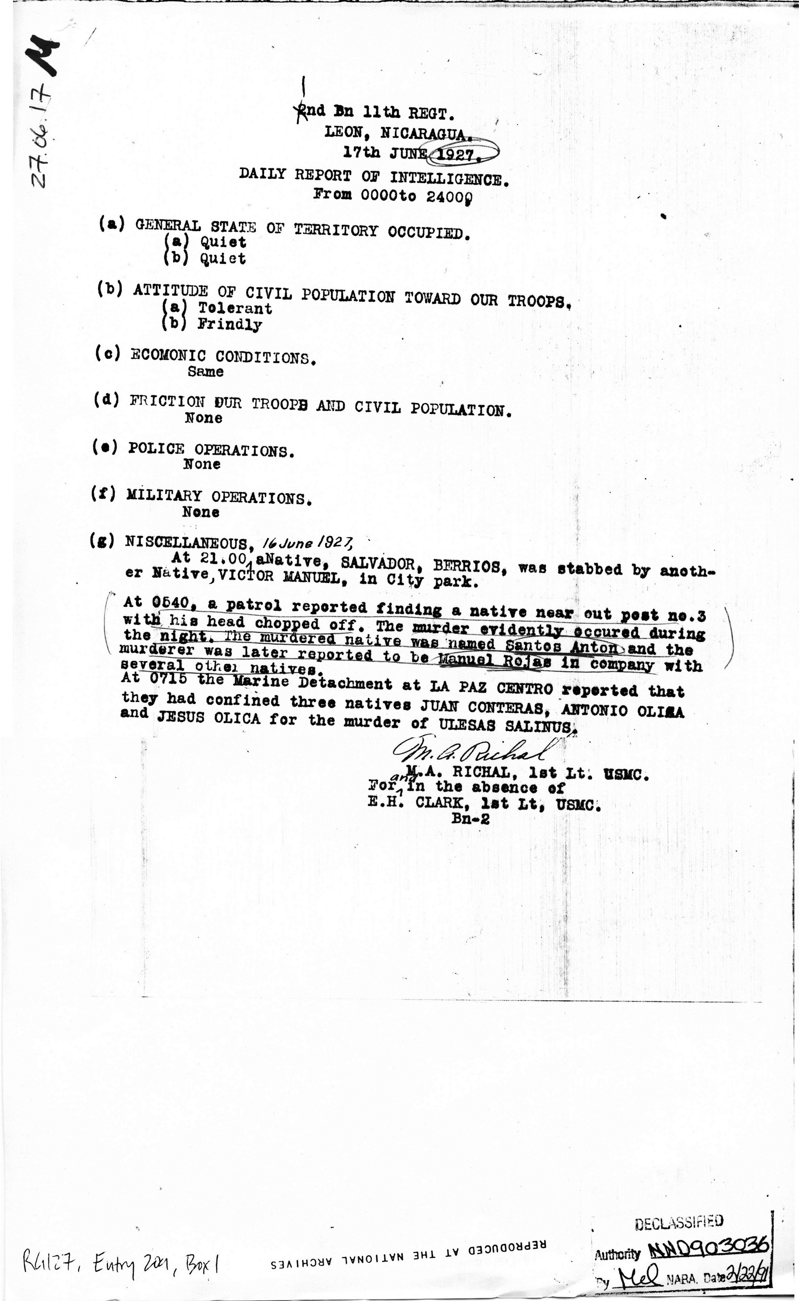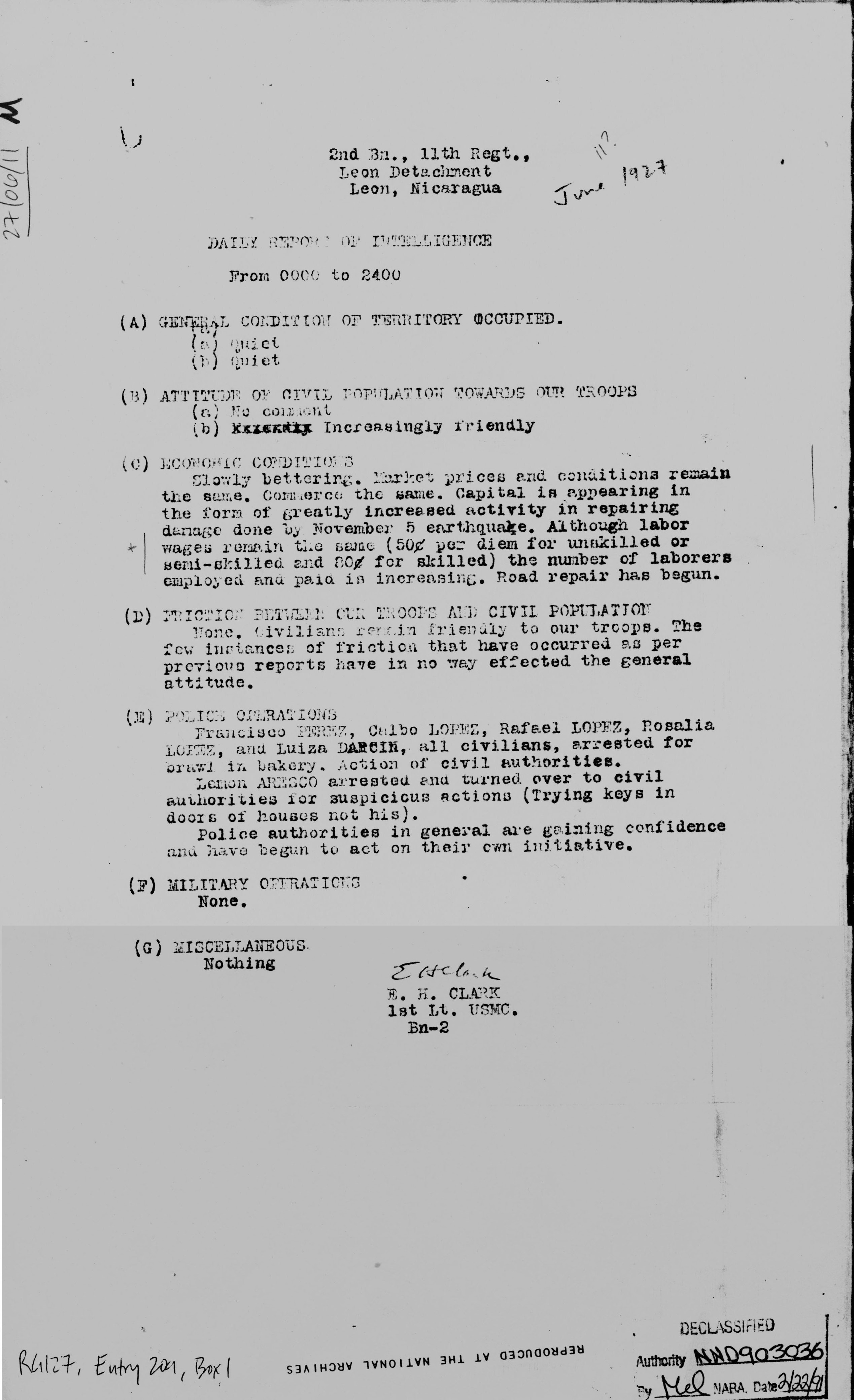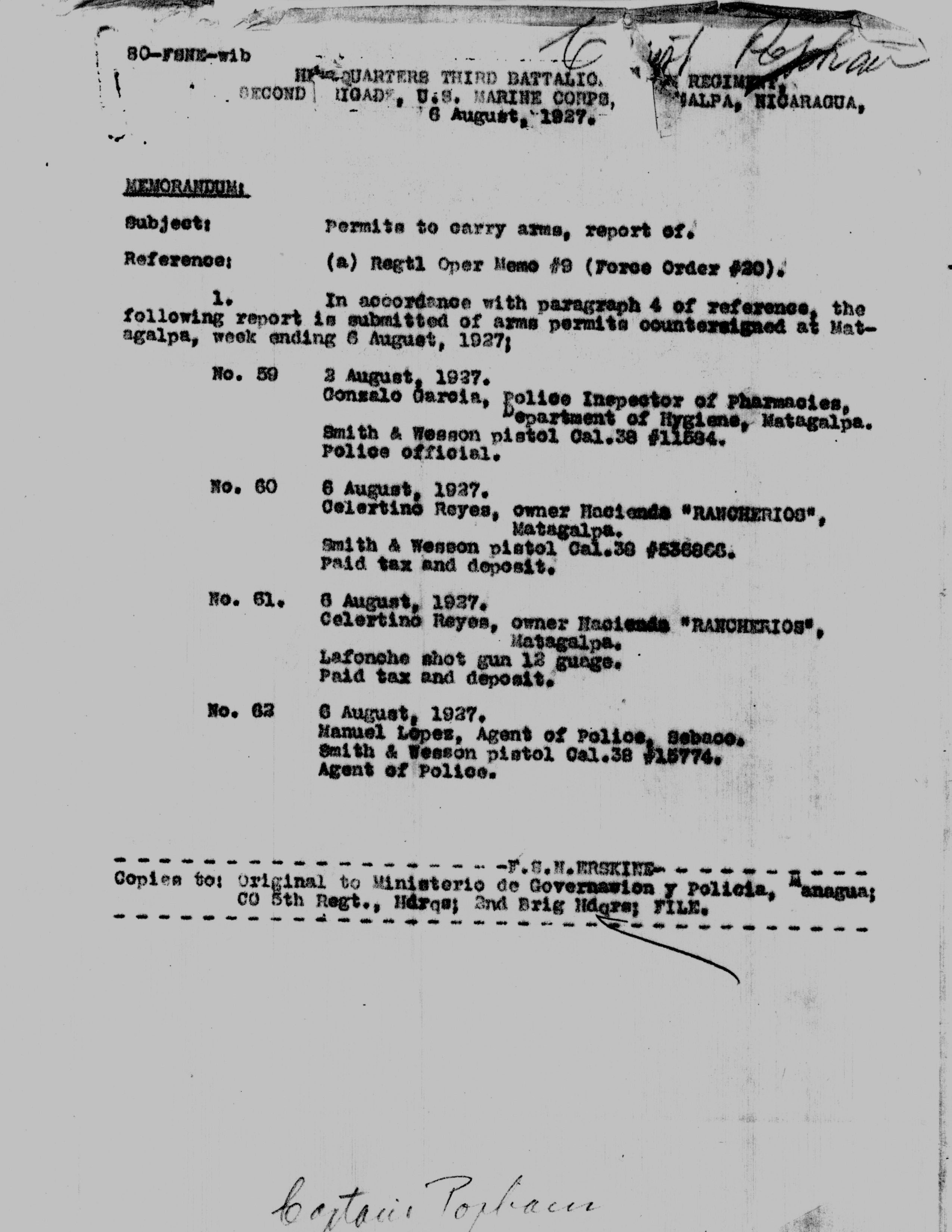 Moncada, Managua, to Jefe Director, Guardia