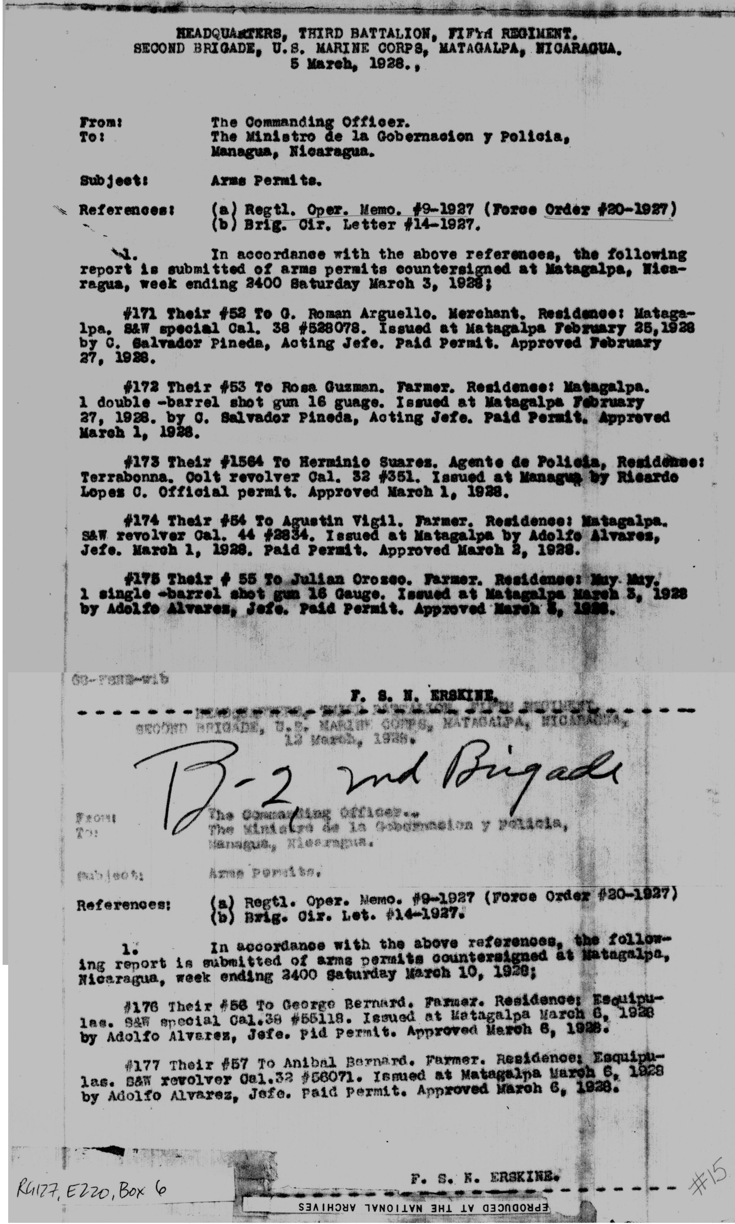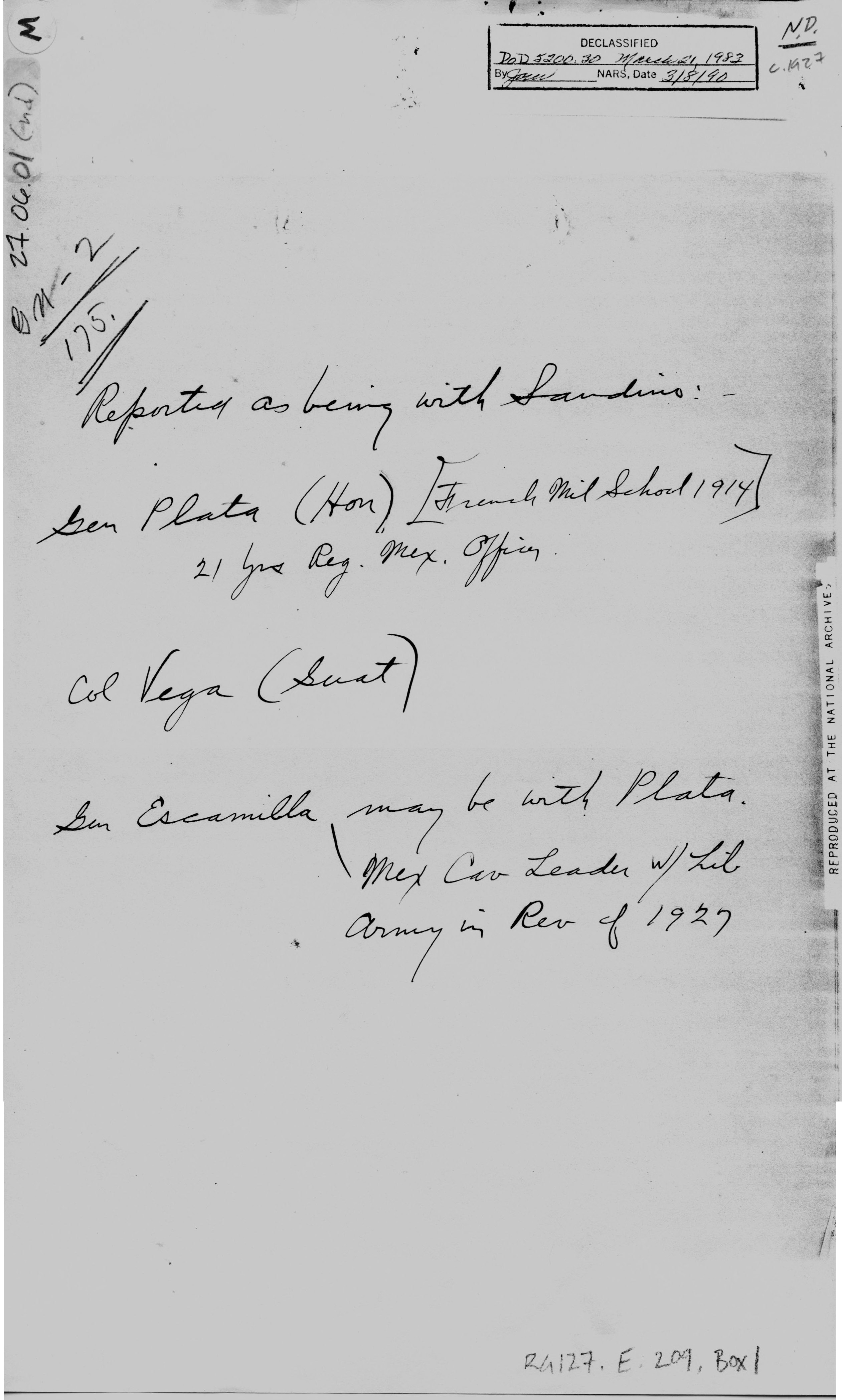 "GN-2 175. ¶ Reported as being with Sandino: - ¶