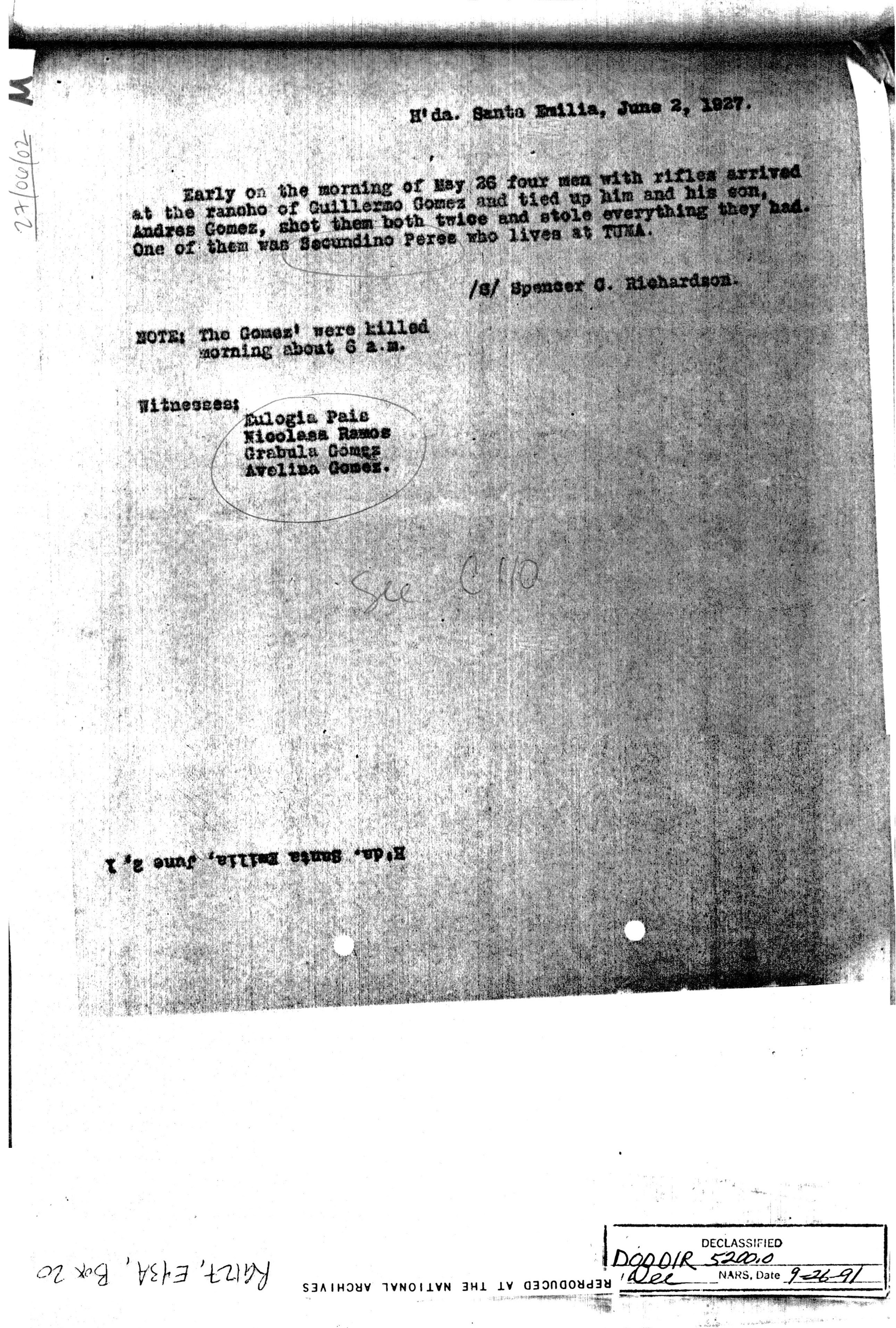 June 26, 1927. Letter from Serapio